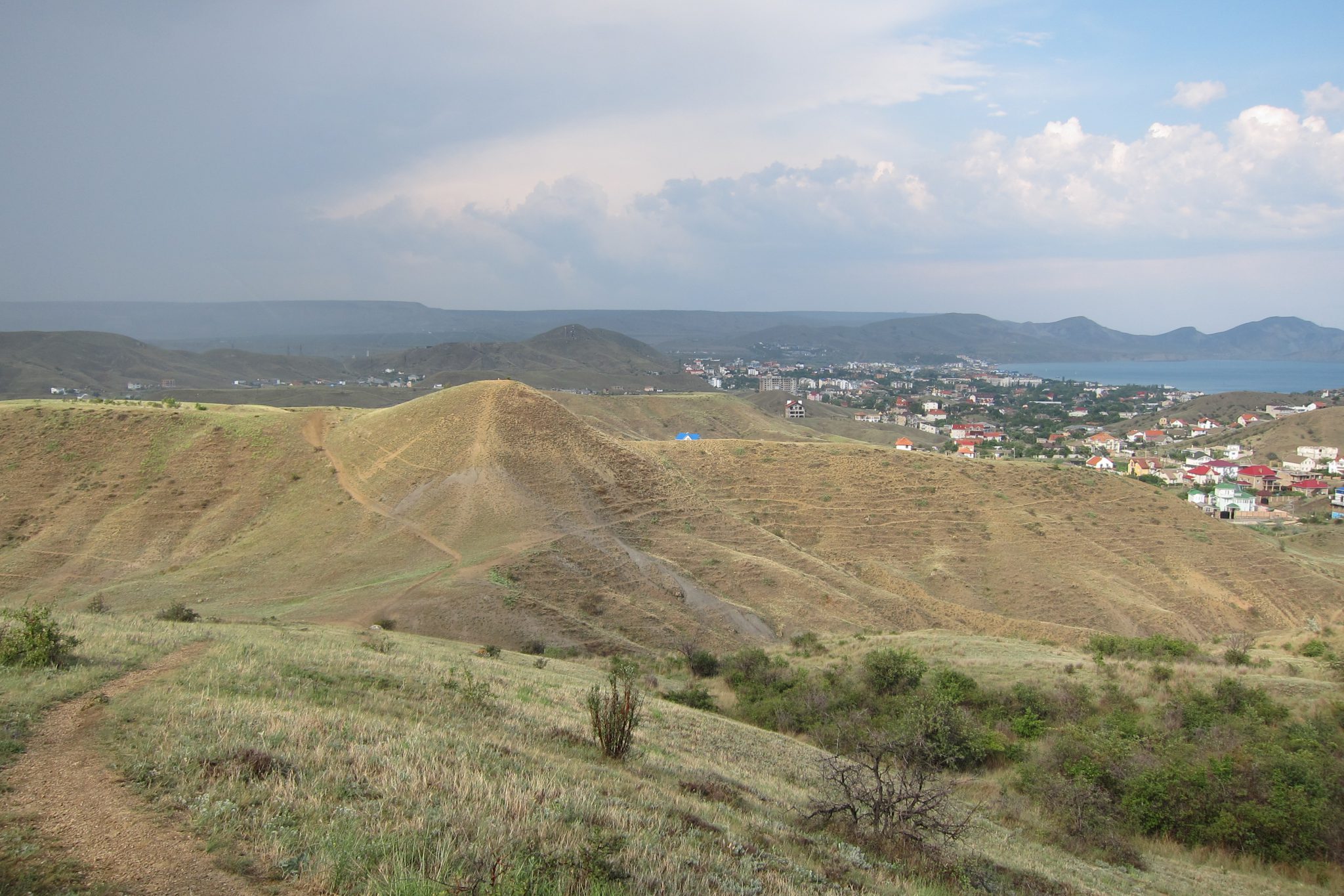 Nelielā pakalnā sastopam maskaviešu vīrieti ar diviem bērniem. Vīrietis lepojas, ka brauc uz šejieni jau 20 gadus un stāsta, ka ir pieredzējis plūdus, ka pa pilsētas centrālo ielu bijis jābrien līdz viduklim ūdenī. Viņš arī prasa, vai mēs esot redzējuši lodveida zibeni, kas uzšāvies gaisā pirms maza mirkļa no krūmeļa dažu metru attālumā. Mēs to neesam redzējuši, viņš arī nē, bet abi bērni apgalvo, ka tā ir noticis. Nu, kas to lai zina. Prasām pieredzējušajam vīrelim, vai būs lietus. Viņš mirkli pavēro mākoņus un paziņo, ka nē – tas aiziešot cieši mums garām. Tomēr šie aiziet māju virzienā, bet mēs turpinām rāpties augstāk.
