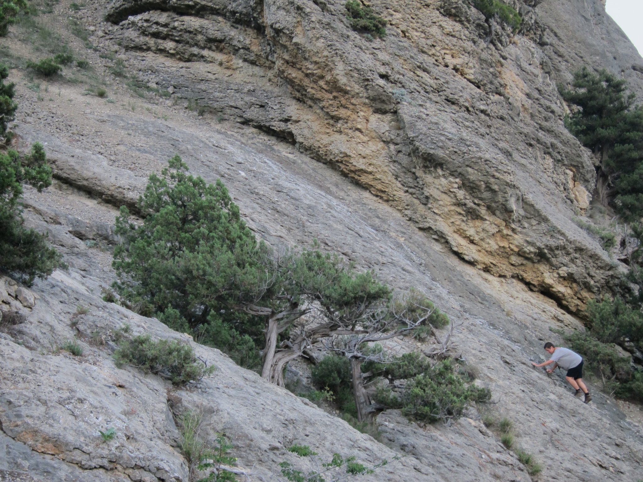 Lai arī jau ir pievakare, ar mikriņu aizšaujam līdz netālam ciematam – Novij Svit. Neba mūs ciemats interesē, bet gan netālu no tā, klints galā esoša veca torņa piekājē noslēpts geokešs. Tā kā īsti nezinām, kā pie tā nokļūt, turpceļā ejam pēc azimuta, tas nozīmē, kārpāmies no šosejas malas augšup pastāvā klintī. Augšā tiekam rāpojot, bet tiekam, kešu atrodam veikli, mani tikai tirda doma, lai lejup nonākam vēl pa gaismu. Tomēr atpakaļceļā izdodas atrast citu maršrutu, kas nav tik stāvs un esam vēl ar gaismiņu lejā. Uzreiz nāk arī autobuss, ko mums izdodas nobalsot, un kas aizved mūs līdz šīs nakts mājvietai ķiršu dārzā.
