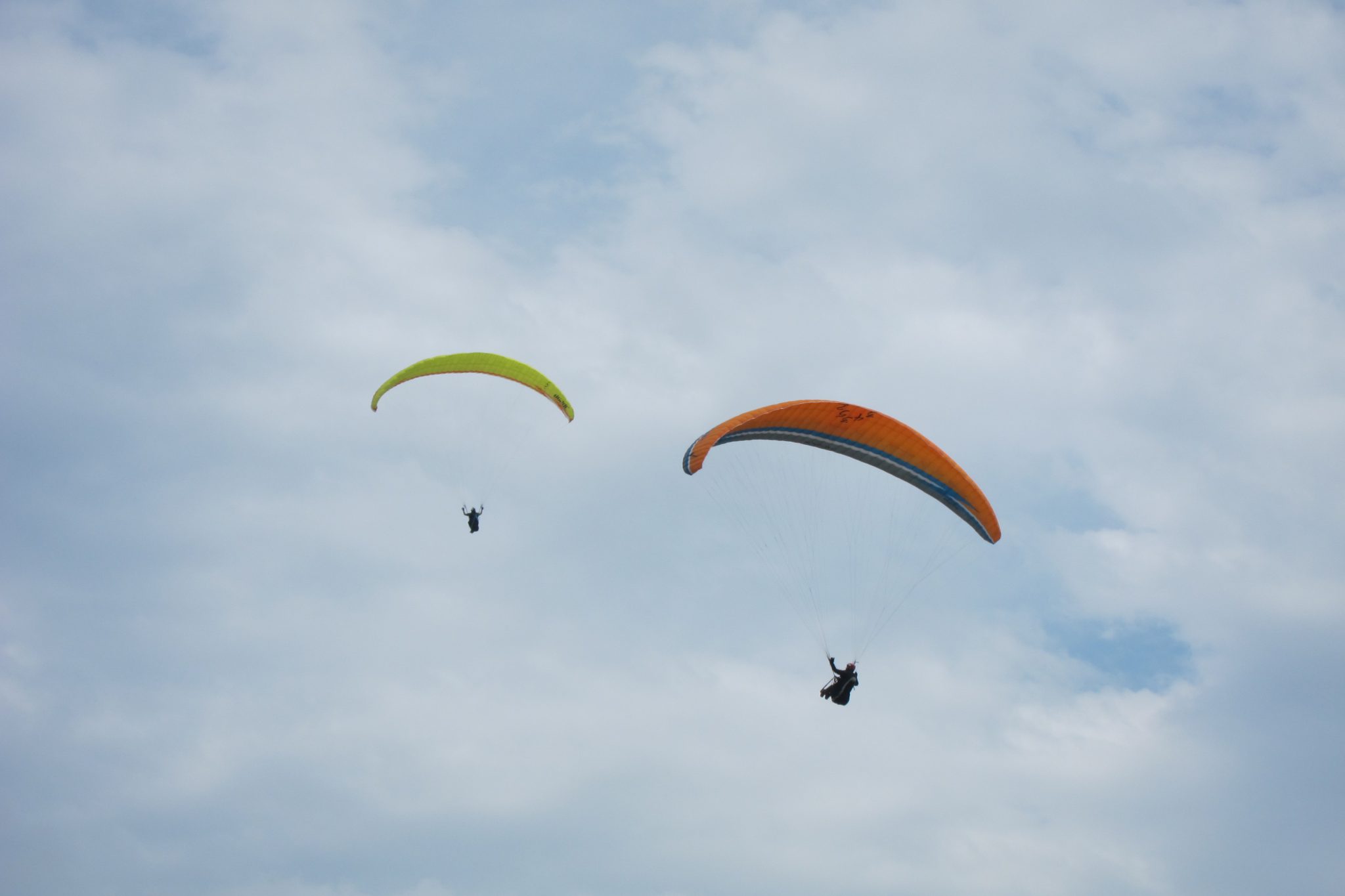 Krietnu brīdi virpuļojam starp debesīm un zemi. Vienvietīgie lidotāji pārsvarā plivinās zem mums, ik pa laikam kāds aizšaujas garām. Man, protams, ir mazliet bail, ka nesaskrienamies, jo esam šeit paliels bariņš. Bet viss ir labi, debesīs vietas pietiek visiem.