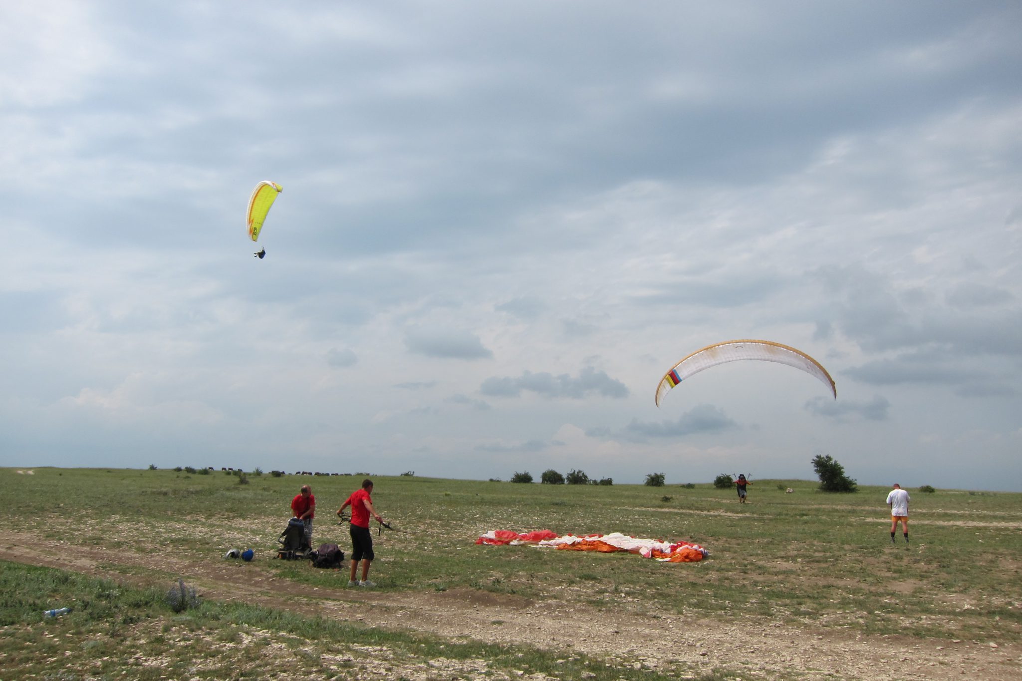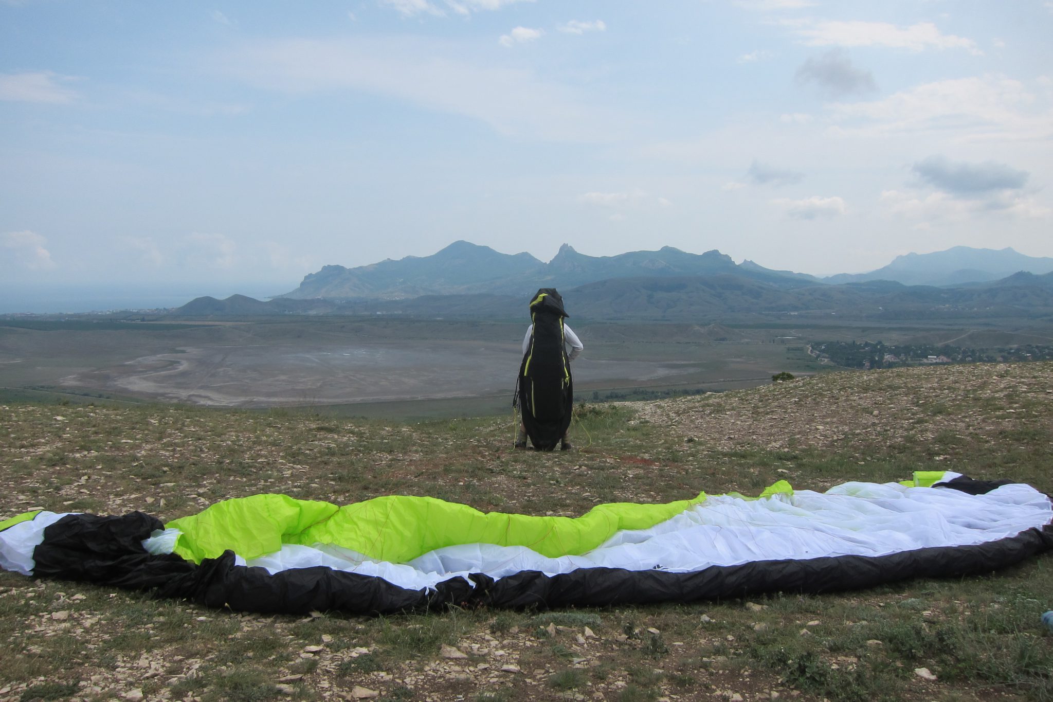 Inventārs kalna malā tiek izkrauts jau trešo reizi. Sergejs ik pa laikam tomēr saviebj seju šaubās – nu ļoti švaks tas vējš ir lidojumam divatā. Tad noprasa manu svaru un pēc atbildes izdzirdēšanas saviebj seju vēl vairāk. “Nē, nu ko – citādi varat vizināt mani pa daļām”, cenšos uzmundrināt puišus.