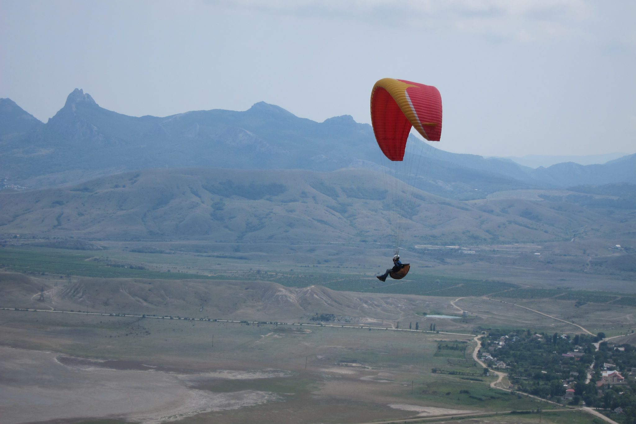 No rīta norunātajā laikā un vietā Ļeņina ielas malā mani gaida vecs, tumši sarkans ceturtais žigulis. Tā bagāžniekā ietūcīts liels auduma blāķis, bet pie stūres sēž instruktors Sergejs. Mēs braucam piepildīt vienu no maniem sen lolotajiem sapņiem – pietuvoties kalna malai, pārkāpt tai un tad lēzeni pacelties gaisā. Palidot ar paraplānu.