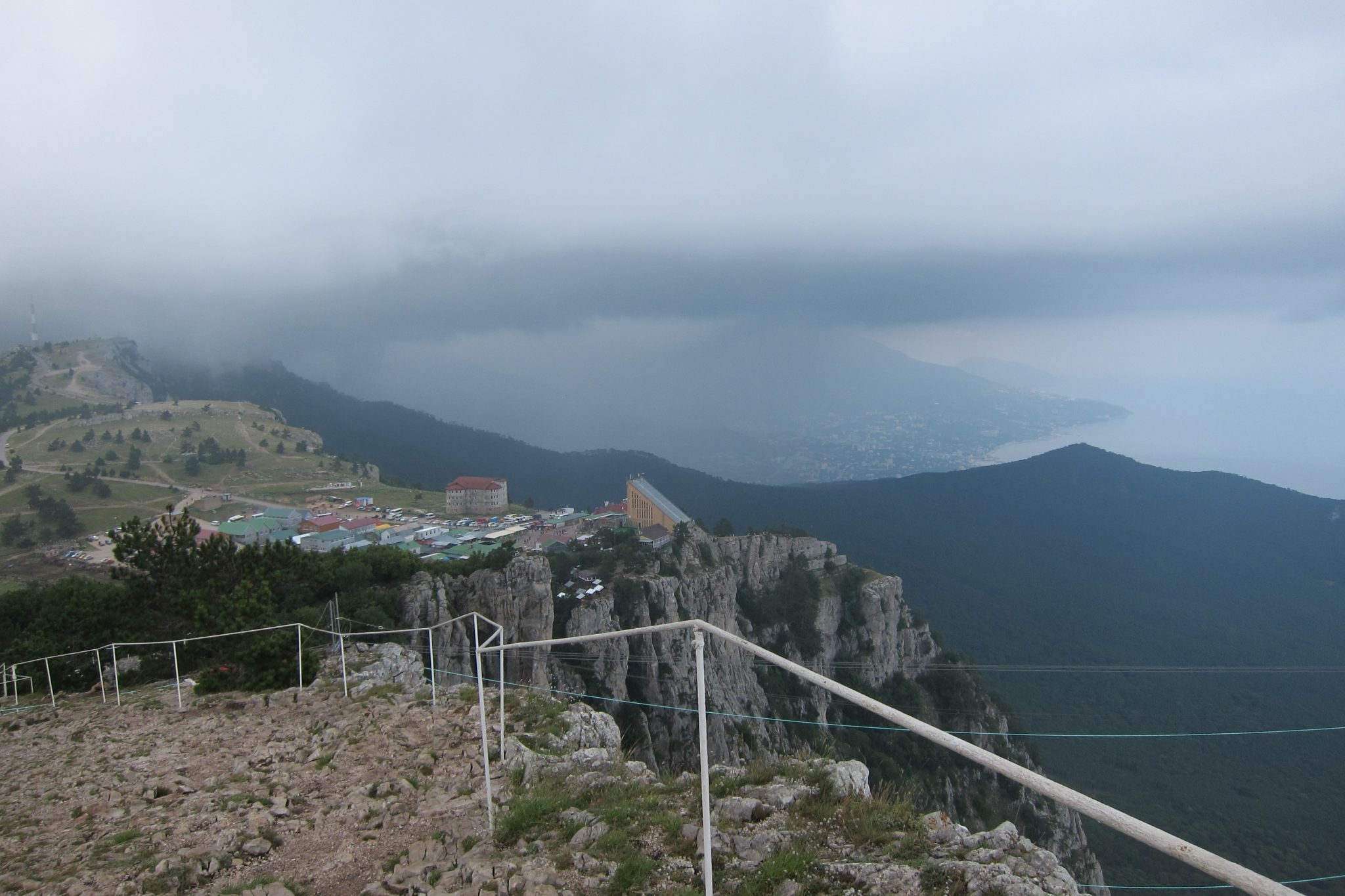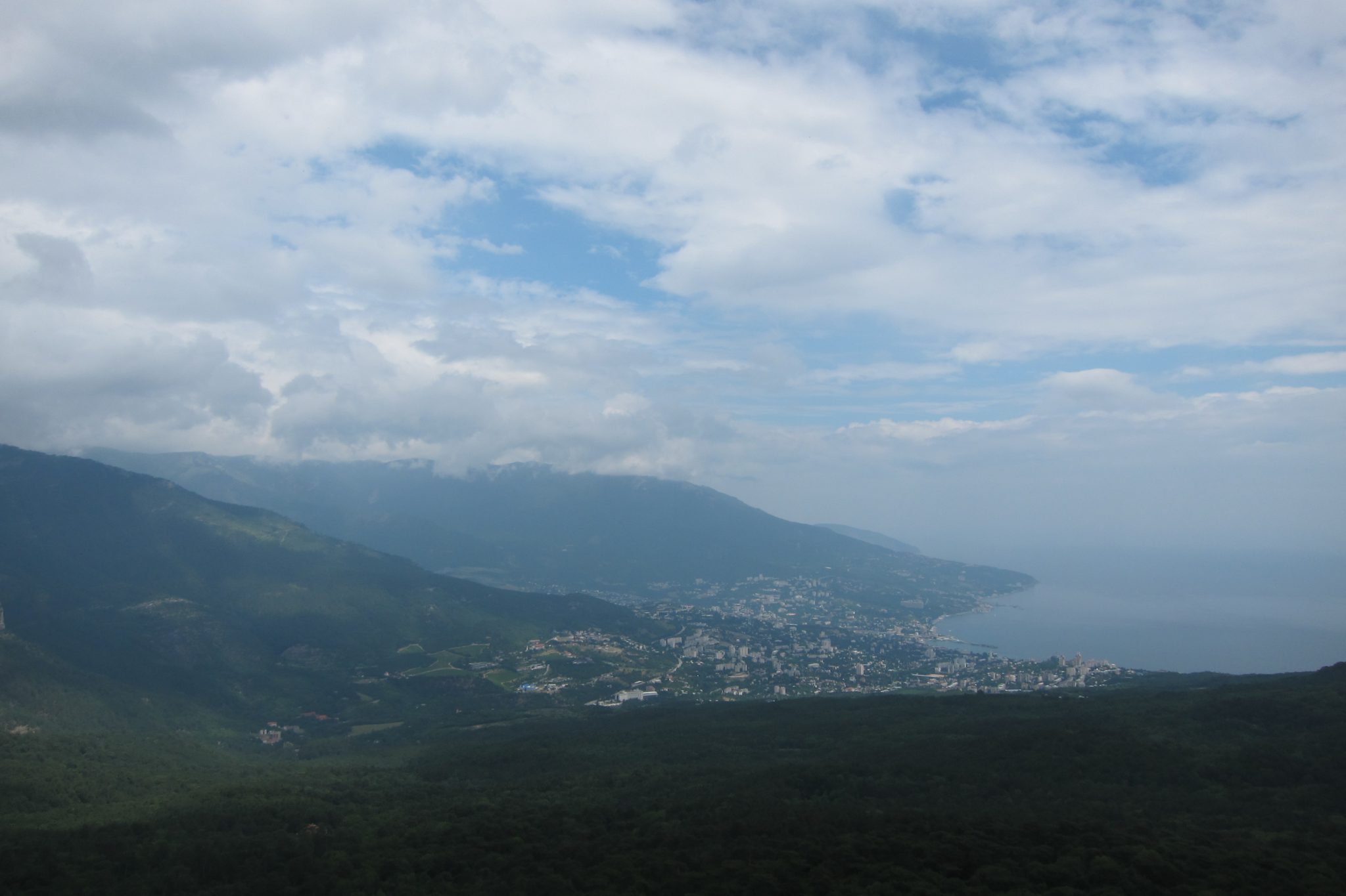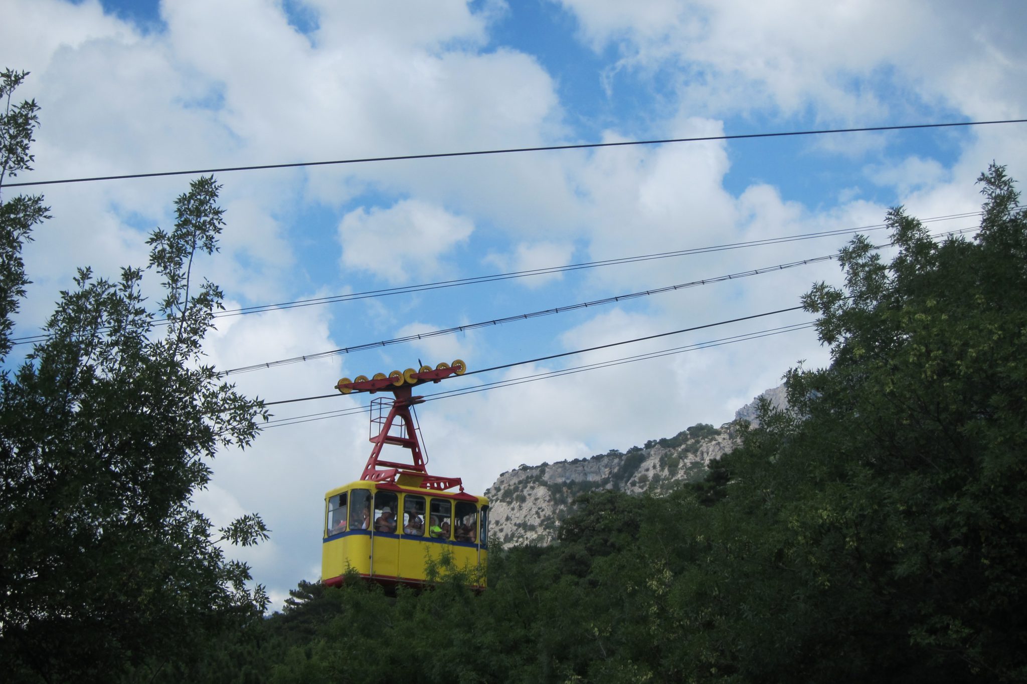 Rihards šodien paliks pilsētā, bet es ar funikulieri braukšu augšā kalnos un veikšu Lielo pastaigu. Līdz funikulierim kāds gabaliņš ejams, priecīgā noskaņojumā soļoju pa šosejas malu. Nopērku vēl veikalā mazliet provianta, lai kalnos būtu ar ko iestiprināties. Uz ceļa pagrieziena, kurš ved uz gaisa vagoniņu, mani pārtver kāds vīrietis un sāk apvārdot. “O, ģevuška, vi tak sportivna oģeti, prjamo kak guļatj v gorah.” Bet, ar funikulieri braucot, visi tur saspriedušies kā siļķes un vēl rindā jāgaida. Reku busiņš, vedīs pa skaistākām skatu vietām, priedes slaikas un ūdenskritumus vēl parādīs pa ceļam. Jau grupa esot nokomplektējusies, tūlīt izbraucam. Cik maksā? Tik pat cik funikulieris, 65 grivnas. Nu labi, atpakaļ vizināšos ar vagoniņu, turpceļā var arī ko citu apskatīt. Ļaujos pierunāties un sēžos busiņā. Šoferis, vienlaikus arī gids, pa ceļam klāsta dažādus faktus par vagoniņu, ceļu izbūvēšanu un dabas objektiem, nav slikti. Redzam priedes, ūdenskritumus gan tikai pa gabalu. Jaltu apskatām gan no malas, gan no augšas, no kurienes paveras “šikarnij vid”.
