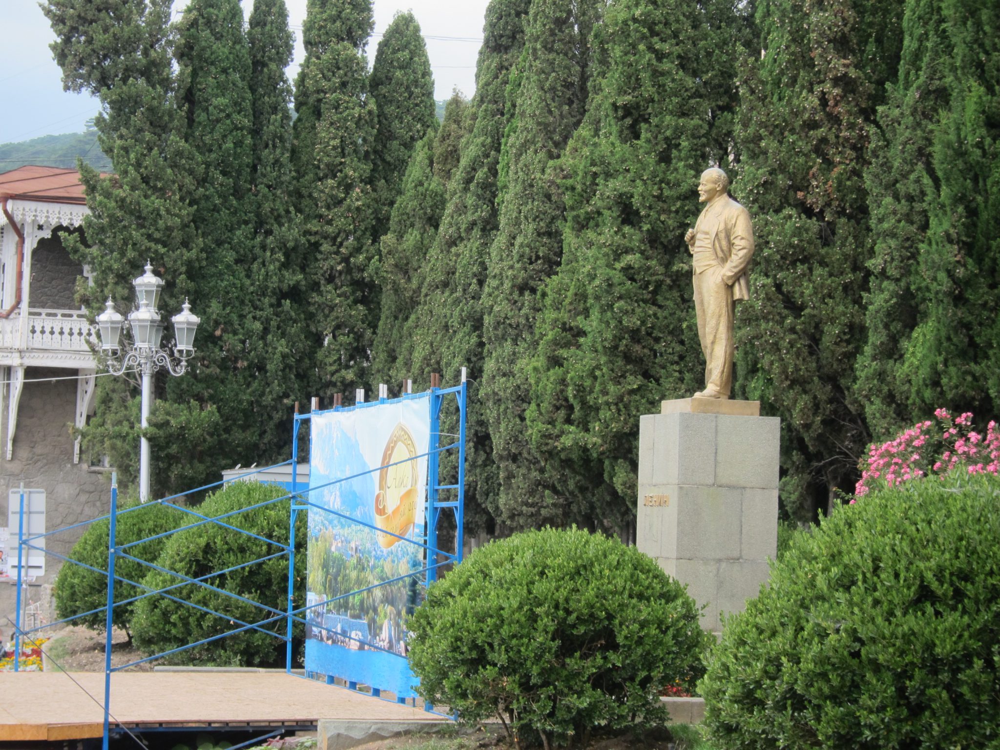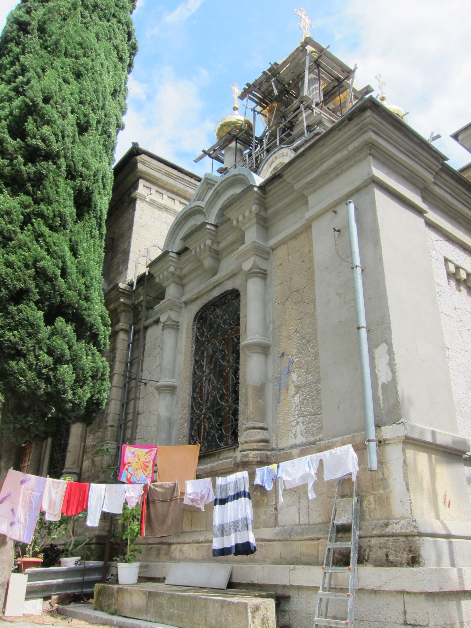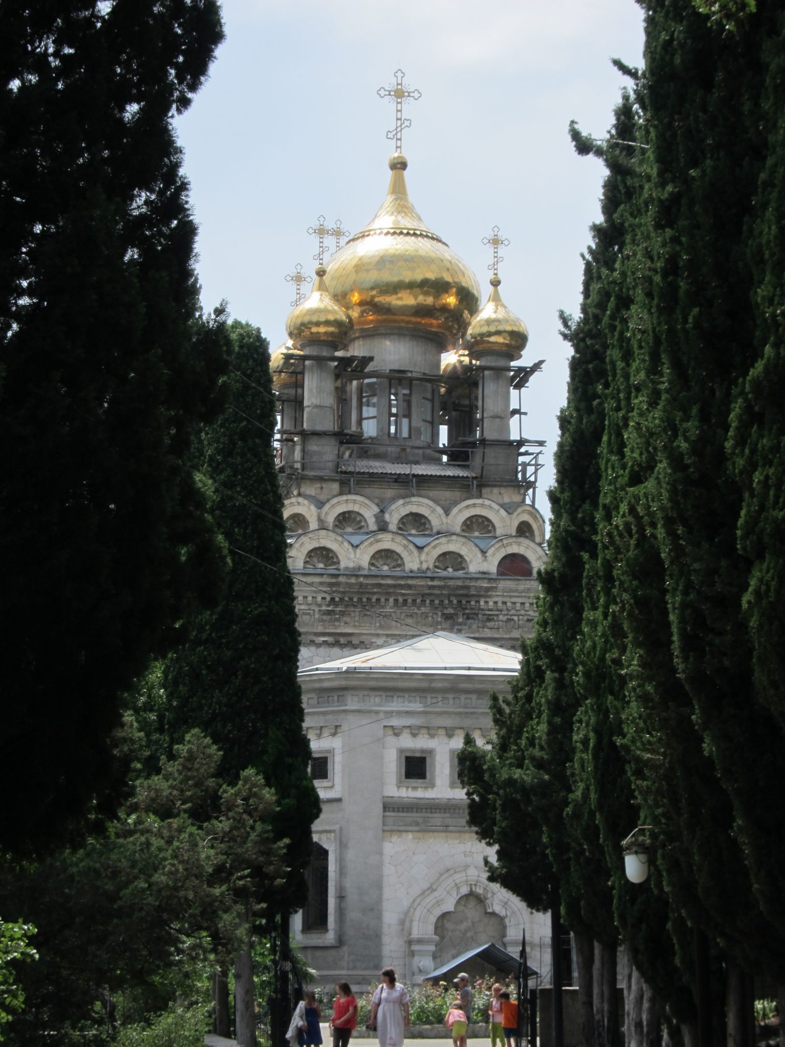 Rihards šodien paliks pilsētā, bet es ar funikulieri braukšu augšā kalnos un veikšu Lielo pastaigu. Līdz funikulierim kāds gabaliņš ejams, priecīgā noskaņojumā soļoju pa šosejas malu. Nopērku vēl veikalā mazliet provianta, lai kalnos būtu ar ko iestiprināties. Uz ceļa pagrieziena, kurš ved uz gaisa vagoniņu, mani pārtver kāds vīrietis un sāk apvārdot. “O, ģevuška, vi tak sportivna oģeti, prjamo kak guļatj v gorah.” Bet, ar funikulieri braucot, visi tur saspriedušies kā siļķes un vēl rindā jāgaida. Reku busiņš, vedīs pa skaistākām skatu vietām, priedes slaikas un ūdenskritumus vēl parādīs pa ceļam. Jau grupa esot nokomplektējusies, tūlīt izbraucam. Cik maksā? Tik pat cik funikulieris, 65 grivnas. Nu labi, atpakaļ vizināšos ar vagoniņu, turpceļā var arī ko citu apskatīt. Ļaujos pierunāties un sēžos busiņā. Šoferis, vienlaikus arī gids, pa ceļam klāsta dažādus faktus par vagoniņu, ceļu izbūvēšanu un dabas objektiem, nav slikti. Redzam priedes, ūdenskritumus gan tikai pa gabalu. Jaltu apskatām gan no malas, gan no augšas, no kurienes paveras “šikarnij vid”.