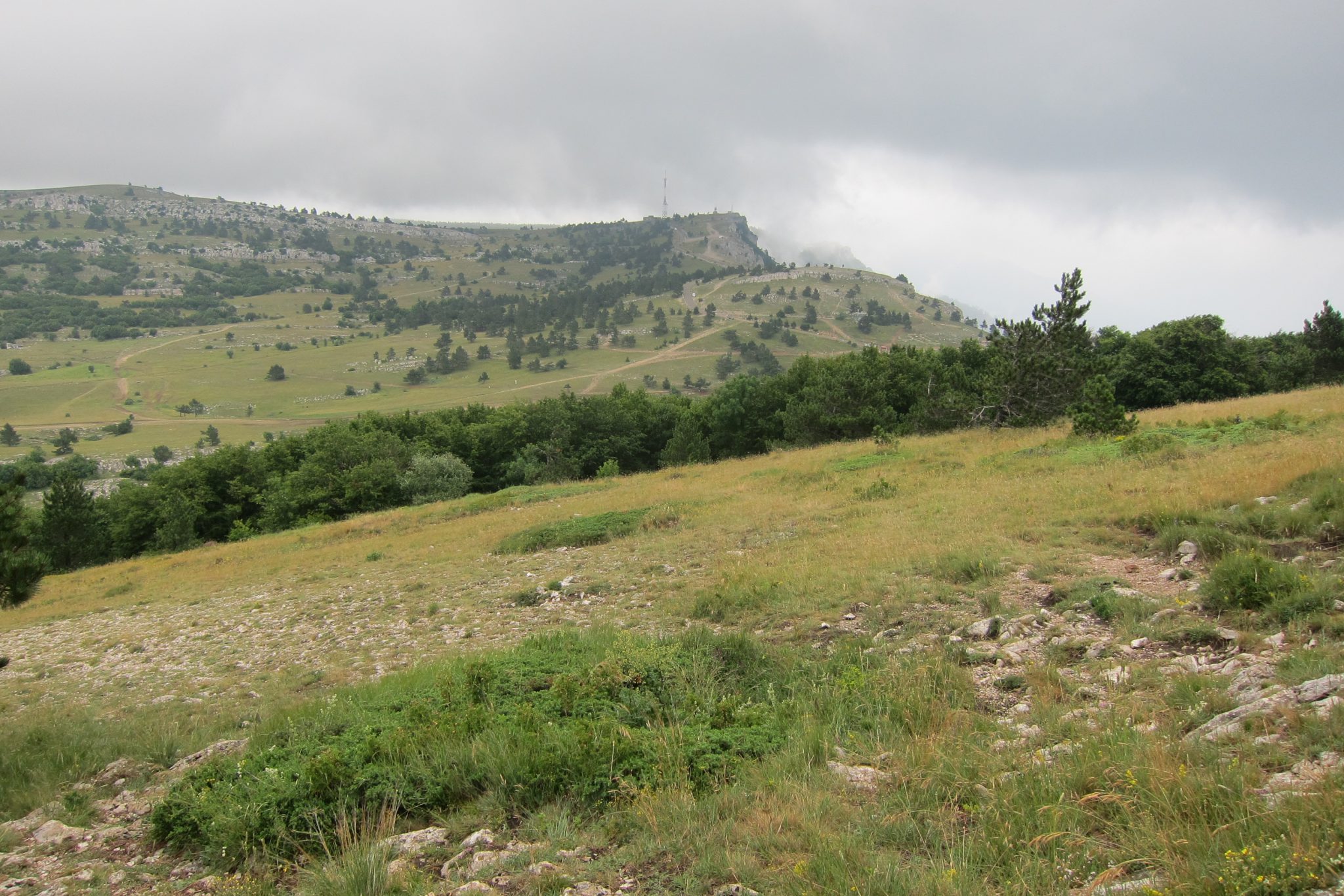 Kad “tūristu” programma izpildīta, dodos tālāk gar klints malu. Tur laimīgā kārtā nav neviena cilvēka un varu baudīt kāroto pastaigu kalnos vientulībā. Tomēr ilgi to baudīt nesanāk, jo sāk līt. Patveros zem paliela ciedra slīpā stumbra kā zem jumta un stāvu pusstundu, līdz lietus pierimst. Tad eju tālāk. Krietnu brīdi vēroju kā no ielejas uz augšu virzās mākoņi un liels mākoņu vāls nāk pāri lielajam kalnam, ietinot visu apkārtni necaurredzamā sienā. Un tad tā siena sāk gāzt. Kamēr aizjožu līdz tuvākajam kokam, esmu jau krietni samirkusi. Tas ar izrādās tāds zems, nīkulīgs skujenis un pēc minūtēm desmit saprotu, ka a) man ir notirpušas kājas no tupēšanas b) esmu slapja un c) esmu pārsalusi.