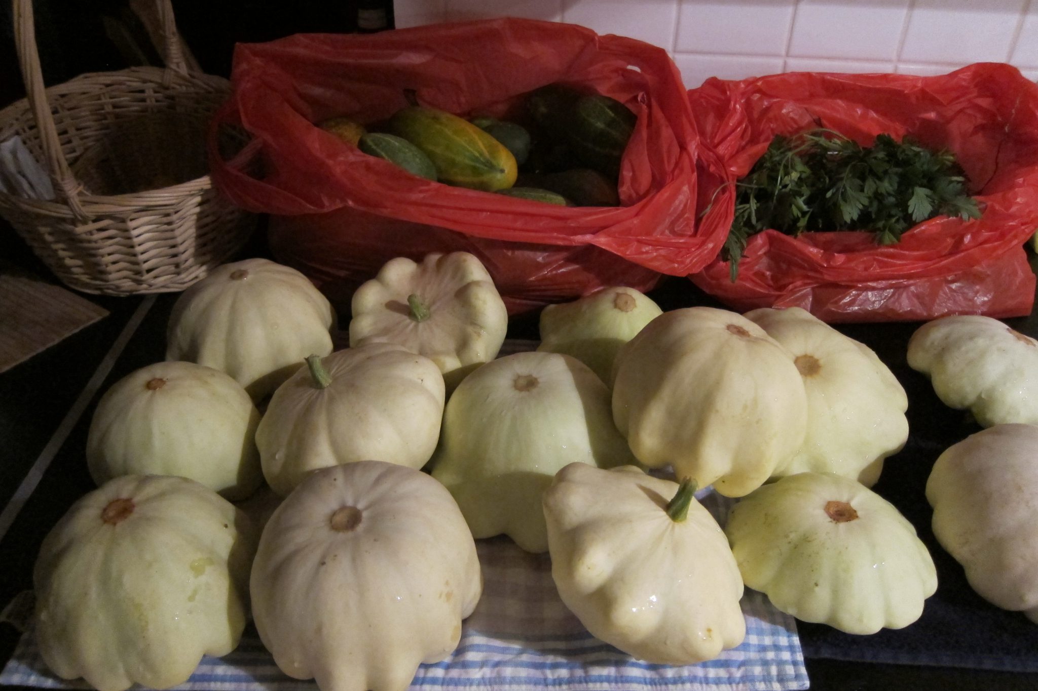 Vagas sasētas un resni patisoni izaudzēti. Burkāni, ķirbji, gurķi un pārējais – gandrīz.
