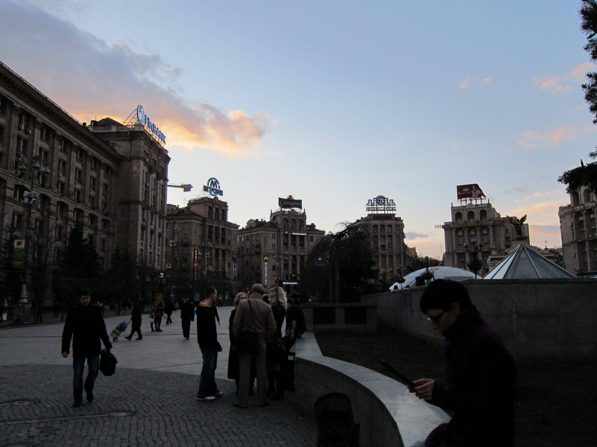 Es sēžu Kijevas Neatkarības laukumā jau kādu stundu. Rihards ar Oleksiju klīst riņķī, bet es esmu piekususi, pūtinu kājas un vēroju cilvēkus – tā vienmēr ir aizraujoša nodarbe. Sīkie sacenšas cits ar citu, lai tiktu augšā pa slīpo objekta pakāpi un kā balvu uztver iespēju apsēsties uz pieminekļa malas, brīdi esot augstāk par citiem. Šeit, pie Globusa, ir populāra satikšanās vieta un daudzi gaidītāji klīst ap to, vērojot, cik kilometru attālumā atrodas citas zemes un valstis.