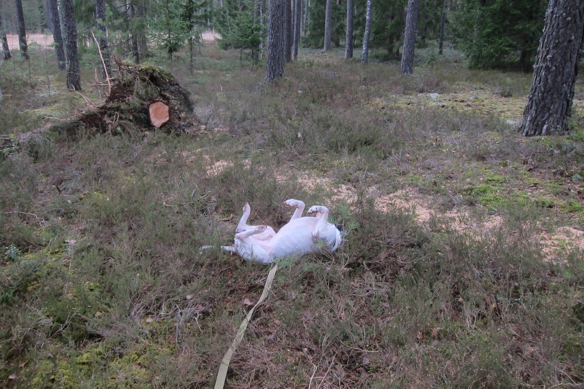 Stāvu šosejas malā, kas paņēmusi ne vienu vien šejienes četrkāji, un auroju uz visām debess pusēm. „Uz kuru pusi skriet, varbūt labāk braukt ar mašīnu? Bet, ja nu viņš pārrodas, kad esmu izbraukusi? Un vispār, drīz satumsīs”, domas juceklīgi jaucas pa galvu. Uz brīdi šķiet, ka izdzirdu viņu rejam pie kaimiņa, kas dzīvo otrpus abu virzienu šosejas joslām. Nolemju doties meklējumos ar kājām. Atgriežos mājās, piebāžu pilnas jakas kabatas ar gaļu, paņemu pavadu un dodos ceļā.