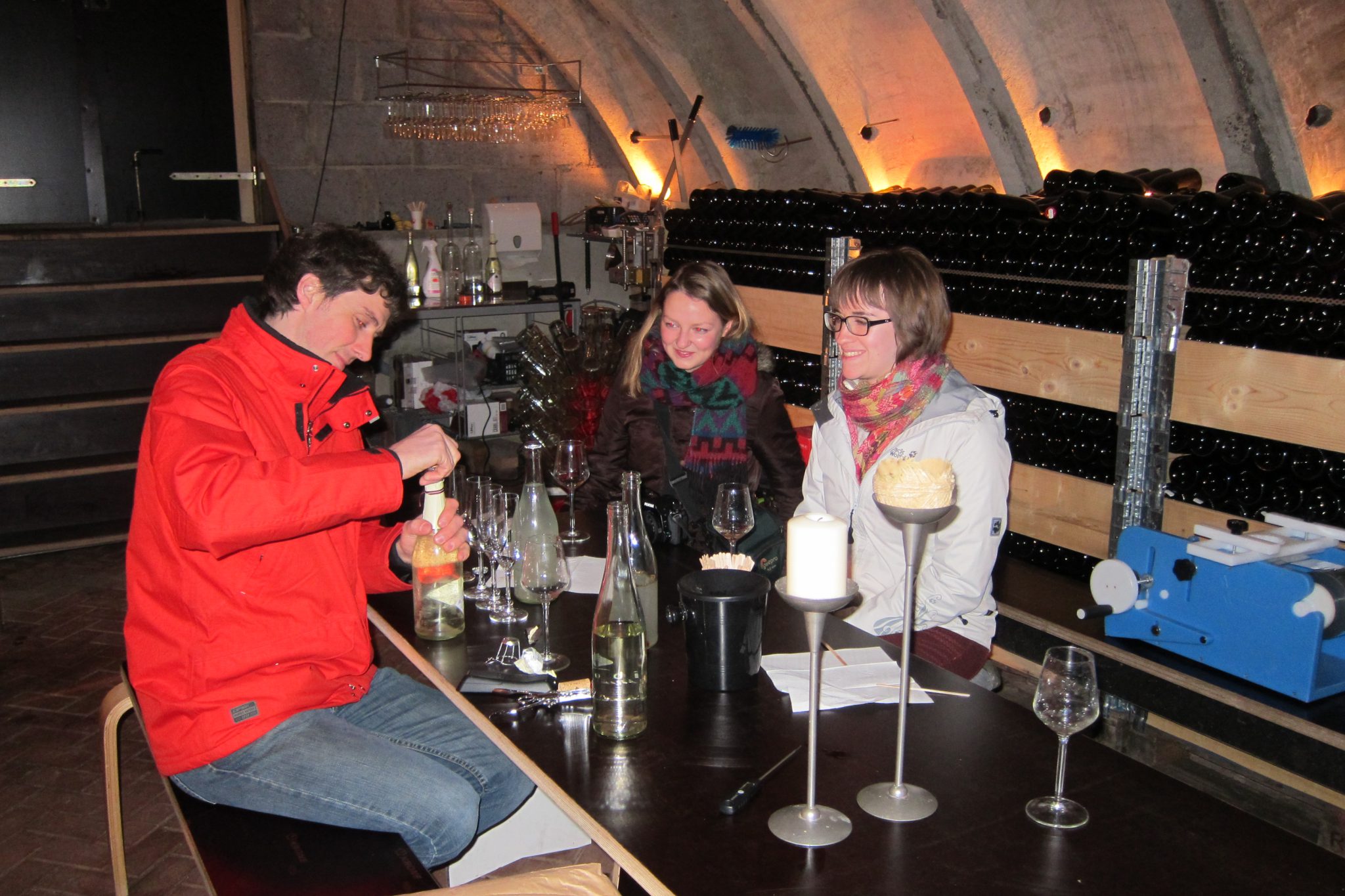 Bet Linards ir ne tikai piekritis sarunai. Viņš atbrauc mums darbdienas vakarā pretī uz pieVangažiem, aizvizina uz mežu, kur izrāda sulu tecināšanas pleķi, tad aizved uz ražotni-pagrabu, kur novada „ekskursiju” pēc pilnas programmas – izstāsta par saviem produktiem un atkorķē no katra dzēriena pa pudelei. Varam nosmeķēt sulu ar piparmētrām, vīnu, šampanieti un tumši staipīgu tvaicētas bērzu sulas sīrupu. Kad viss izgaršots un jautājumi atbildēti, Linards mūs atkal aizvizina mājās. Pa ceļam gan jāpietur mežmalā – viena no bērzu sulas īpašībām pierādās praksē. Lai arī meitenes nopirkušas pa vienai no katra izstrādājuma pudelēm, tāpat tas noteikti tiešā veidā neatmaksājas – mūs vizināt, „apgaismot”, cienāt. Mēs, savukārt, pacienājam Linardu ar kazaku plovu, ko Argins ir pagatavojis, kamēr mēs blandāmies riņķī. Bet Linards šķiet apmierināts ar „nosisto” vakaru un vispār atstāj priekšstatu par cilvēku, kas spējis izveidot biznesu, nepazaudējot galveno – dzīvesprieku un cilvēcību.