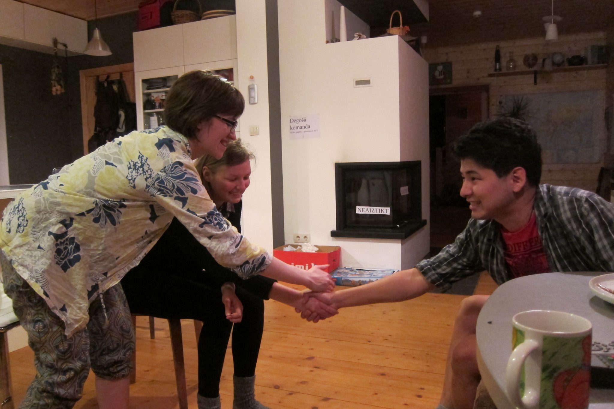 Ar jauniešiem no sirds izsmējos katru no piecām dienām, kuru viņi pagājušajā nedēļā vadīja pie manis. Aņa stāstīja, ka trijos naktī, rakstot dīvānpieprasījumu, centusies visiem spēkiem koncentrēties tekstam angļu valodā, kas viņiem pasveša. Kad parādījusi draudzenei Eleonorai, viņa izteikusi pieņēmumu, ka pēc šāda ievada diez vai kāds viņus uzņemšot. „I’m coming to Riga with two pieces of my friends”, tur stāvēja rakstīts. Diemžēl izlabojuši.