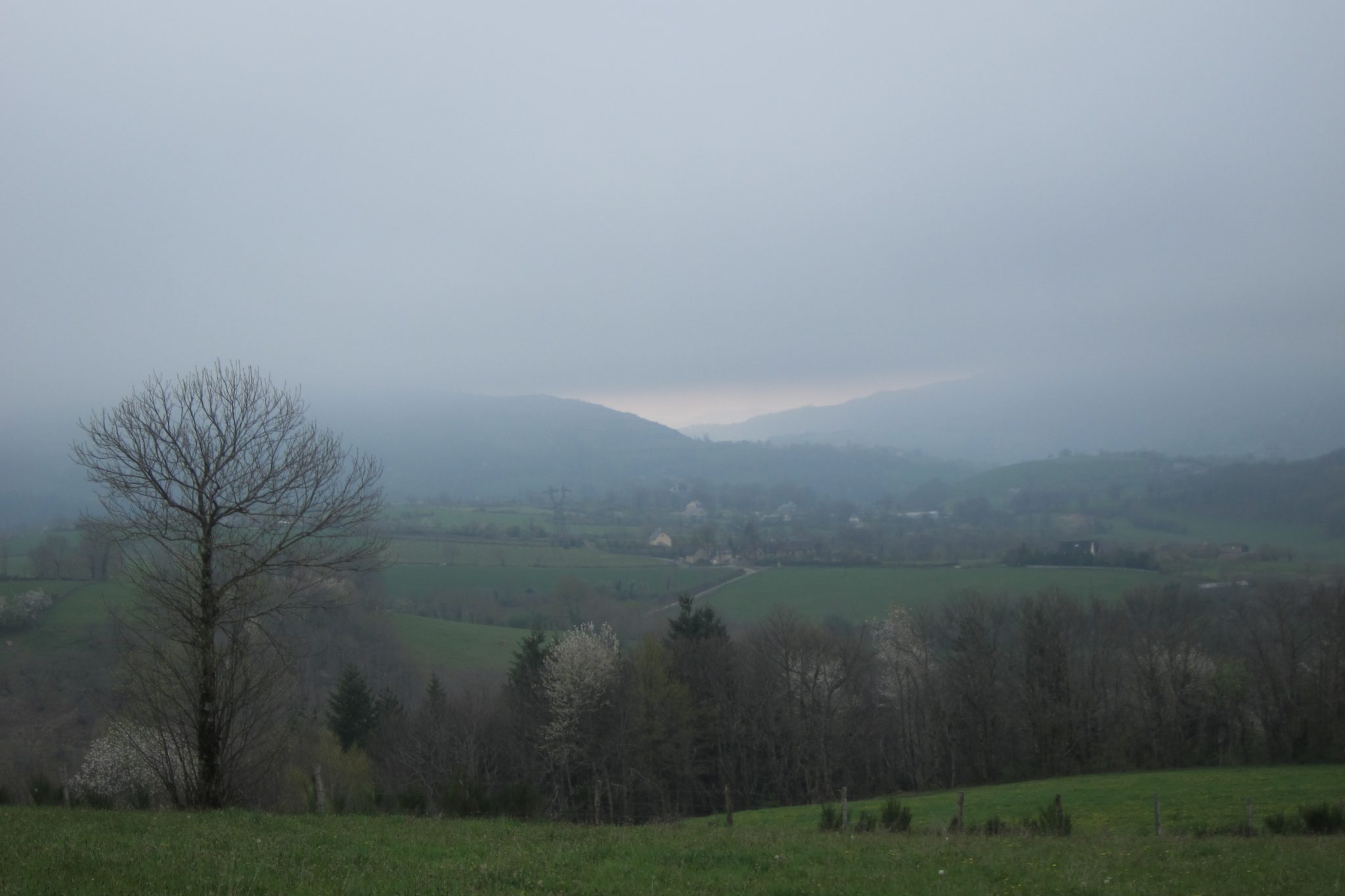 Lai arī nogurums vēl nav paciemojies, ap 9 kādā miestā ceļa malā stāv kārdinoši kafijas termosi. Galu galā, kāpēc neieturēt brokastis šeit. Ieleju kafiju, izvelku savu bageti un kamambēra kluci un smuki ieturos. Saimniece vēlas parunāties, bet sapratusi, ka ar mani nekāda aršana nebūs, uzslavē Žaku, paziņo, ka turpmāk sagaida patīkams kāpiens lejup, un aiziet ravēt dārzu.