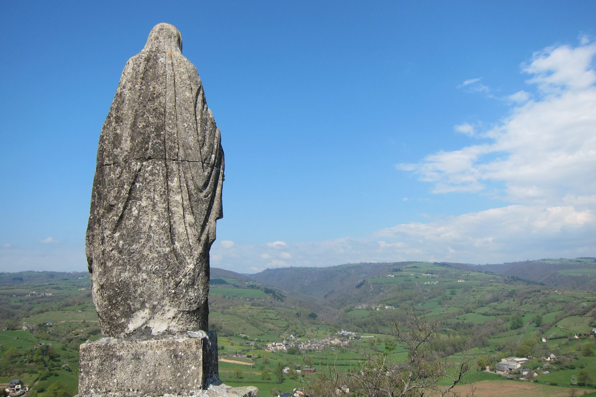 Ar sevi spriedelēdama, esmu uzkāpusi milzīga kalna galā – tur, pašā augšā, uzstutēta skulptūra, laikam jau Marijas, kura noskatās uz visu lejā notiekošo rosību. Tā nav maza – jaunieši stadionā spēlē futbolu, no kāda pasākuma skan tuc-tuc mūzika. Biju domājusi, ka mans šodienas galamērķis – Espalion – būs maza, mierīga pilsētiņa, bet rezultātā izskatās viena no līdz šim lielākajām.