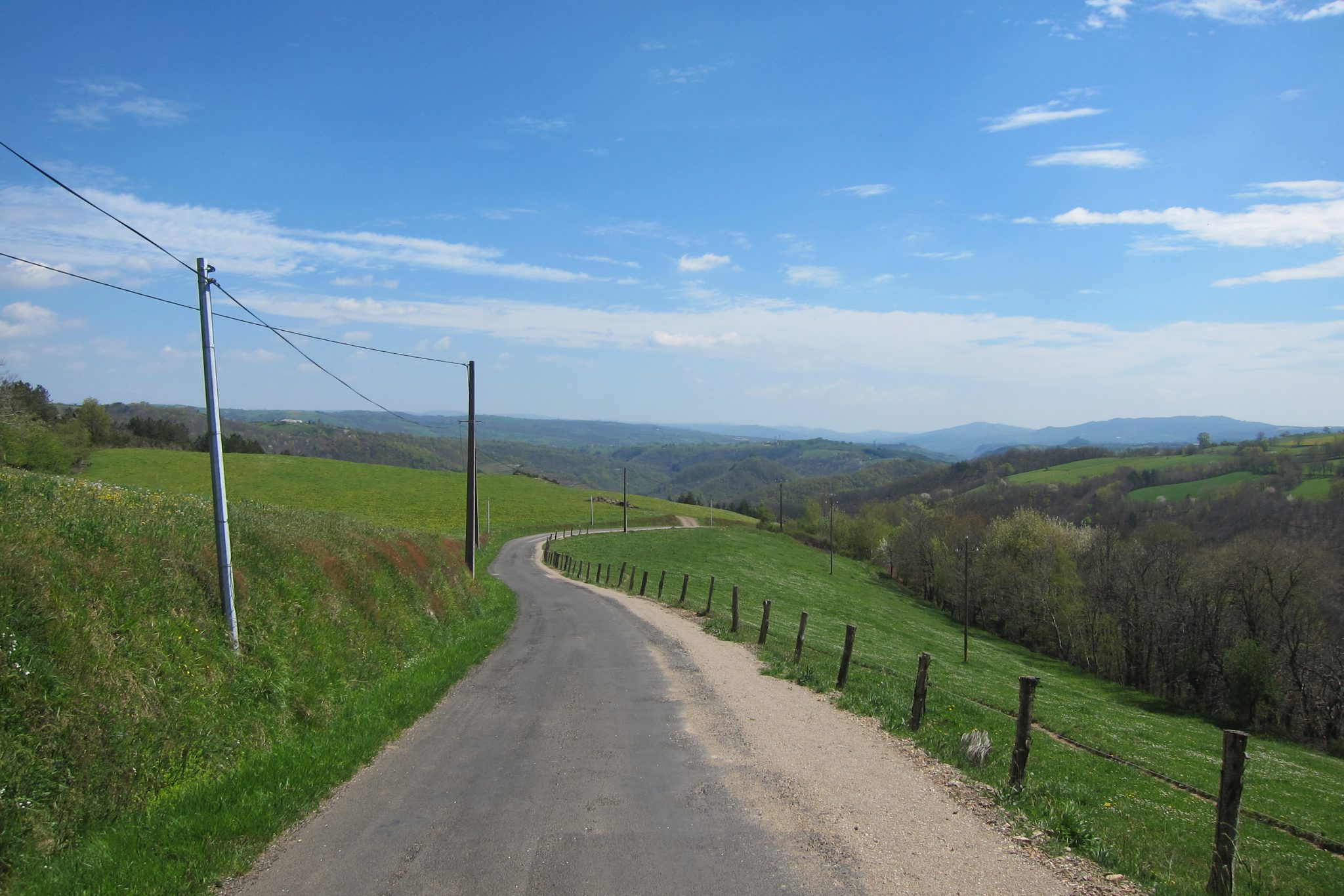Pēc brīža atkal paeju garām briežiem, kas snauduļo pēcpusdienas atpūtā. Brienu un brienu, kāpju un kāpju. Esmu sākusi kāpienu lielā un stāvā kalnā, līdz pamanu, ka kaut kā nekur nemana ceļa apzīmējumus. Jo augstāk kāpju, jo vairāk nostiprinās pārliecība, ka savā nogurumā esmu palaidusi garām īsto pagriezienu un tagad soļoju nezināmā virzienā. Tomēr neies tak atpakaļ kāpt – tāds kalns pieveikts. Un galu galā, pazaudējot ceļu, nevajag arī galvu pazaudēt. Attopos kalna galā pie nelielas šosejas un dažām norādēm uz apdzīvotām vietām. Izvelku karti parasto un gudrāka netieku. Tad talkā nāk telefons ar gps funkciju un sazīmēju, ka pa šo šoseju varu tikt līdz Golinhac – atpazīstu miestu no ceļa norādēm – tik tālu pat nebiju domājusi šodien iet. Izskatās, ka virzos pareizi, bet drošības pēc vēl apturu kādu velosipēdistu un viņš man apstiprina, ka jau pēc kilometriem 4, 5 būšu tur. Neticamā kārtā nepilnā stundā esmu klāt. Neesmu droša – vai ar savu sānsoli esmu nogriezusi kādu posmu vai izmetusi līkumu. Galu galā, kāda starpība – esmu galā, šejienes žits ir lielisks.
