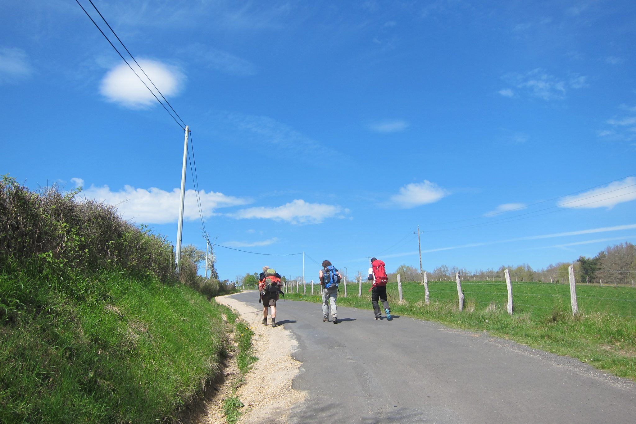 Brienu krietnu brīdi vientulībā, līdz ieraugu pretim nākam tādu pašu mugursomnieku. Apstājamies un sākam pļāpāt. Puisietis ir ceļā aptuveni nedēļu, bet domā soļot vēl divus mēnešus – viņš dodas uz Itāliju. Nopļāpājam krietnu brīdi, pēc manas intereses viņš nodemonstrē savu ierīci – saules bateriju paneli, ar ko uzlādēt elektroierīces. Uz atvadām pārjautā – vai man ir pietiekami daudz ūdens līdz nākamajam miestam un novēl priecīgu Svēto nedēļu. Man pēc pāris kilometriem tik pielec, ko viņš ar to domāja.