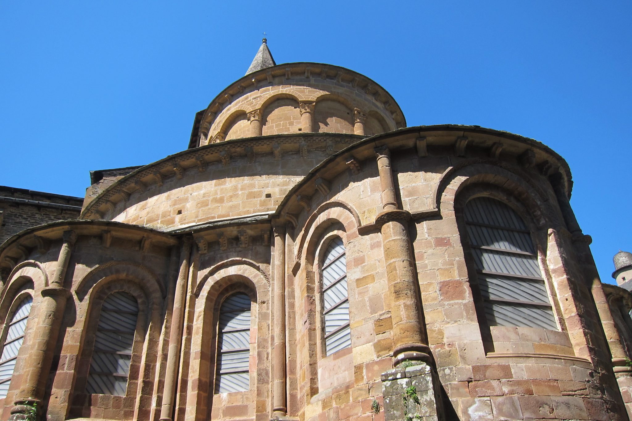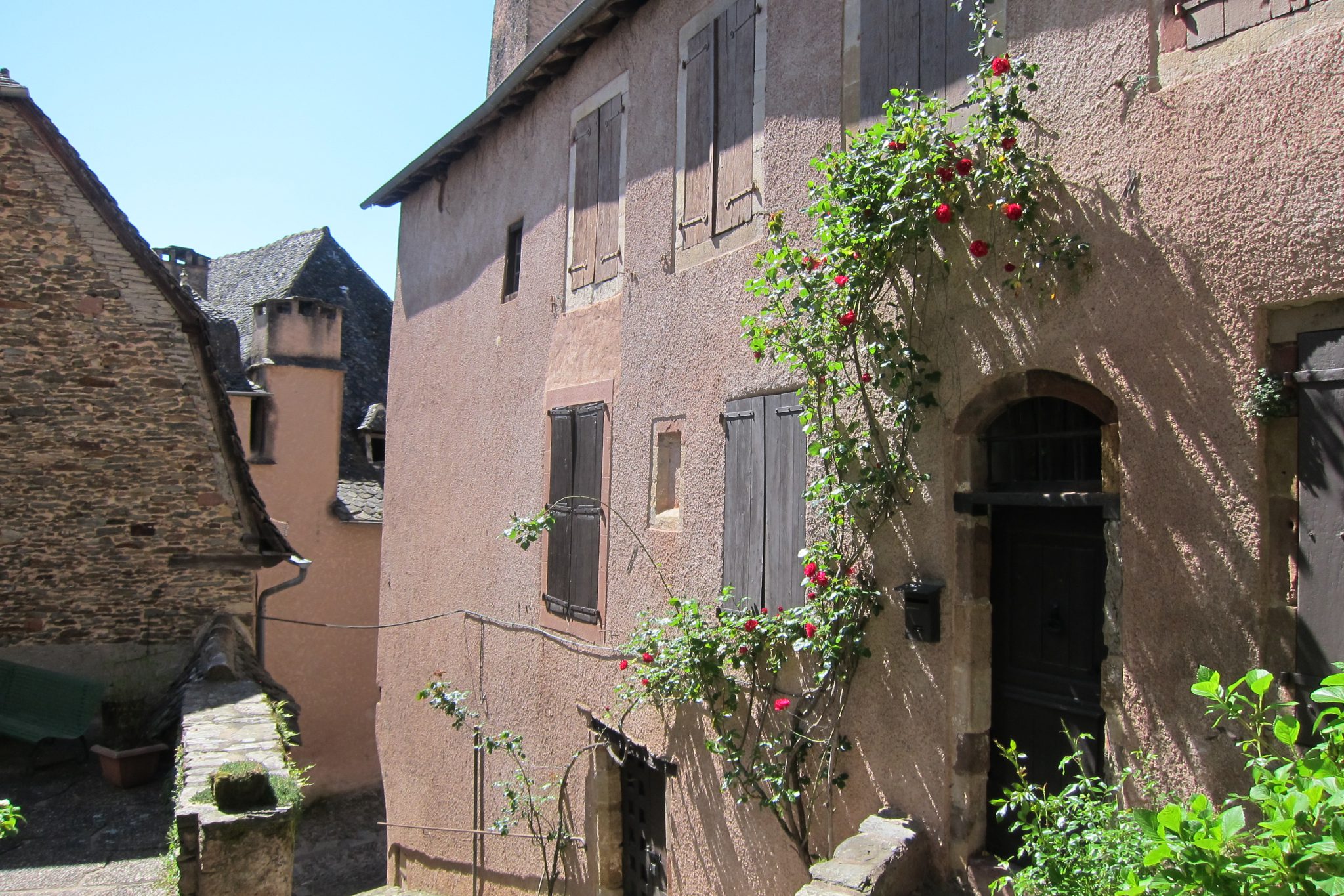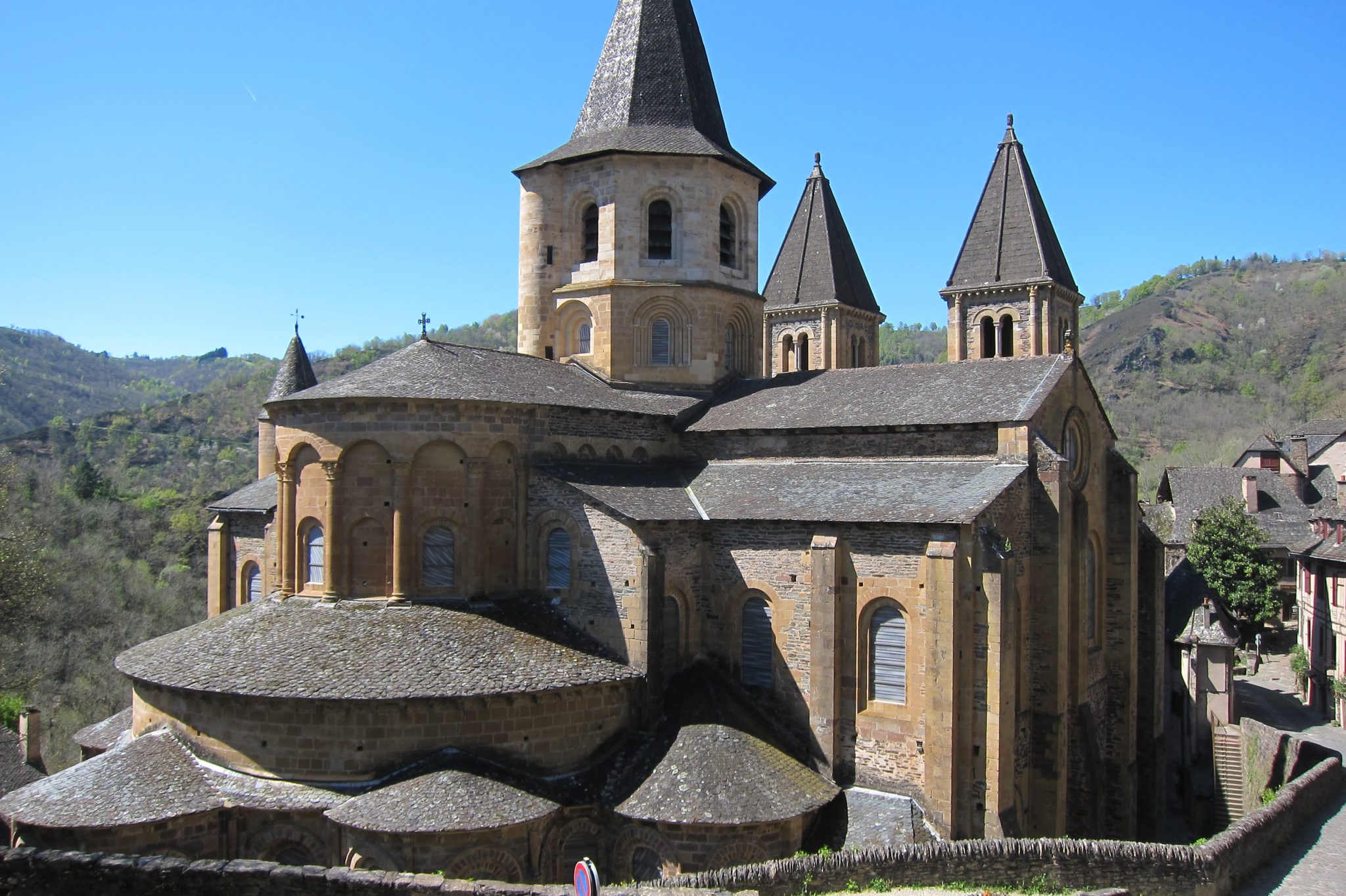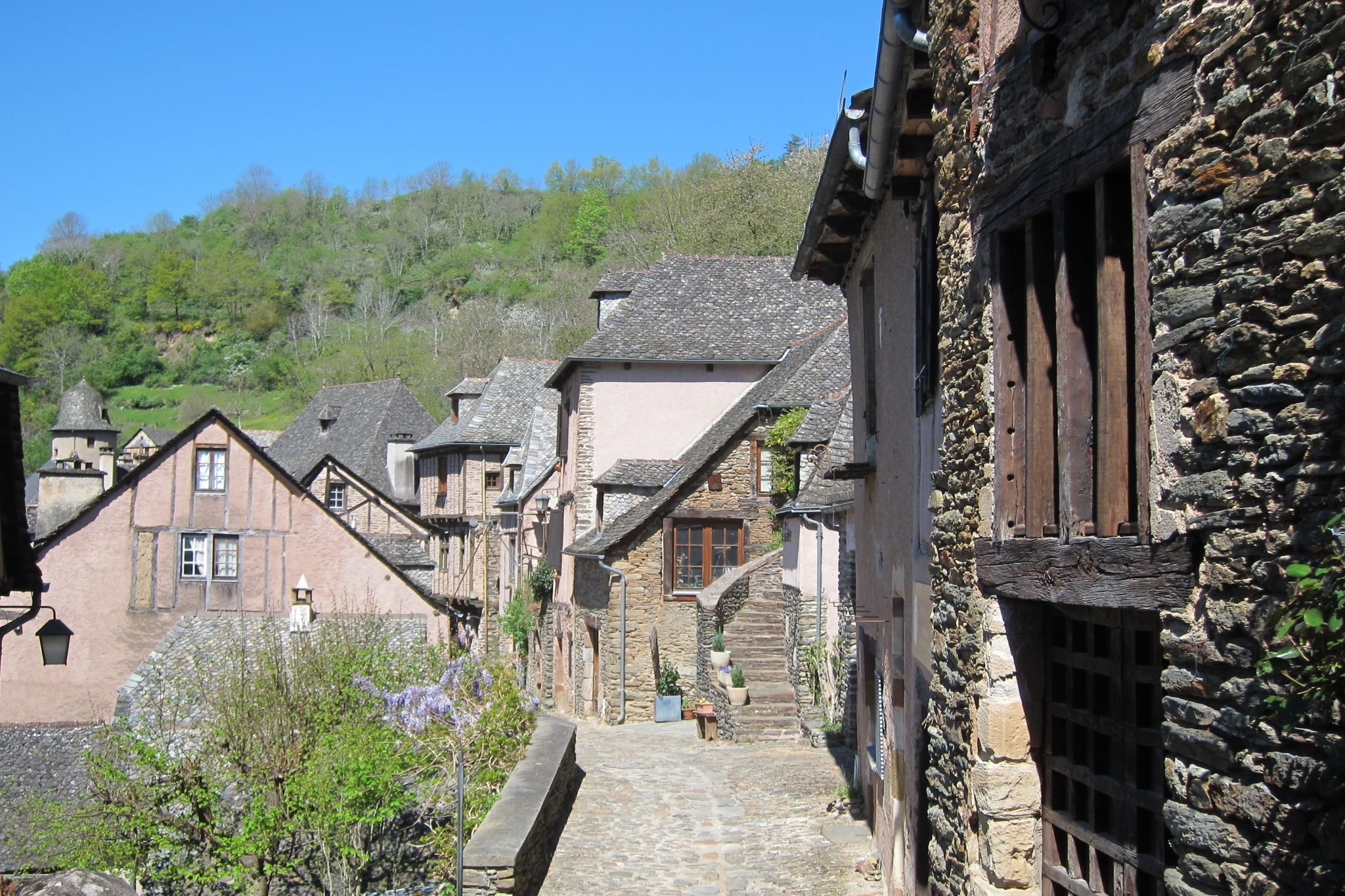Conques ir neticami maza, burvīga pilsētiņa – ar milzu katedrāli viducī. Apskatu šejienes komunālo žitu, tad ielūkojos Renē piezīmēs – viņš rekomendē palikt abatijā iepretim katedrālei. Turp arī dodos un tā tiešām ir feina – iekārtota vēsturiskā ēkā, sagaidītāji laipni bez gala. Vienīgi sagaidot tiek veikta atrakcija – mugursoma tiek ielikta lielā celofāna maisā, kas pirms tam tiek sapūsts ar dezinfekcijas līdzekli. Laikam kādi mazie zvēri šeit arī iecienījuši palikt.