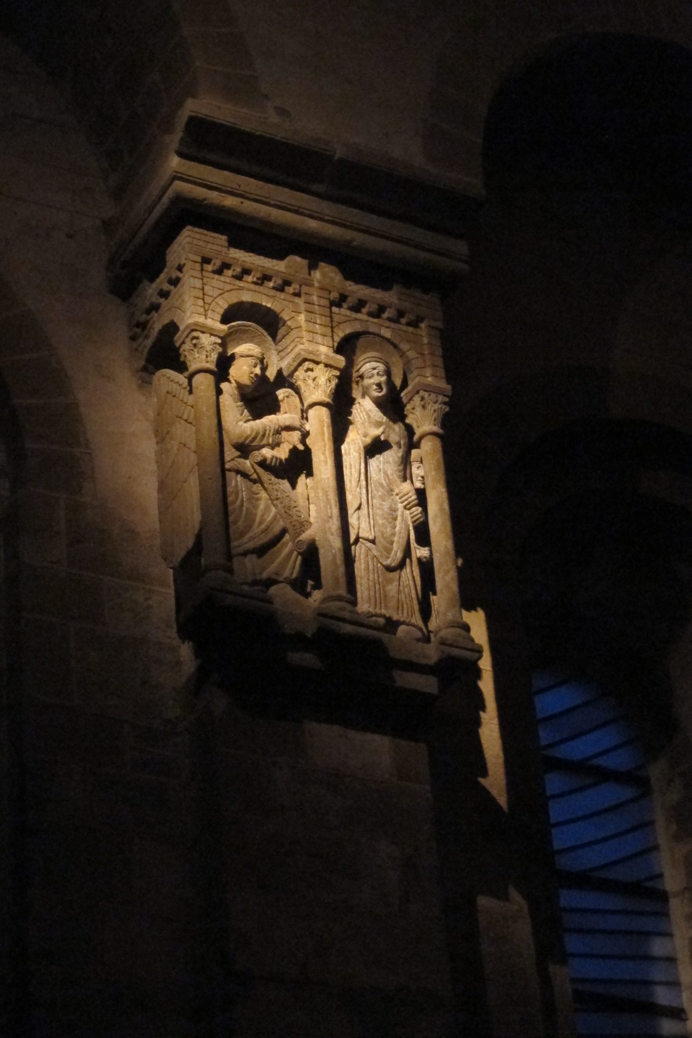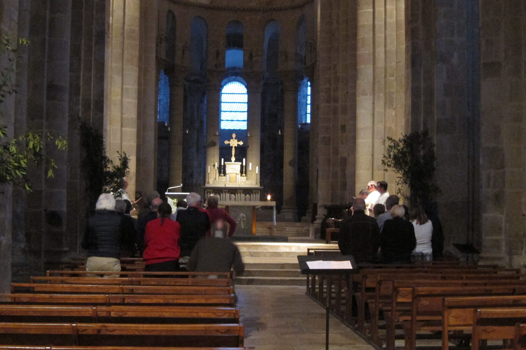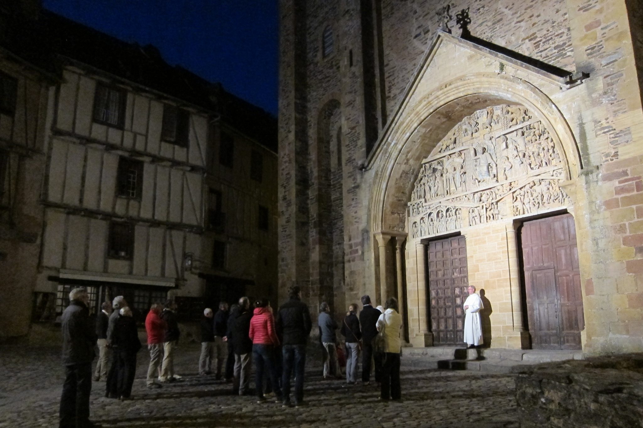 Krietni ieturējušies, dodamies uz vakara atrakcijām baznīcā. Sākumā ir pavisam īss dievkalpojums, kas man tīri labi patīk – jo šoreiz tajā visu laiku dzied, nobeidzot pasākumu ar Utreia. Pēc tam ļautiņi sapulcējas pie katedrāles ieejas, kur mūks pusstundu stāsta leģendu par virs durvīm esošajām figūriņām. Franciski, protams. Tomēr viņš to dara ar tādu aizrautību, ka viņa runu var vērot kā performanci, ko arī daru. Tad atkal ejam iekšā un sākas noslēguma pusstunda – ērģeļu koncerts. Neesmu nekāds ērģeļu fans, bet šis pasākums ir iespaidīgs. Tiek rauta vaļā ne tikai garīga mūzika, bet piemēram, tiek uz ērģelēm nospēlēts “House of the rising sun”.. Un tas viss tiek pavadīts ar gaismas efektiem uz augstajiem griestiem. Wow!