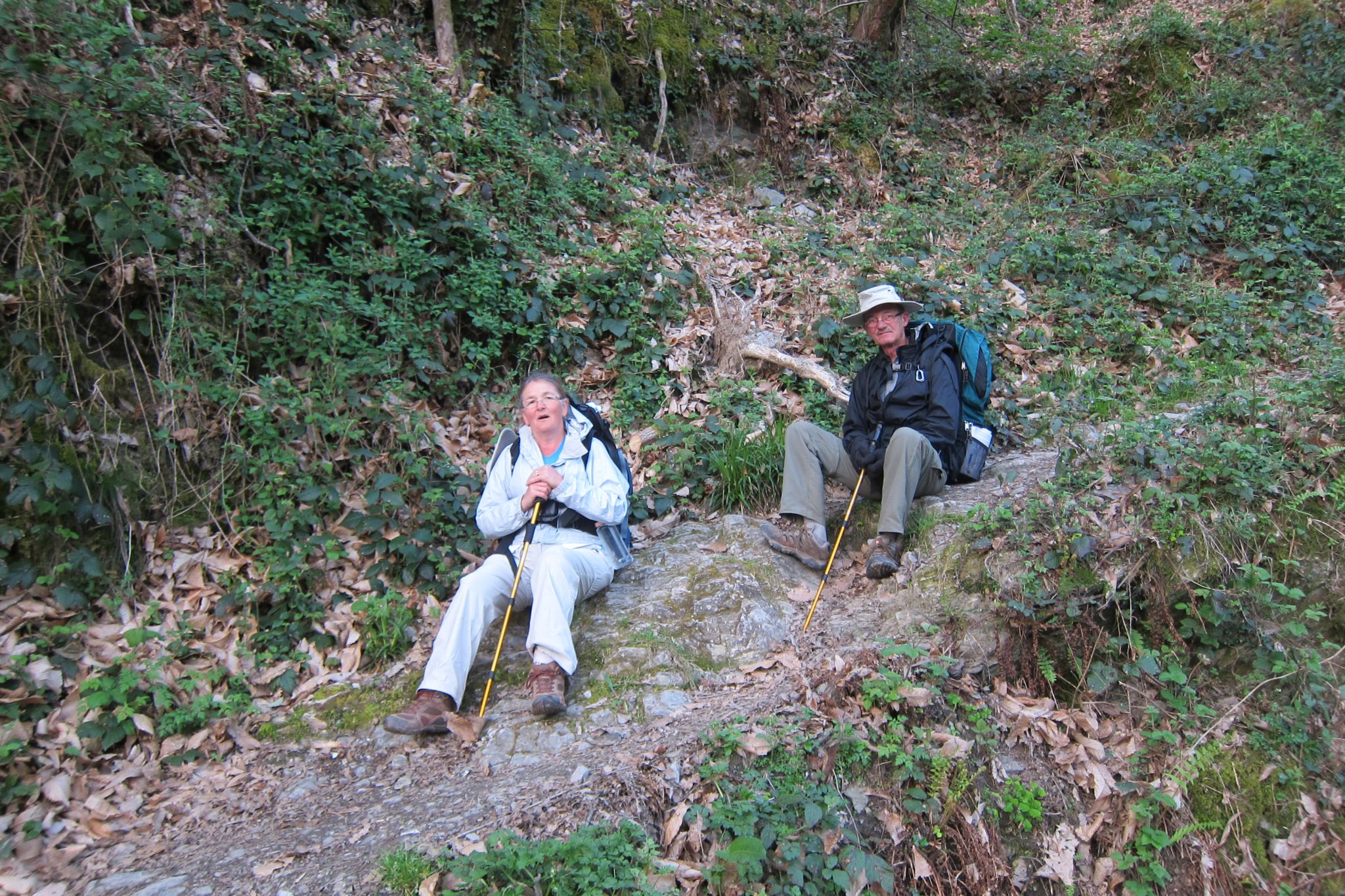 Atgriežamies pie norādēm, sākam kāpt lejup, bet pēc tam – augšup – nieka pusotru stundu. Vīrs cilpo pa priekšu, mēs ar kundzi elsdamas pūzdamas no aizmugures. Katrā atpūtas pauzē mazliet paklačojamies. Iesākumā viņa konstatē, ka mēs abas neesam nekādas kalnu kazas. Pilnīgi piekrītu. Pēc brīža kundzei pazudis vīrs un viņu neizdodas sasaukt. “Nu tā, esi pazaudējusi vīru”, konstatēju. “Ai, ko tur, nauda ir pie manis”, viņa priecīgi atbild.
