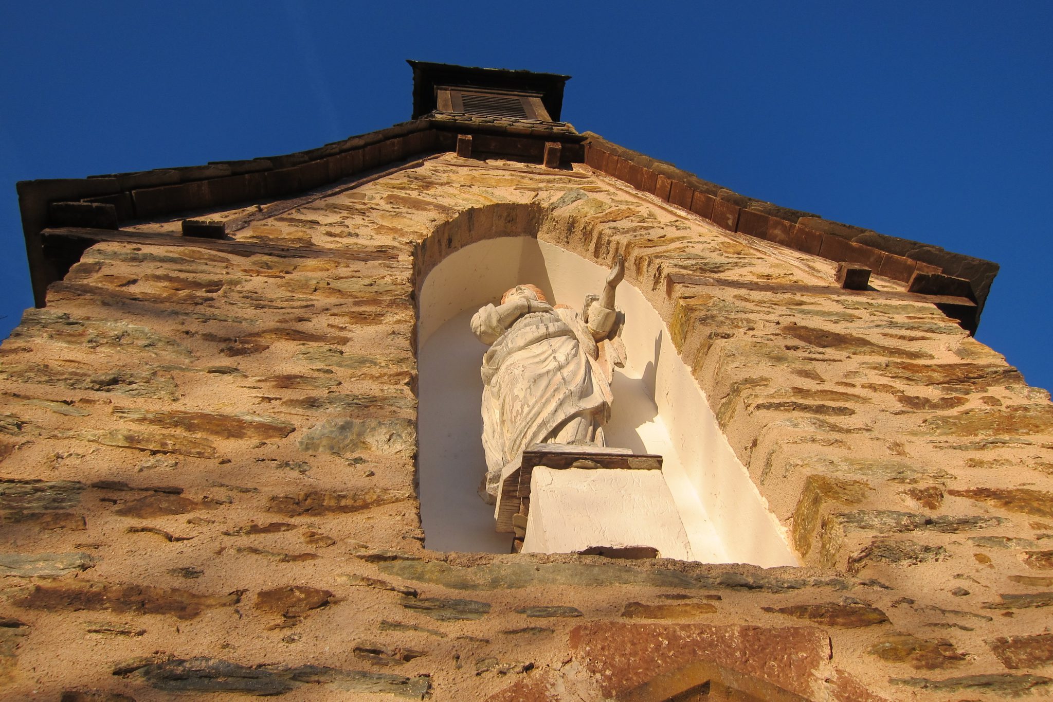 Esam uzrāpušās līdz nelielai kapellai kalna viducī. Vīrs jau tur sēž – iznesis vecu krēslu, nosēdies uz tā un bauda rīta sauli. Mēs sekojam viņa piemēram un pie reizes panašķējamies – es ar prieku notiesāju pēdējo apelsīnu, smagi ir stiept augļus.