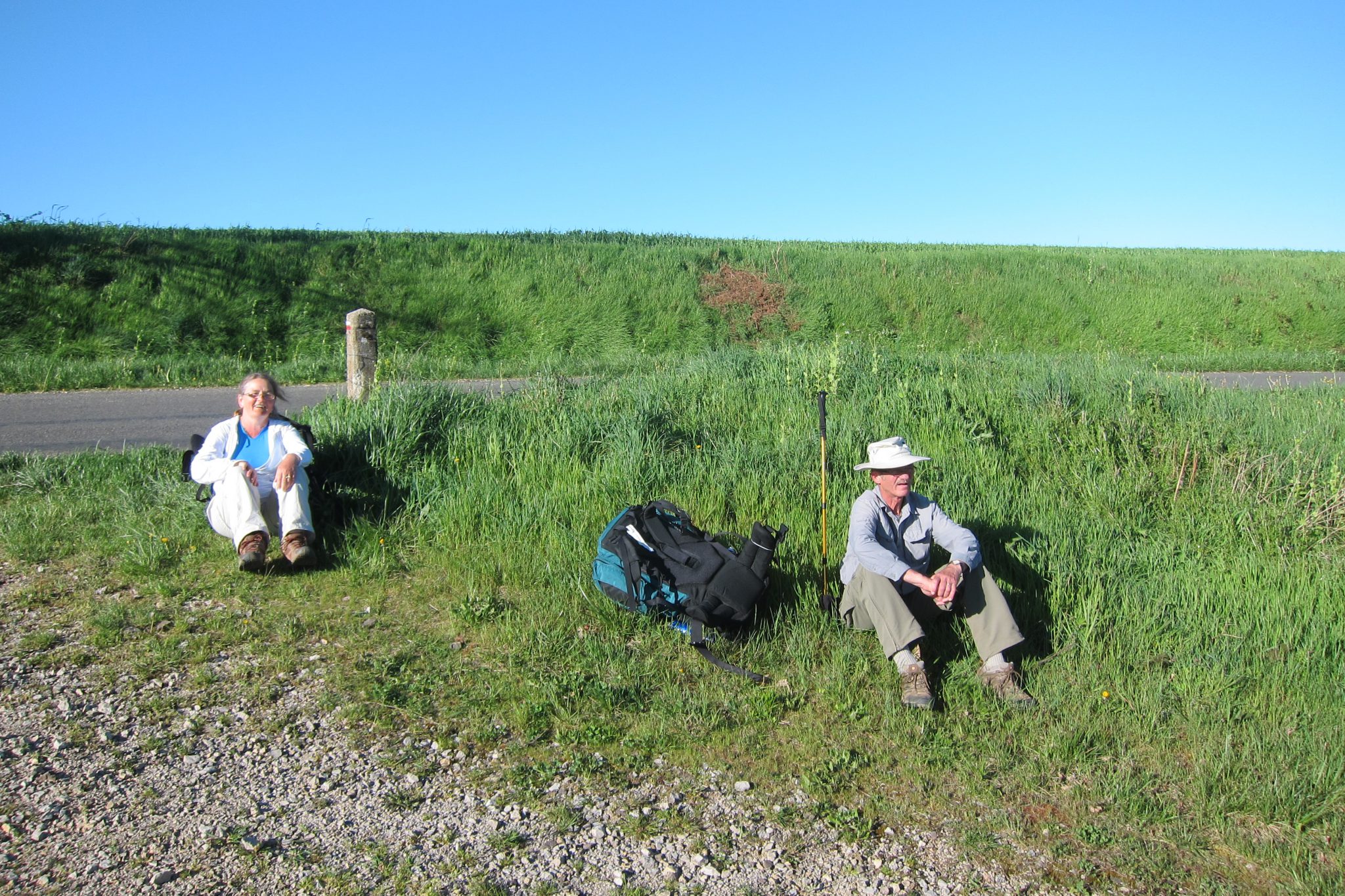 Bet nav ne viens, ne otrs. No rīta izeju pa abatijas durvīm 6:52! Beidzot. Pirms manis iziet humorīgā kanādiete ar vīru. Lai nesanāktu kā pirms dažām dienām, esmu smuki nopētījusi, kur sākas ceļš. Tomēr kanādiešu pāris turpina soļot taisni. Kad saku viņiem, ka man šķiet, ka tomēr jāiet citādāk, kanādiete atsaka, ka viņas vīrs visu ir pārbaudījis, zina, ko dara un vispār viņam lielākoties esot taisnība. Nu ka tāda lieta, sekoju viņiem. Pēc pārsimts metriem tomēr izrādās, ka šī būs no tām retajām reizēm, kad vīram nav taisnība.