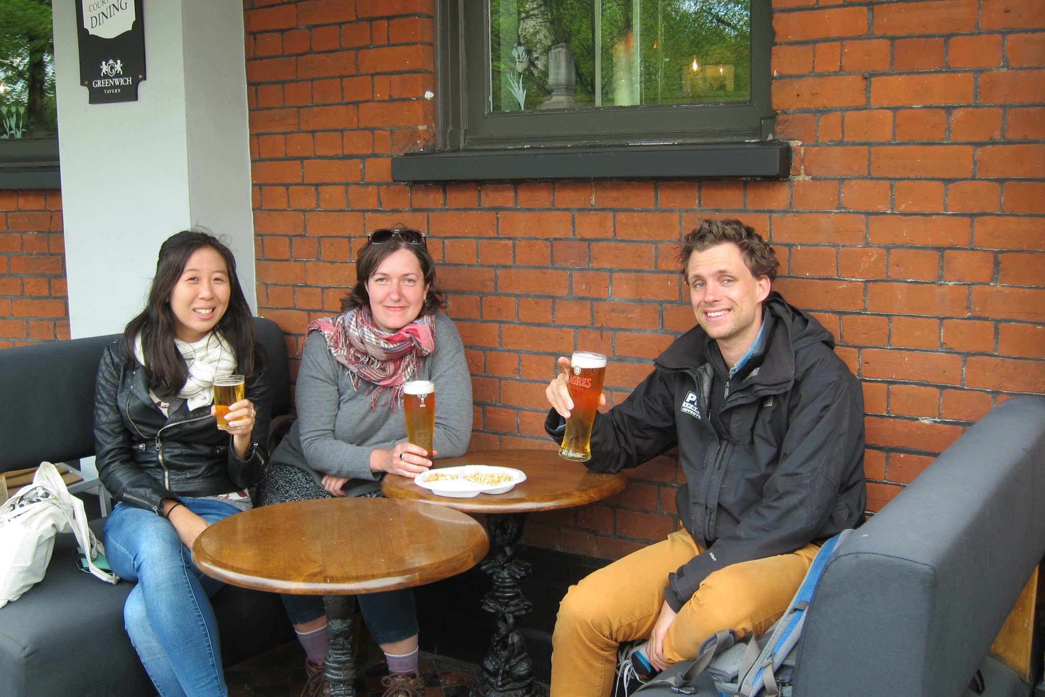 Ar Mikiju es iepazinos Singapūrā – kopīgā kaučsērferu velobraucienā. Viņš šobrīd atgriezies mājās, Amsterdamā un kā gadījies, kā ne – atbraucis uz Londonu brīvdienās. Vēl šeit arī ir meitene no Singapūras – Stefānija – dzimusi Jaunzēlandē ar dzimtas saknēm Ķīnā. Mēs satiekamies centrā un tad lecam vilcienā uz Grīnviču. Nonākuši tur, iesākumā apciemojam mazu antikvariātu, kura mīlīgajā pagalmiņā iemalkojam kafiju un angļu tēju. Tad dodamies pie slavenā meridiāna, apskatām vietējo tirdziņu, pablandāmies pa parku. Tāda pilnīga chill-out diena – daudz vienkārši sēžam uz soliņiem un zirgojamies. Vakarā to pašu darām ar Elīnu un Krisu piemājas krodziņos. Paēdam vakariņas, tad aizdodamies iemalkot alu netālā bārā, ko bijusi iemīļojusi Eimija Vaithausa. Pielūdzēji kroga tualetes ir greznojuši ar daudziem Eimijai veltītiem novēlējumiem. Drīz vien jau atvados no feinajiem Londonas uzņēmējiem un liekos slīpi – trijos naktī jāsāk ceļš Balkānu virzienā.