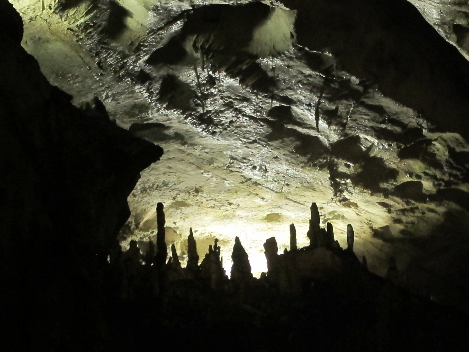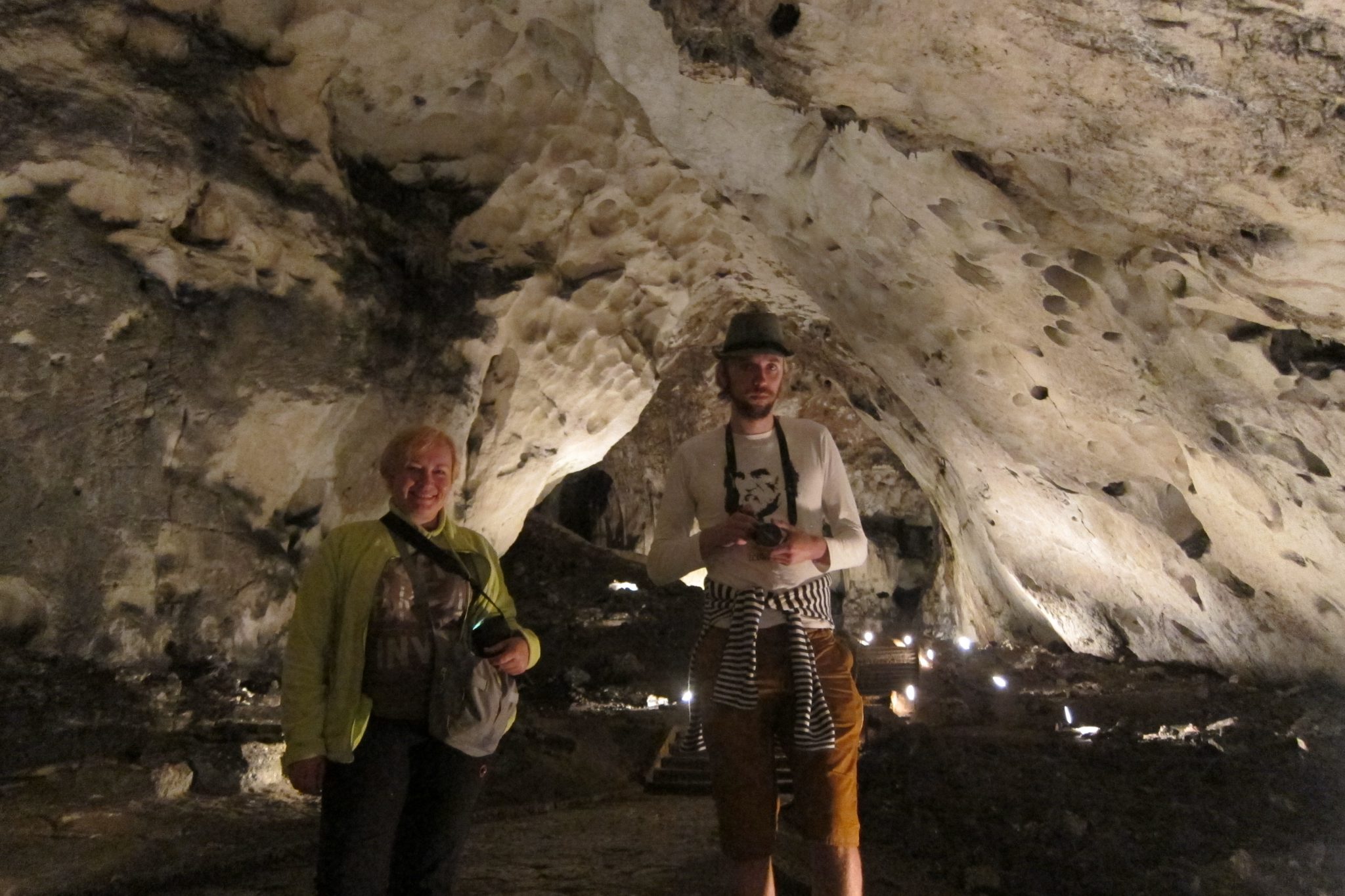 Pazemes alu komplekss ir iespaidīgs – ejam caur tām pa taku pusotra kilometra garumā, cenšoties vienlaikus nepakrist uz slidenajiem akmeņiem, aplūkot varenumu un vēl noķert kādu kadru. Pie alas galvenā lepnuma – seno cilvēku zīmējumiem – mūs nelaiž. “Redzi, kāpēc,” Raimons rāda uz alas sienu, kur visā krāšņumā redzami mūsdienu cilvēku mākslas darbi. Iespējams, pēc laika tos izrādīs nākamajām paaudzēm kā īpašu mūsu laikmeta liecību.