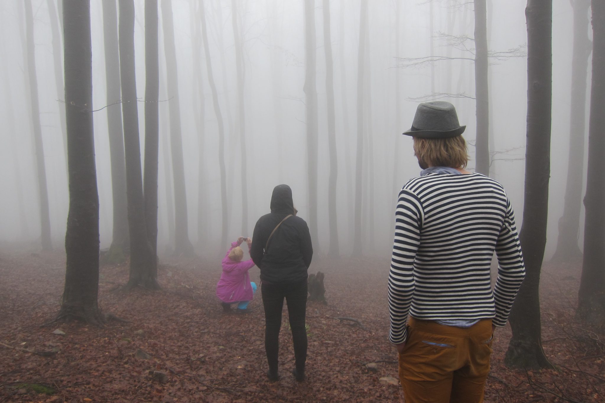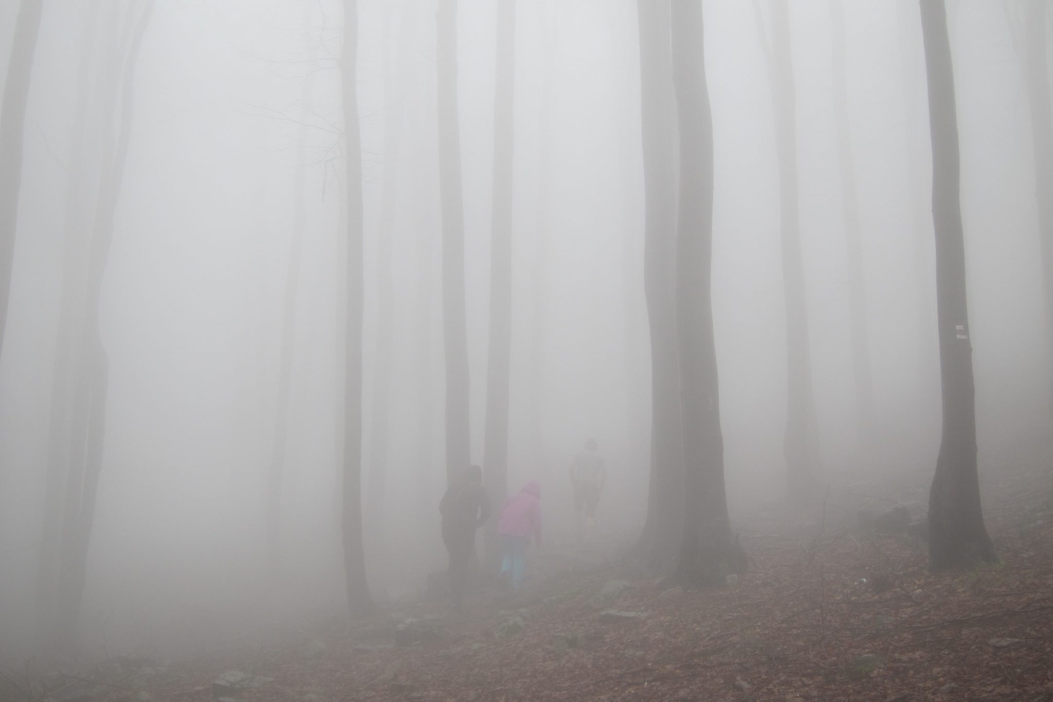 Vēl kādu brīdi braucam pa sauli, tad ceļš sāk vīties kalnup un lēnām top aizvien miglaināks, līdz esam pilnīgi ietinušies mākoņos. Uzbraucam līdz kalnu avotiņam un sākam kāpt augšup, lai atrastu kārtējo slēpni. Viss mežs miglas pievilcies un neredz tālāk par pārdesmit metriem. Ezīši brien arvien dziļāk miglā un es lāčoju nopakaļus. Atraduši atrodamo, uzpildām ūdeni un braucam no kalna lejup. Sākumā atkal neredz neko, bet ar katru kilometru aina top skaidrāka un ainava zaļāka.