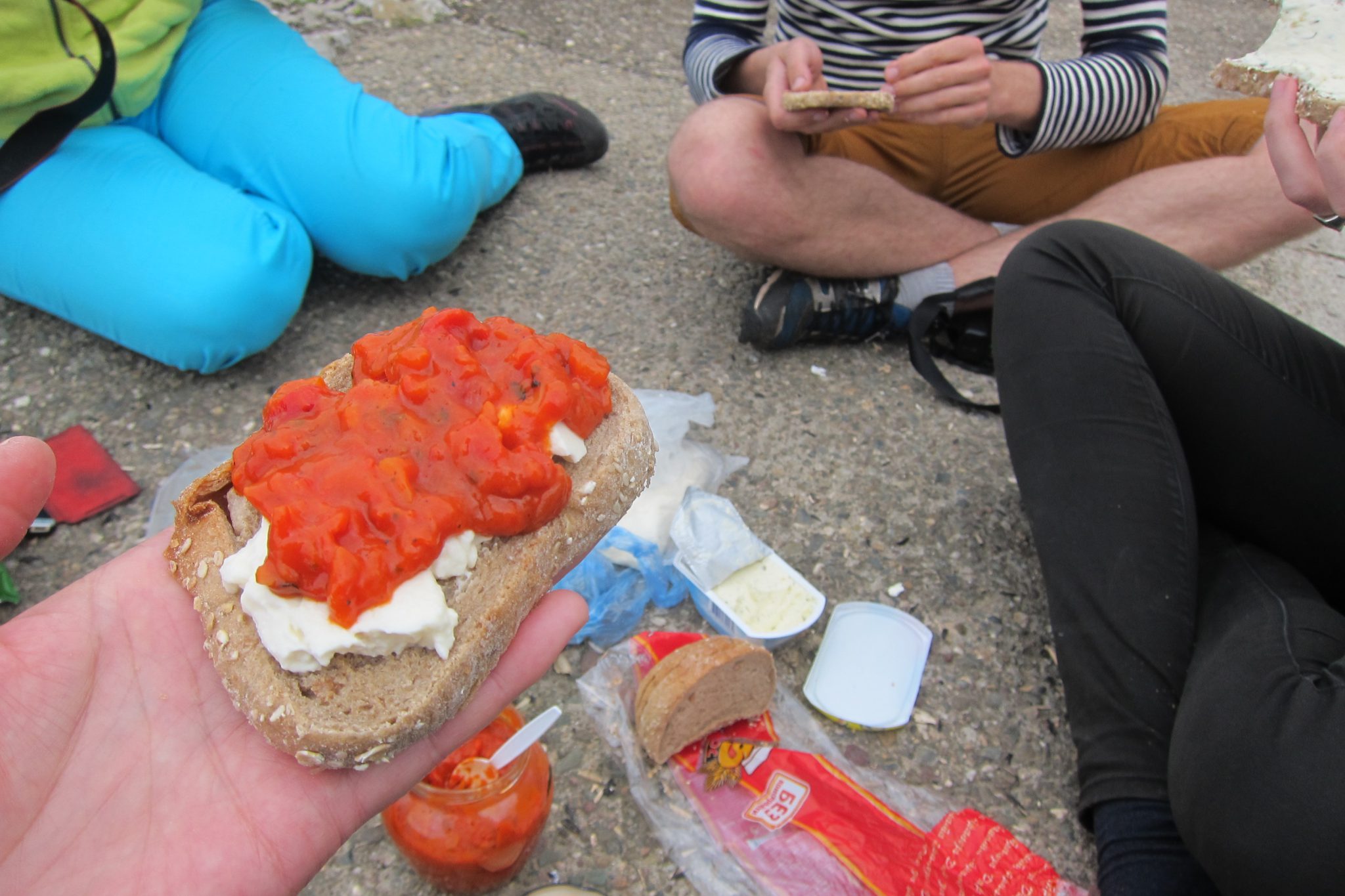 Meklējam vietu pusdienu pauzei un atrodam to cietokšņa drupās, no kurām pārredzama Montanas pilsēta. Maltītes gardums ir tikko pirktais aitas siers ar olīvu pastu un vietēju lečo. Ieturējušies, safočējušies un samīļojuši pa ceļam sastaptos kucēnus, turpinām braukt Belogradčikas virzienā.