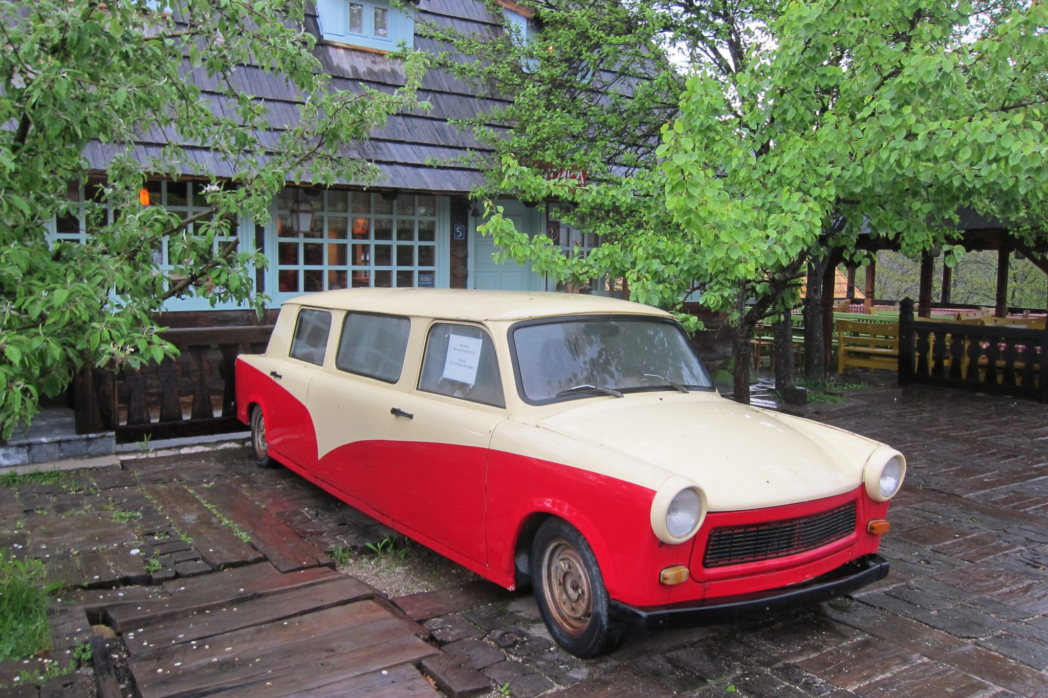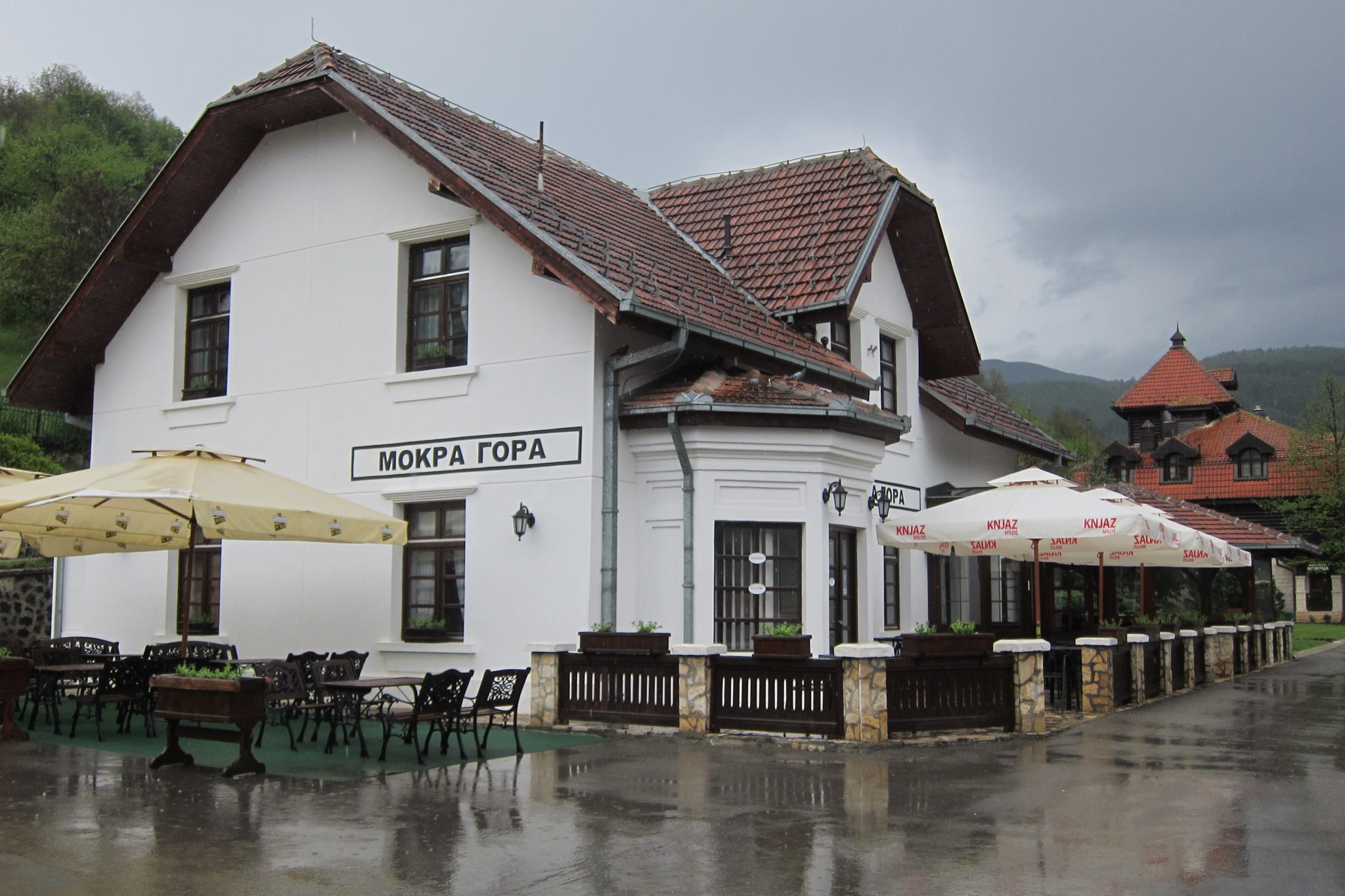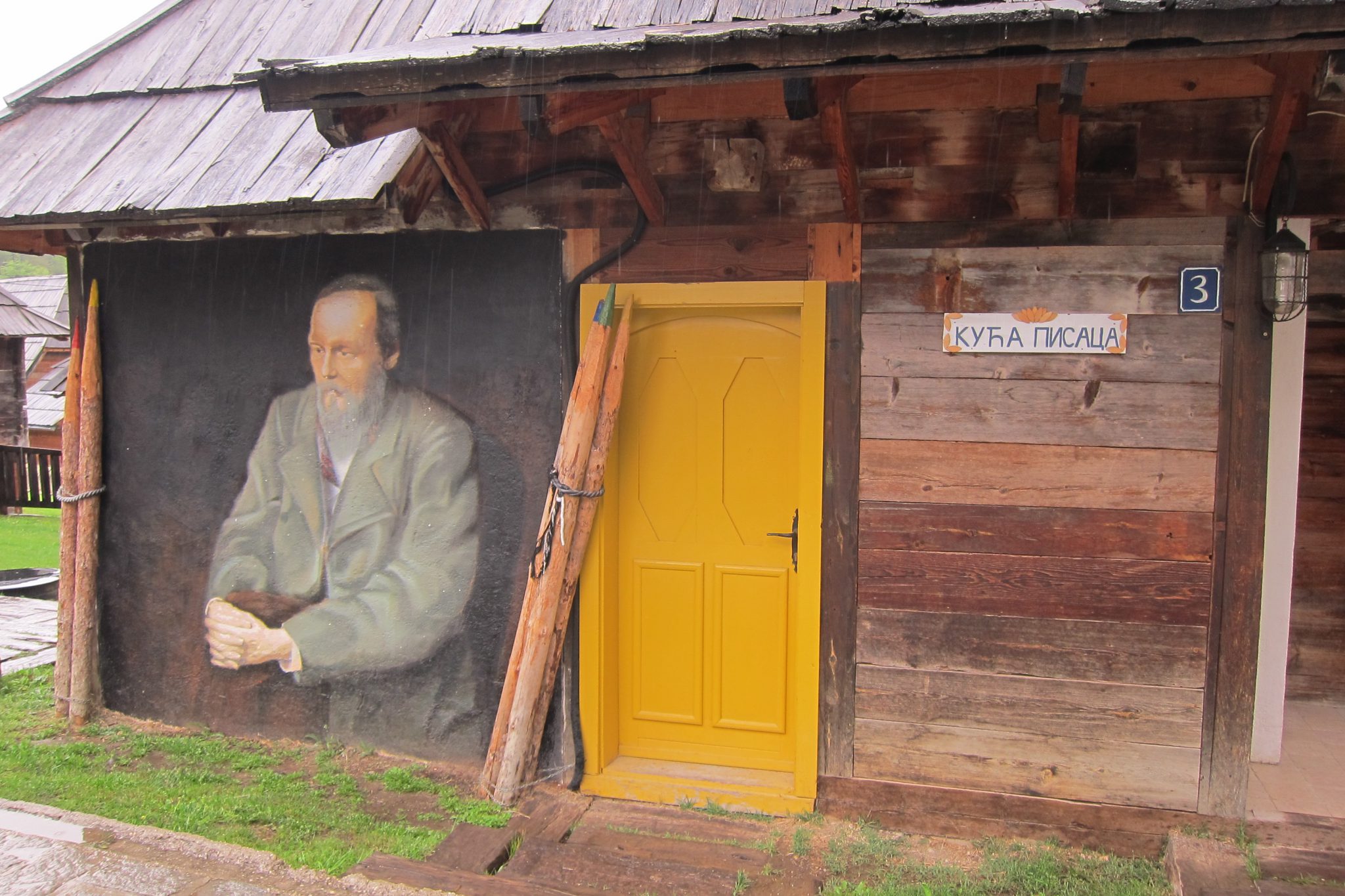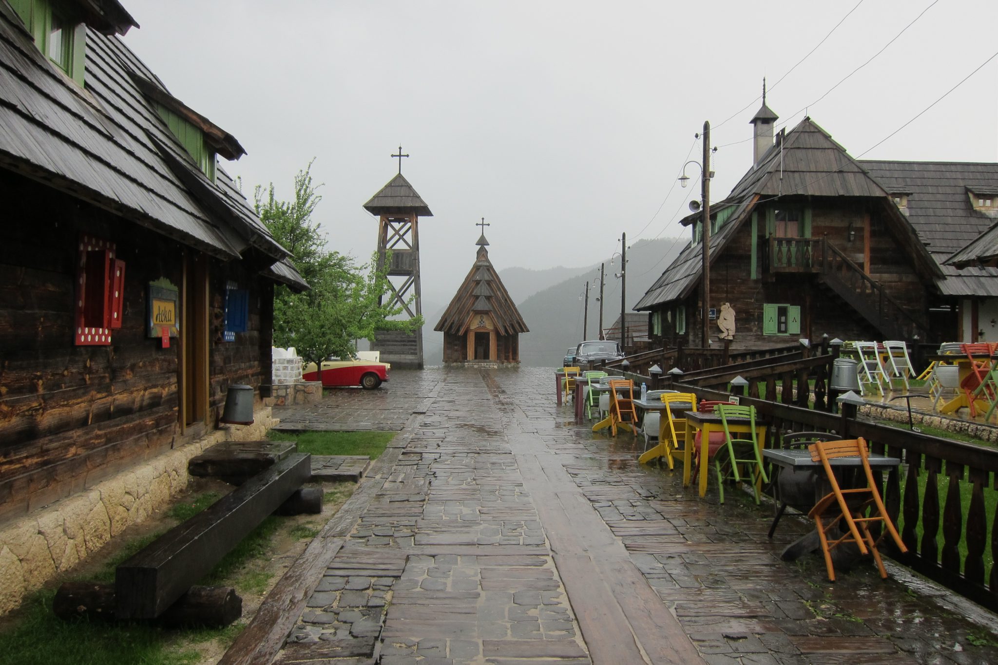Tālāk dodamies uz Mokra Gora, pie kuras atrodas Emira Kustoricas filmu pilsētiņa un stacija, kurā tapusi filma “Life is a miracle”, kas ietilpst manu mīļāko kinodarbu klāstā. Nonākuši galā, sākam vizīti ar tējas-kafijas dzeršanu un kūku ēšanu, jo ārā traki līst. Situācija diži nav mainījusies arī pēc pauzes – ejam apskatīt pilsētiņu pa visu lietu. Noslēgumā noskatāmies fragmentu no filmas “Blue gipsy”. Vēl piestājam stacijā, kurā risinājās būtiski filmas notikumi un laižam Sarajevas virzienā.