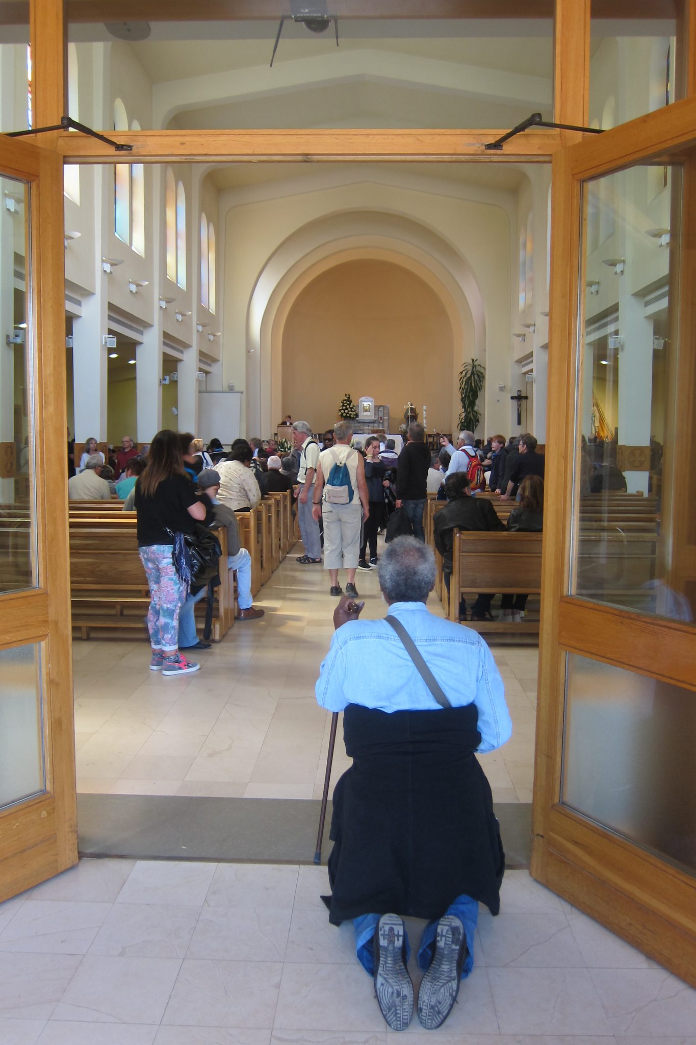Piebraucam pie baznīcas un cenšamies nepazust pūlī. Tūristi te sabraukuši meklēt brīnumus ar milzu autobusiem. Baznīciņa īsti nekāda, nolemju apiet tai apkārt. Otrā pusē redzama apaļa skatuve un ap to – solu rindas. Pēc visa spriežot, šeit varētu notikt rādīšanās rituāls. Neizskatās, ka kaut kas tuvākajā laikā plāno rēgoties, soli ir pamatā tukši. Pie baznīcas, parkā uz soliņa, sēd vīri talāros un maina grēksūdzes pret svētību. Mani piesaista kāds vīrietis labākajos gados, kurš sev priekšā izlicis valodu plāksnītes, kurās viņš runā, jo viena no tām vēsta, ka viņš runājot arī lietuviski. Mani, protams, tirda ziņkāre – kā tas nākas. Pagaidījusi, kamēr viņš beidz runāt ar pāris grēciniekiem, sēžos blakus un uzdodu šo jautājumu. Izrādās, ka organizācija, kurā viņš darbojas, ir no Lietuvas, vīrietis tur nodzīvojis sešus gadus. Pats dzimis itālietes un spāņa laulībā. Vārds pa vārdam, un mūsu saruna tomēr nonāk līdz tādai, ko attāli varētu uzskatīt par grēksūdzi. To nu es šeit atļaušos neizklāstīt, vien piebildīšu, ka tā, lietojot Raimona bieži piesaukto terminu, bija kvalitatīva. Ieskatam viens teikums: “You shoudn’t make decisions based on emotions but on a will.”