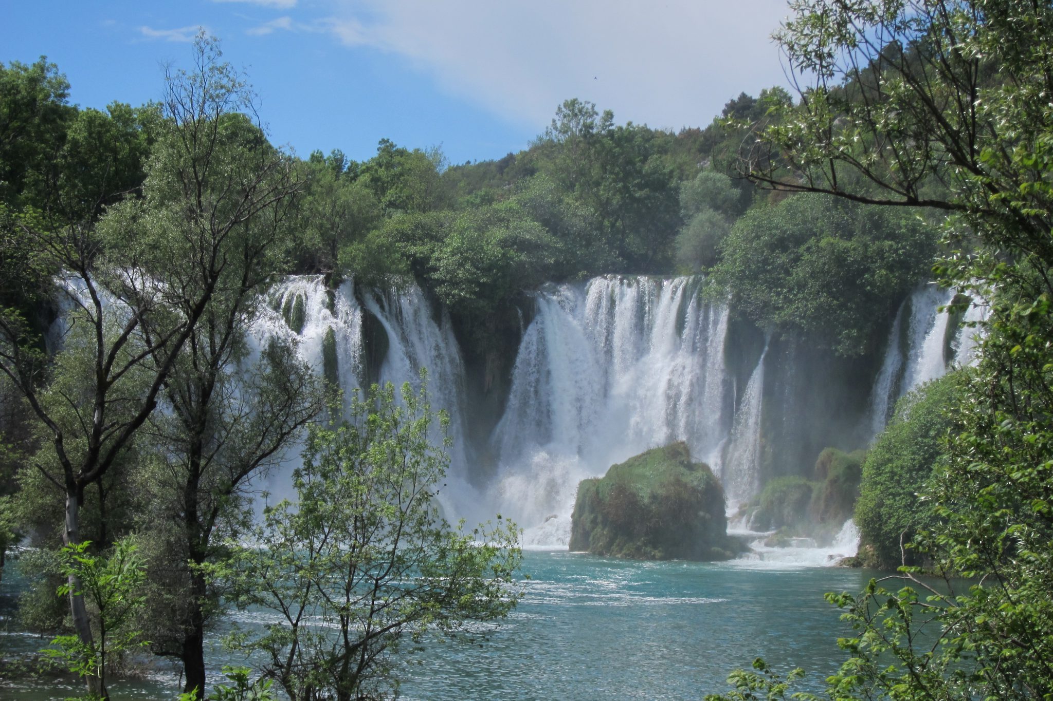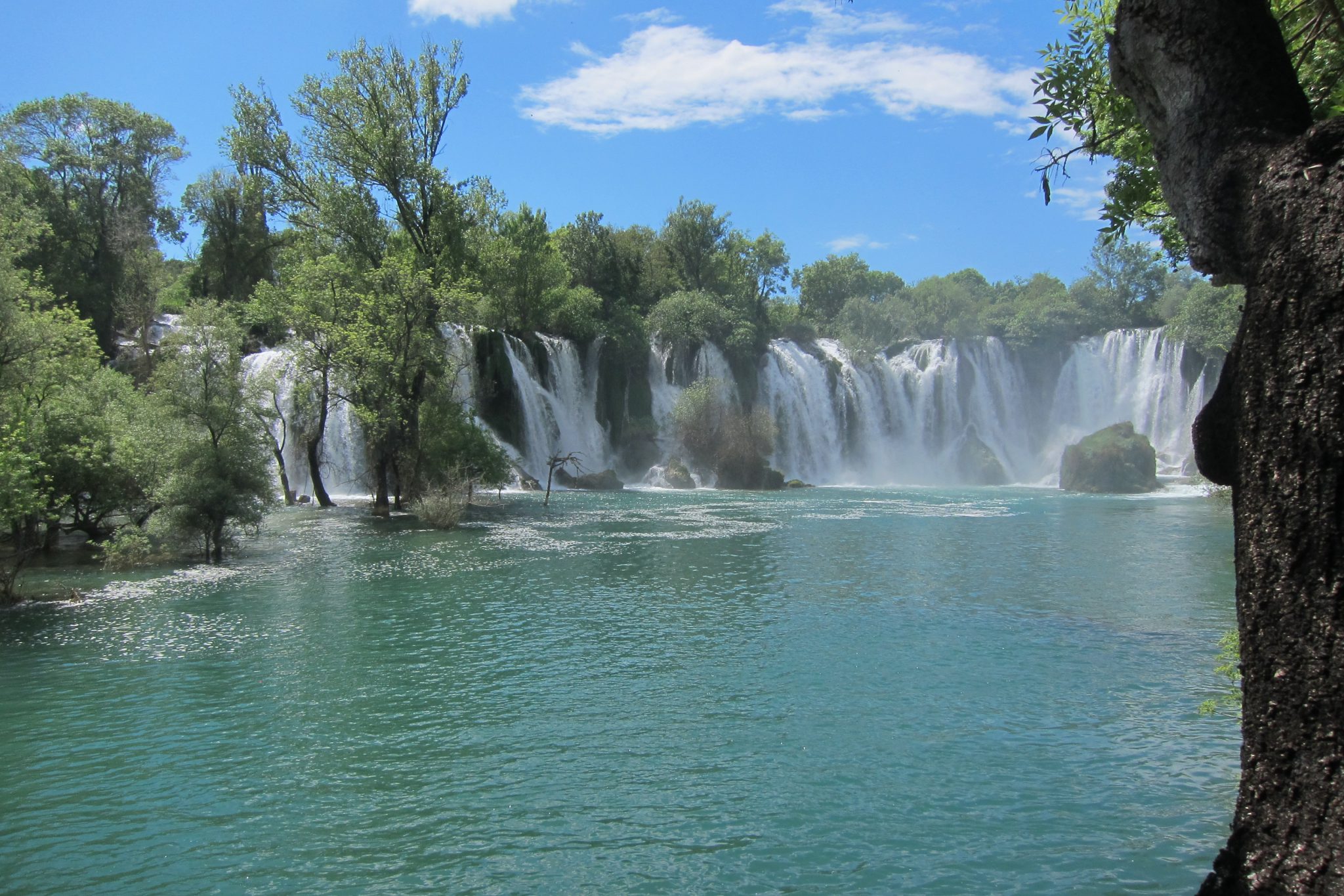 Pēc tam braucam skatīties, kā pār klinšu malām no 26 – 28 metru augstuma gāžas Trebižatas upe, veidojot 120 metrus platu ūdenskritumu – Kravicu. Kamēr citi vien skatās, Raimons arī šeit nelaiž garām iespēju nopeldēties – šoreiz viņš aukstajā ūdenī pavada krietni ilgāku laiku. Vienīgi, atšķirībā no iepriekšējās peldes, nelīst.