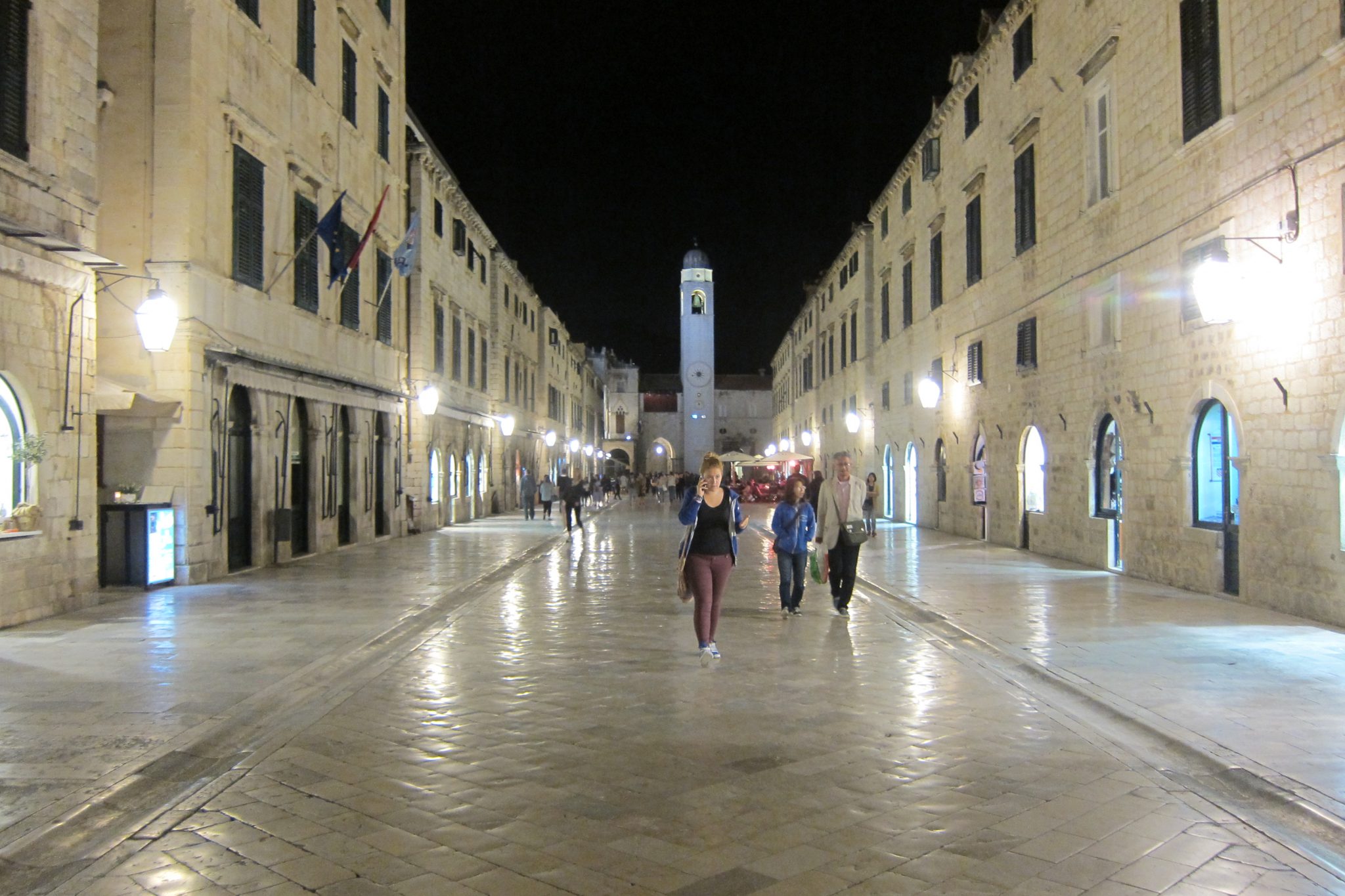 Naktsmītne mums atkal ekskluzīva – diezgan smalks apartaments par 10 eiro no deguna. Noliekam somas un dodamies aplūkot Dubrovnikus. Vecpilsēta ir krāšņa, bet mums šobrīd vairāk prāts nesas uz vakariņām. Tomēr, izpētījuši pāris iestāžu ēdienkartes, nolemjam laimi meklēt ārpus tūrisma centra – vakar jau gana samaksājam par skaisto skatu. Drīz aiz pilsētas robežām atrodam glītu picēriju – tur paēdam ļoti gardi un vismaz uz pusi lētāk. Gaidot, kamēr malkas krāsnī top mūsu vakariņas, diktējam Raimonam pastkartiņas tekstu, katrs izdomājot vienu teikumu. Cerams, saņēmējai būs viss kārtībā ar humora izjūtu. Uzsitam vēl arī pāris zoles partijas, iemēģinot tikko iegādāto suvenīrkāršu funkcionalitāti. Braucot mājup, atrodam slēpni un Raimons notestē Adrijas jūras ūdens temperatūru. Ir būtiski siltāk.
