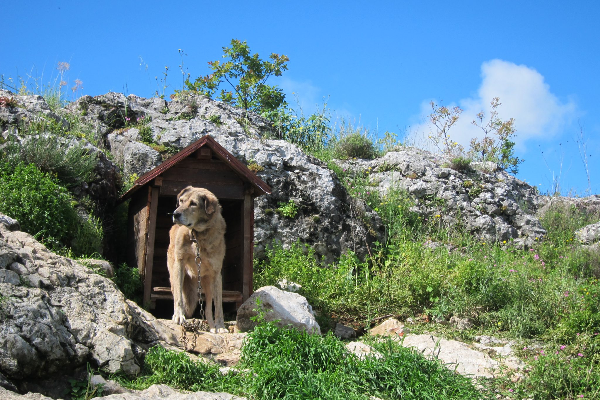 Netālu no Tirānas klints galotnē slejas senas pils drupas ar vienu tornīti, kurā iekārtots restorāns un, protams, slēpjas slēpnis. Kamēr snaikstāmies ap akmeņiem, meklēdami to un izlikdamies, ka no šīs vietas ir īpaši labi fotografēt apkaimi, mums garām iet vietējie vīri un vedina doties pa taku tālāk – tur būšot vēl varenāka ainava. Takas iesākums ir stāvs un vīrs man padod roku, lai tieku augšā. Mani, vairāk par ainavisko skatu, vilina ēzelis, kas stāv pie kores. Lai nokļūtu pie ēzeļa, jāiet garām aitai, kuras liktenis ir vairāk nekā skaidrs. Atpakaļceļā jau redzu sākumu dīrāšanas procesam. Kārtējo reizi iztirzājam jautājumu – vai šī būtu īstā vieta, kur palikt un pamēģināt aitas smadzenes, bet vienojamies, ka tomēr izlaidīsim šo iespēju.