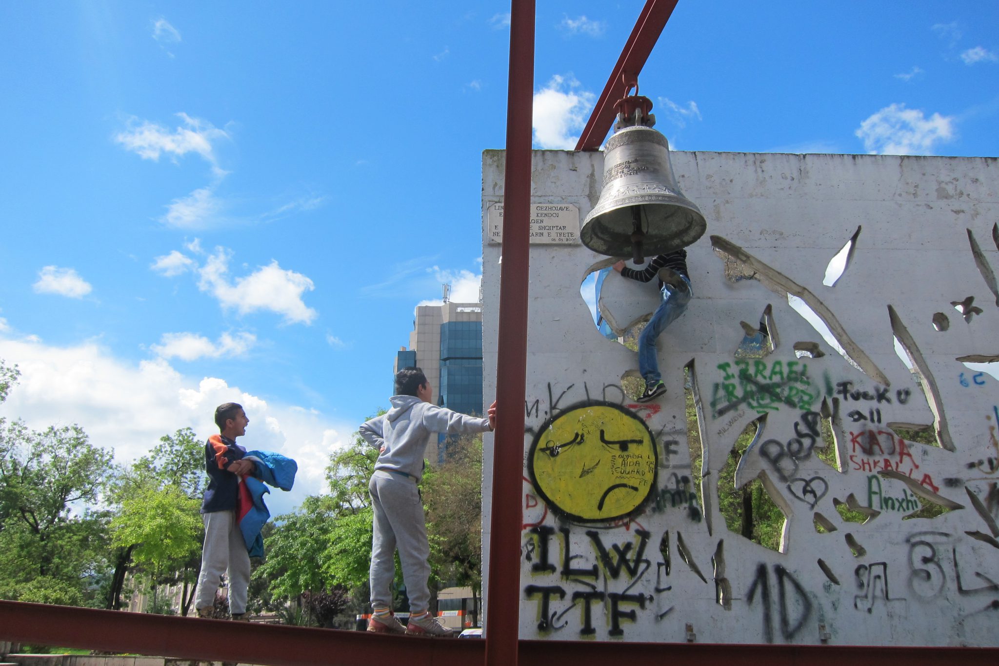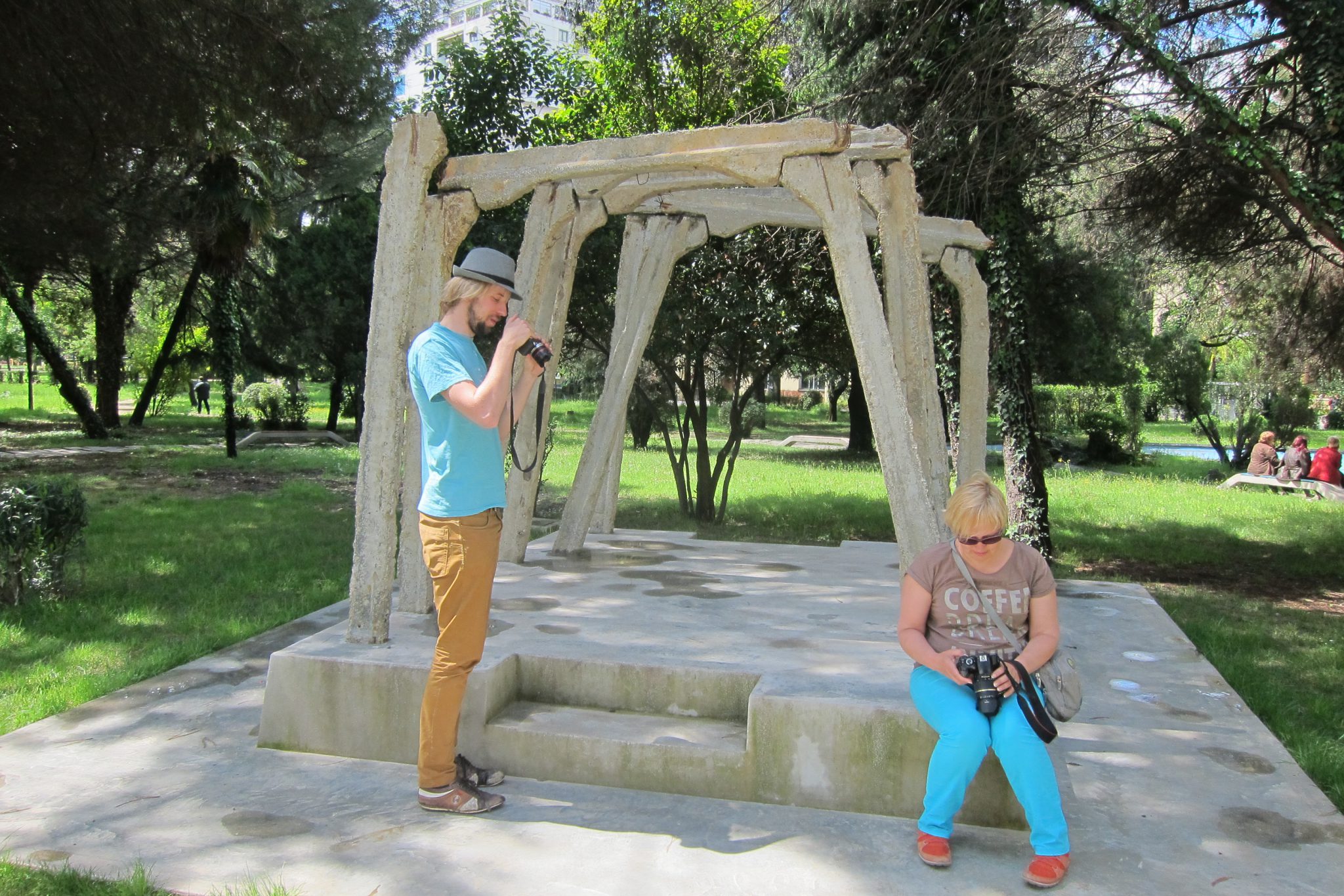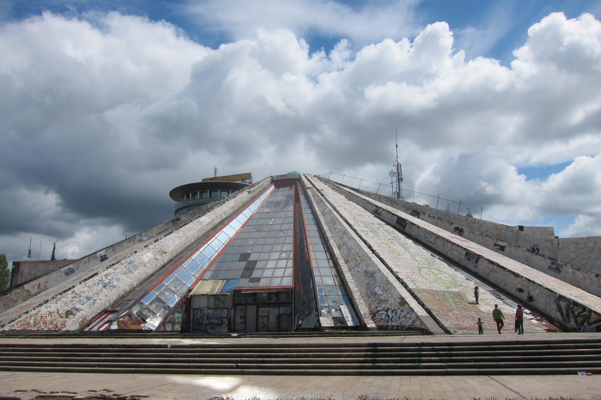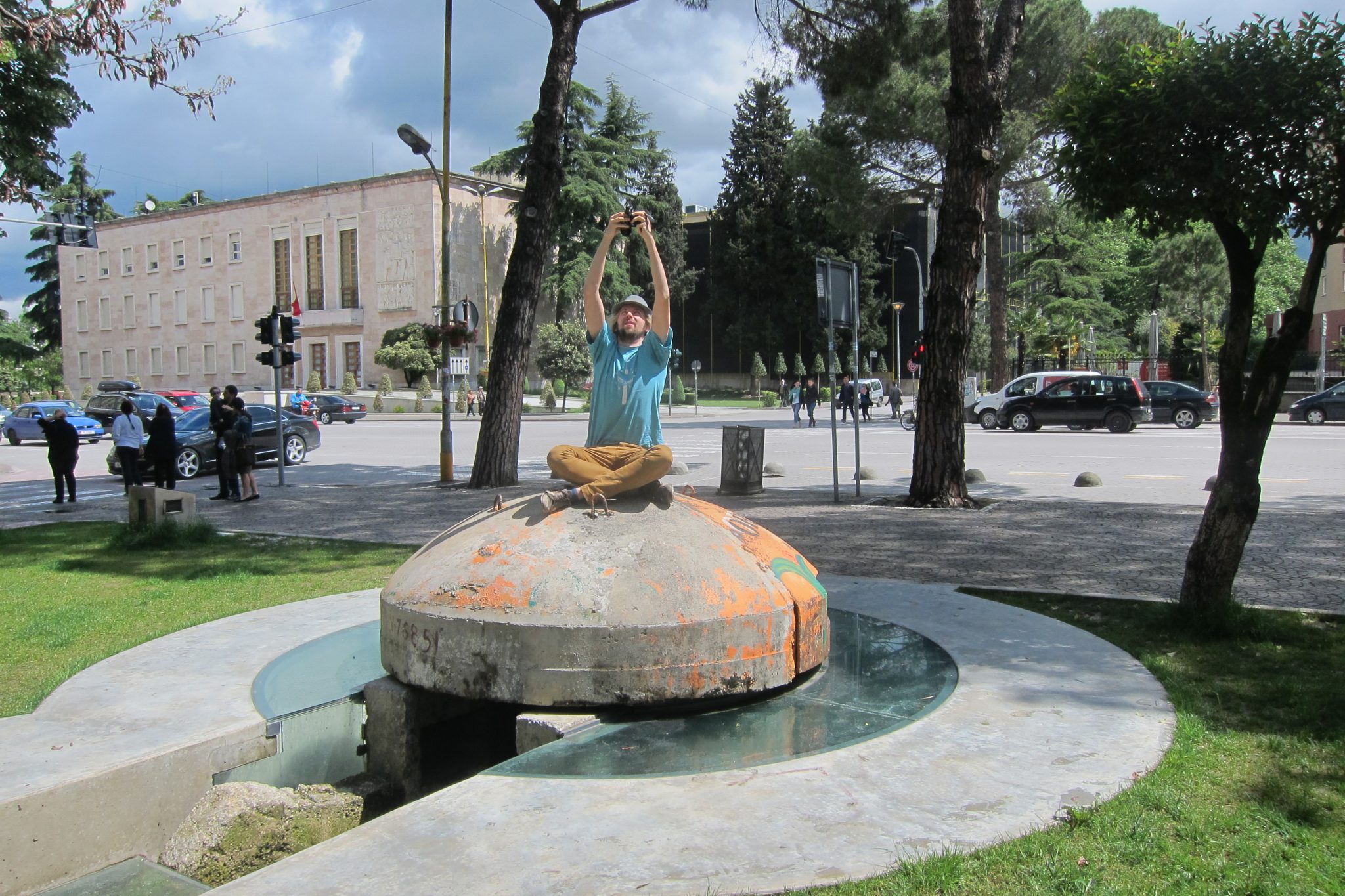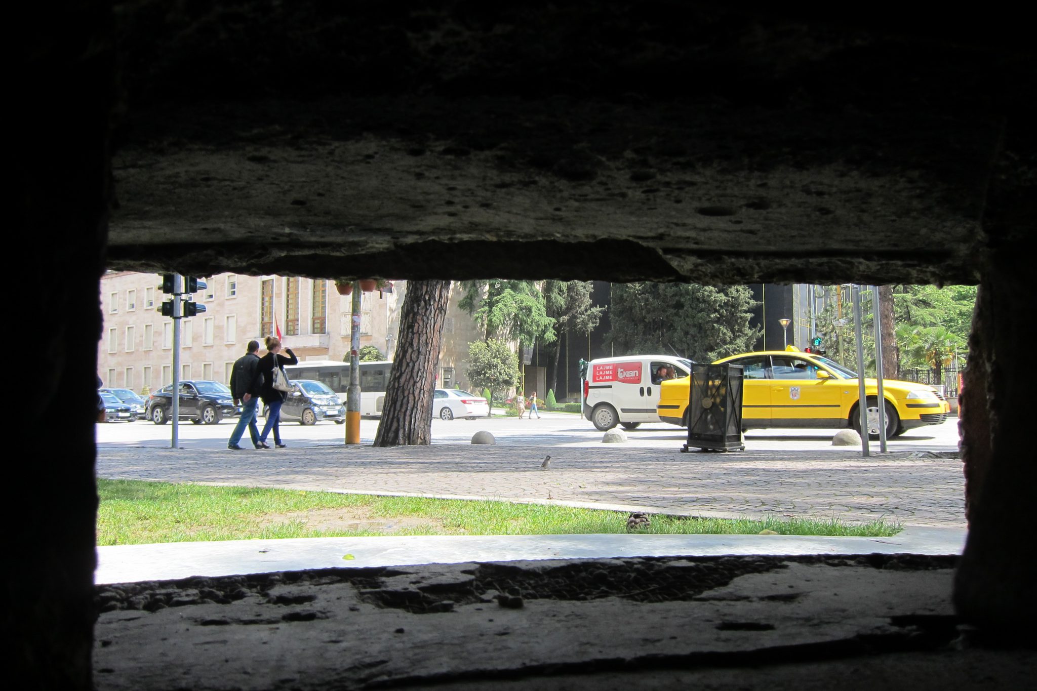 Vakar izšāvāmies cauri Tirānai tumsā, tāpēc tagad dodamies to apskatīt labas redzamības apstākļos. Pilsēta ir diezgan kolorīta – daudzas ēkas var lepoties ar oriģināliem krāsojumiem, vecas, pussagruvušas celtnes mijas ar omulīgām, stilīgām kafejnīciņām. Iebraucam mašīnu daudzstāvu pazemes stāvvietā un, lai nokļūtu stāvu zemāk, kopā ar auto braucam liftā – diezgan jokaina sajūta. Centrā apskatām Berlīnes mūra fragmentu, nelielu bunkuru (ar slēpni) un piramīdveida ēku, pie kuras atrodas instalācija ar zvanu (un slēpni).