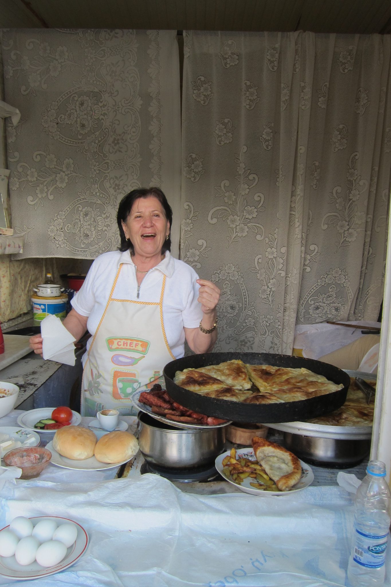 Nobaudījuši šejienes saldējumu (četras vafeles un deviņas bumbas = ~ 2 Ls) un atvairījuši mazu čigānmeiteni, pametam šo pilsētu. Uzsākam ceļu savas šī reģiona dzimtenes – Maķedonijas virzienā. Pa ceļam piestājam mazā Albānijas pilsētiņā, lai nopirktu ciemakukuli hostam (šovakar gan paliksim caur kaučsērfingu) un runīga albāņu cepēja pierunā mūs iepirkt svaigi ceptus siera pīrāgus. Noēduši vienu porciju, palūdzam vēl – tie garšo lieliski un maksā nepiedienīgi lēti.