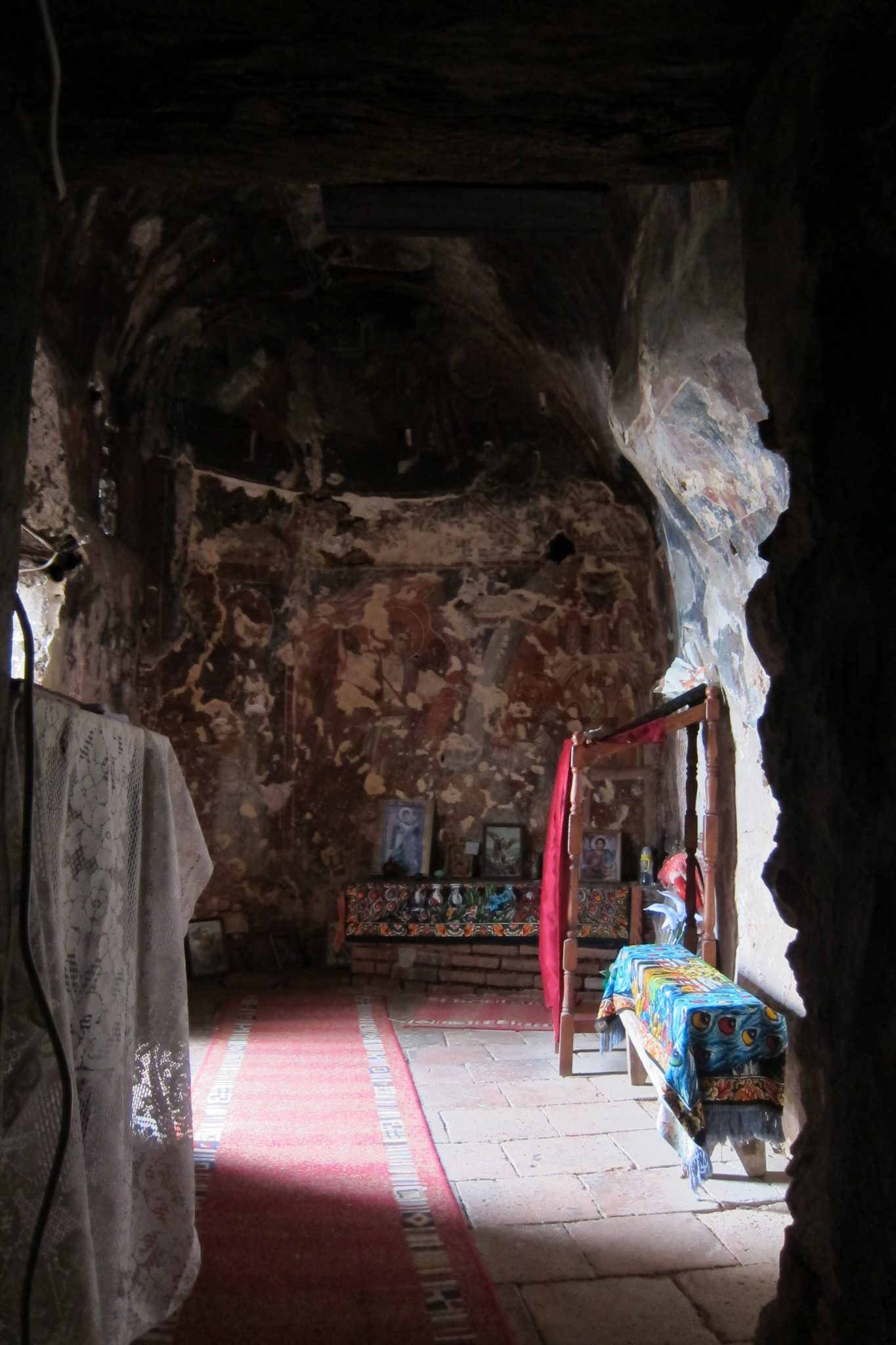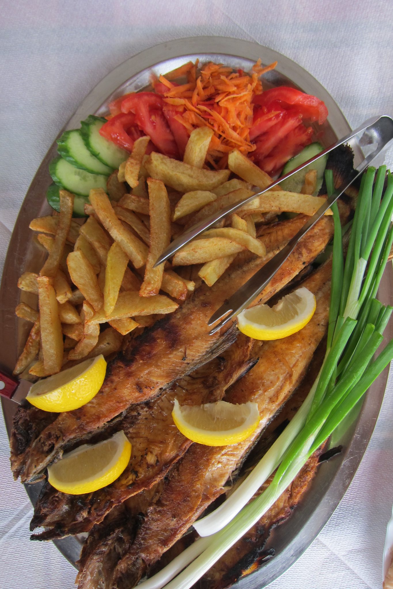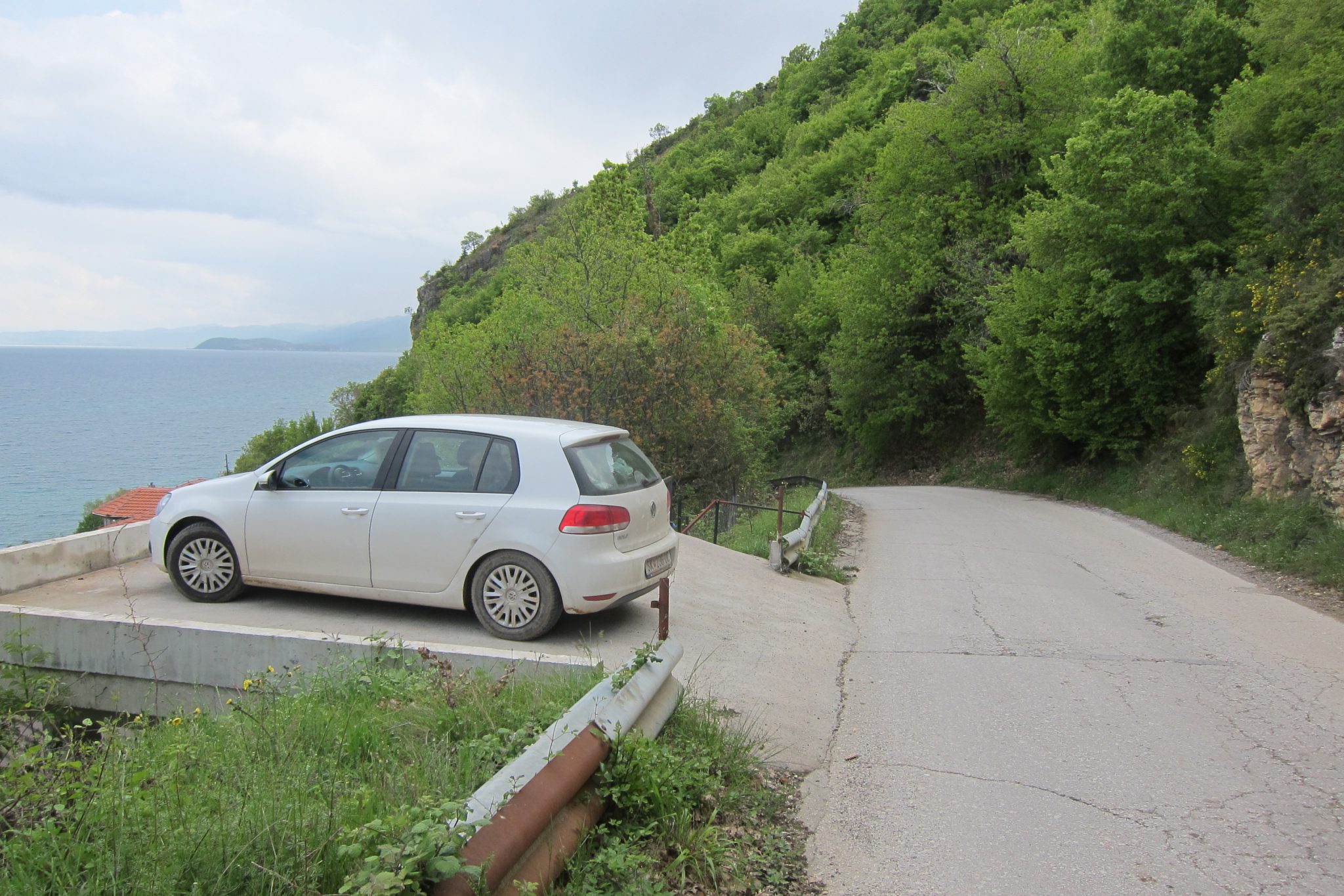 Iebraukuši Maķedonijā, slēpņojam gar lielo robežezeru. Viens slēpnis mums parāda burvīgu, mazu, klintīs izveidotu baznīciņu, kuras atslēgu jājautā vietējā restorāniņā. Pēc baznīcas aplūkošanas, lai arī neesam izsalkuši, nolemjam ieturēties šajā restorānā. Tas atrodas ezera krastā un specializējas uz zivīm. Tā kā esam jau vairākkārt vēlējušies ceļojuma laikā nobaudīt zivis, nospriežam, ka šī būs īstā vieta. Pasūtām divas foreles, mums tās atrāda pirms pagatavošanas. Maltīte ir burvīga – labi pagatavota zivs un brīnišķīgs skats uz ezeru.