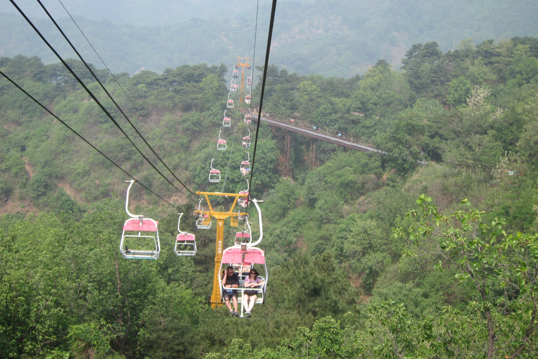 Lejup iespējams doties tāpat kā augšup – ar pacēlāju. Bet ir arī otra iespēja – visu ceļu braukt lejā ar rodeļiem. Nu, kāda runa – jālaiž tik lejā. Lai arī esmu brīdinājusi aiz manis stāvošo ķīnieti, lai šis ietur pauzi, jo es braukšu piesardzīgi, jau pirmajos līkumos dzirdu tuvojamies viņa braucamo un bļāvienus “go, go, faster, faster”. Es viņam pieklājīgi uzbļauju, lai šis ievēro distanci. Beigās norullējam visi lejā aptuveni līdzīgā ātrumā.