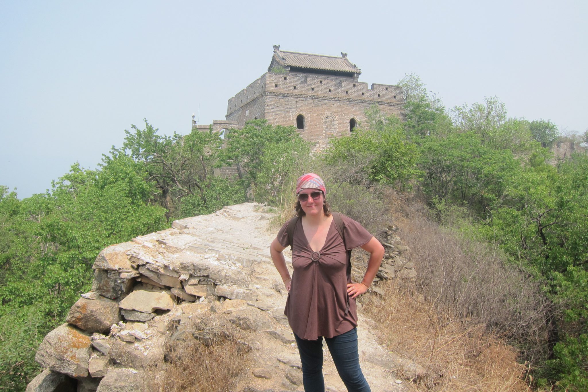 Diena ir nežēlīgi karsta un vairums ekskursantu, es tai skaitā, izvēlas uz kalnā esošo mūri doties ar pacēlāju. Arī pastaiga pa pašu mūri nav nekāda pastaiga. Trepes vijas te augšup, te lejup, vietām pakāpieni ir ļoti stāvi. Sākumā izvēlos doties virzienā, no kura iespējams aplūkot seno mūra daļu. Izrādās, to var ne tikai aplūkot, bet pa to var arī gluži labi pastaigāt, protams, “on your own risk”. Lielākā daļa tūristu šo risku neuzņemas, tāpēc krūmiem aizaugusī pussagruvušā mūra daļa ir diezgan vientuļa. Tomēr priecājos, ka kopā ar mani soļo arī neliela vāciešu-krievu draugu kopa, kas nepieciešamības gadījumā, cerams, pamanītu mani iekrītam kādā bedrē. Iepazīstos ar šiem, kad jaunieši man palūdz viņus nobildēt. Tikmēr daži aizsteidzas uz priekšu, bet citi iepaliek, izveikdami vēl papildus fotosesijas. Kad panāku pirmos soļotājus (kas arī fotografējas), šie mani sagaida ar saucienu: “O, Latvija, tu gan esi ātra!”. Atbildu, ka tas ir tāpēc, ka atšķirībā no viņiem neniekojos ar alu. Pēc šīs frāzes, man pretī pastiepjas trīs rokas ar alus bundžiņām: “Gribi?”. Nē, nē, paldies, pa šīm drupām ejot kaklu var lauzt arī bez alus. “Ai, nu beidz, toties ar alu iet ir daudz relaksējošāk,” puiši oponē. Atstāju šos reklaksējamies un spriņģoju uz priekšu. Tieku līdz vienam no sargtorņiem. Ceļš aizvijas vēl tālāk, bet nolemju pārāk neaizrauties un lēkšoju atpakaļ.