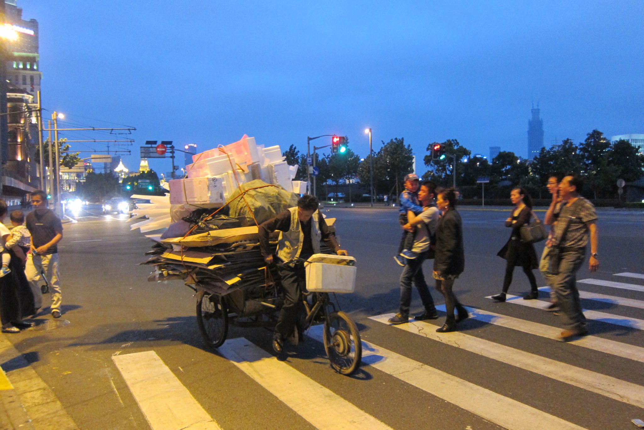 Izpētu karti un nopriecājos – Šanhajas metro līnija no stacijas ved tieši līdz mana hostelim. Izkāpju centrā un izbrīnos – lai arī Šanhaja atrodas uz dienvidiem no Pekinas, šeit ir krietni vēsāks (kas patīkami). Ejot uz hosteli, jau nojaušu, ka Šanhaja man patiks stipri labāk par Pekinu. Šauras ieliņas, daudz mazu veikaliņu, darbnīcu un ēstuvju, uz katra stūra tiek tirgoti augļi
