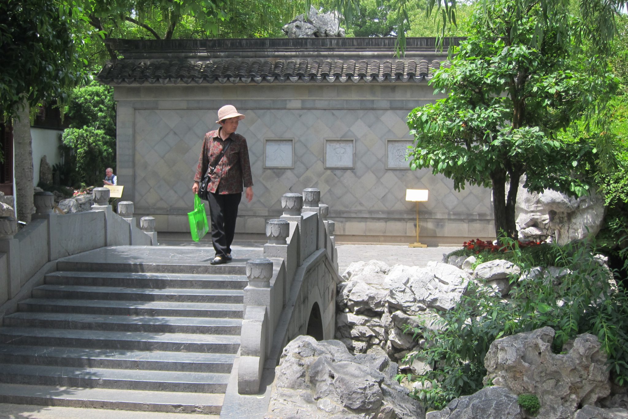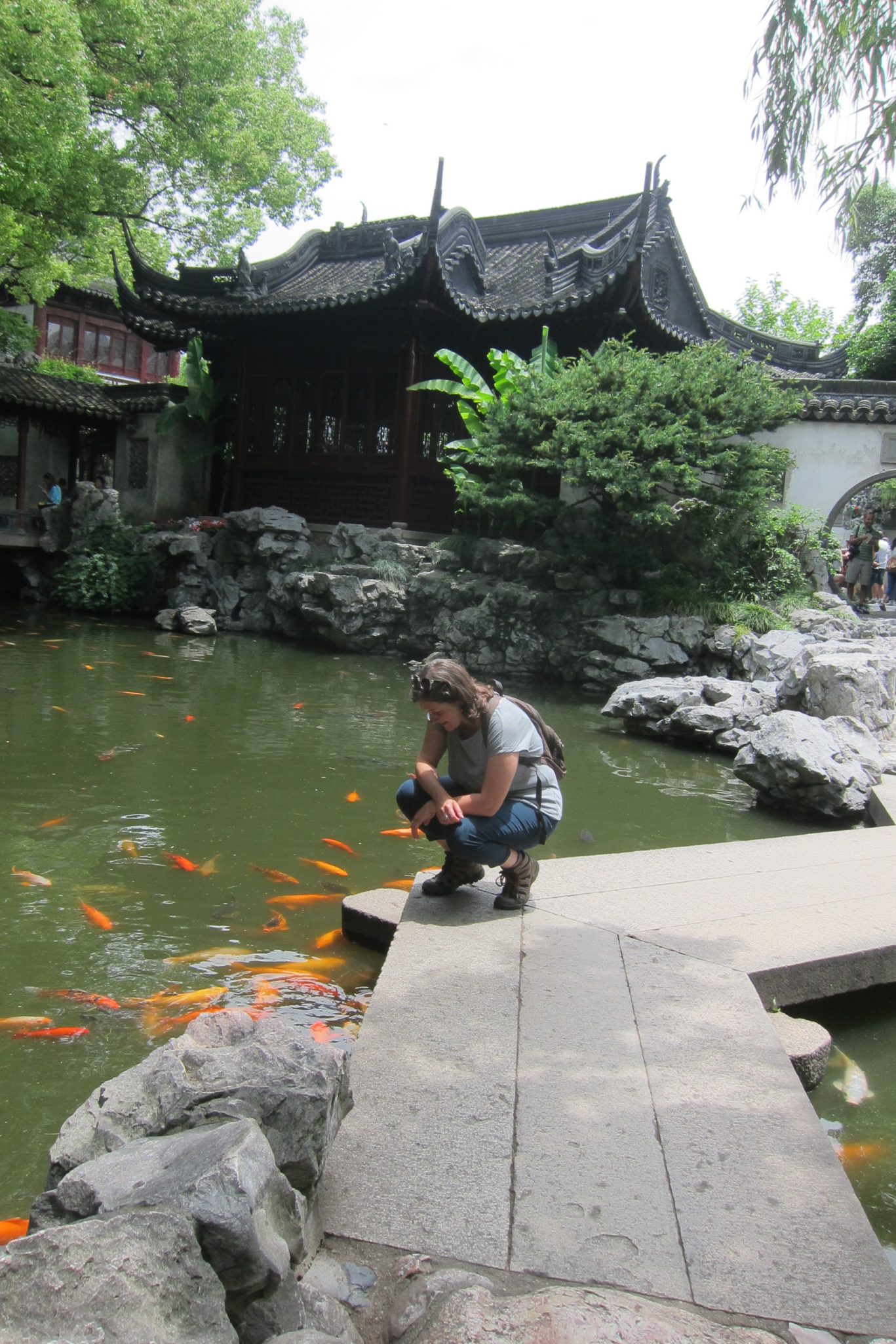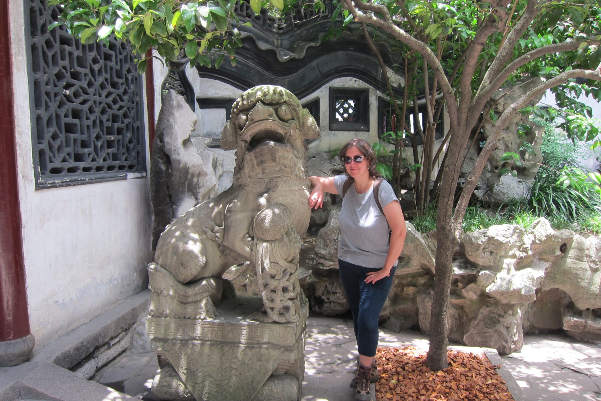 Pekinā satiktais šveicietis Patriks arī ir ieradies Šanhajā un nolemjam šodien pilsētu apskatīt kopā. Sākam ar vizīti vecpilsētā – lai arī es tur vakar jau esmu bijusi, ierados pārāk vēlu, lai aplūkotu slaveno turienes dārzu, tāpēc jāsāk ar to. No ārpuses teritorija, ko ierobežo mūra siena, izskatās neliela, bet, kad tiek iekšā, tad daudzie namiņi, šaurie tiltiņi un akmeņainās ejas rada pavisam citu – daudz plašāku iespaidu. Ir vairāki plusi situācijai, kad esi kopā ar kādu – viens no tiem – var tikt pie salīdzinoši jēdzīgām bildēm ar sevi. Protams, vienmēr var taisīt resnās rokas bildes jeb pašiņus, var palūgt šo darbu izveikt kādam garāmgājējam. Bet mana pieredze rāda, ka liela daļa cilvēku ir stipri “uz jūs” ar fotografēšanu un rezultātā vari iegūt šķībi greizas un/vai pārgaismotas bildes. Patriks šai ziņā ir labs atradums – vairums viņa uzņemto bilžu ir jēdzīgas.