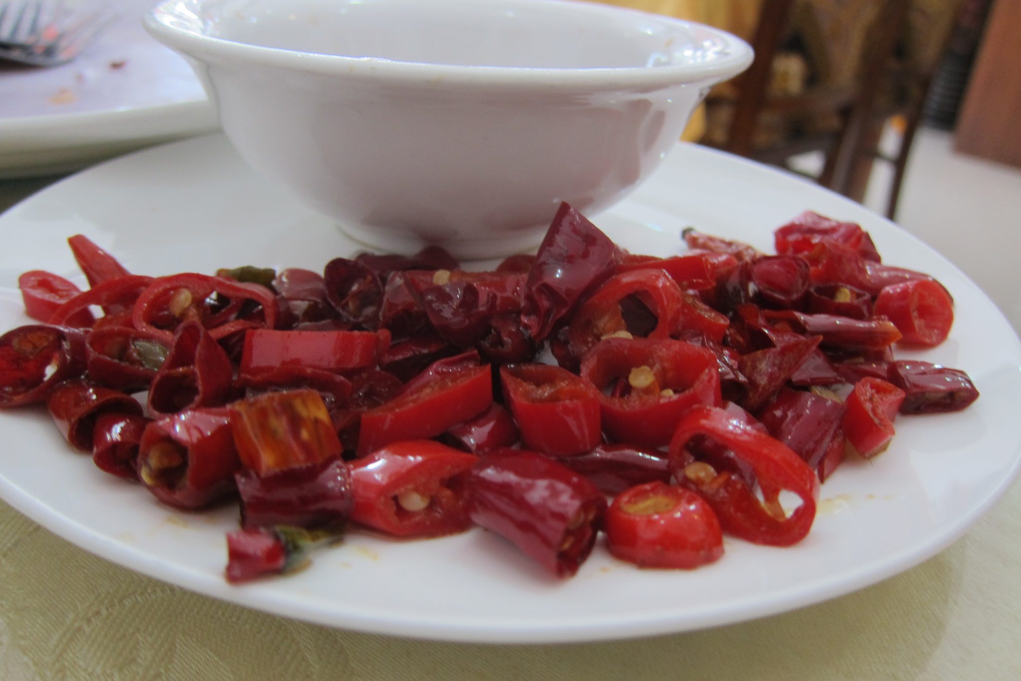 Tā kā neesam ēduši brokastis, bet jau ir pusdienlaiks, meklējam vietiņu, lai ieturētos. Es iebakstu ēdienkartē, pasūtot dārzeņus ar gaļu, Patriks izvēlas zupu un springroļus. Lai arī viņš savu izvēli ir izdarījis, iebakstot ar pirktu pie attiecīgajiem ēdieniem, jauns apkalpotājs ierunā kādu frāzi ķīniešu valodā mobilajā telefonā un tad atskaņo mums tulkojumu. “What do you want?”, seksīgā elektroniskā balsī vaicā sieviete no telefona. Mēs saskatāmies ar neizpratni, kas mijas ar jautrību. Patriks vēlreiz iebaksta ēdienkartē, izskatās, ka ar otro reizi apkalpotājam pielec. Patrikam atnes milzīgu zupas šķīvi, bet man atnes ēdienu, kurā vienu trešdaļu aizņem sarkani čili piparu gabaliņi. Ēdu un raudu. Vienīgā doma, kas mierina, ka šis pasākums palīdzēs man cīņā ar iesnām – tā arī ir, deguns tek vēl jestrāk kā pirms tam.
