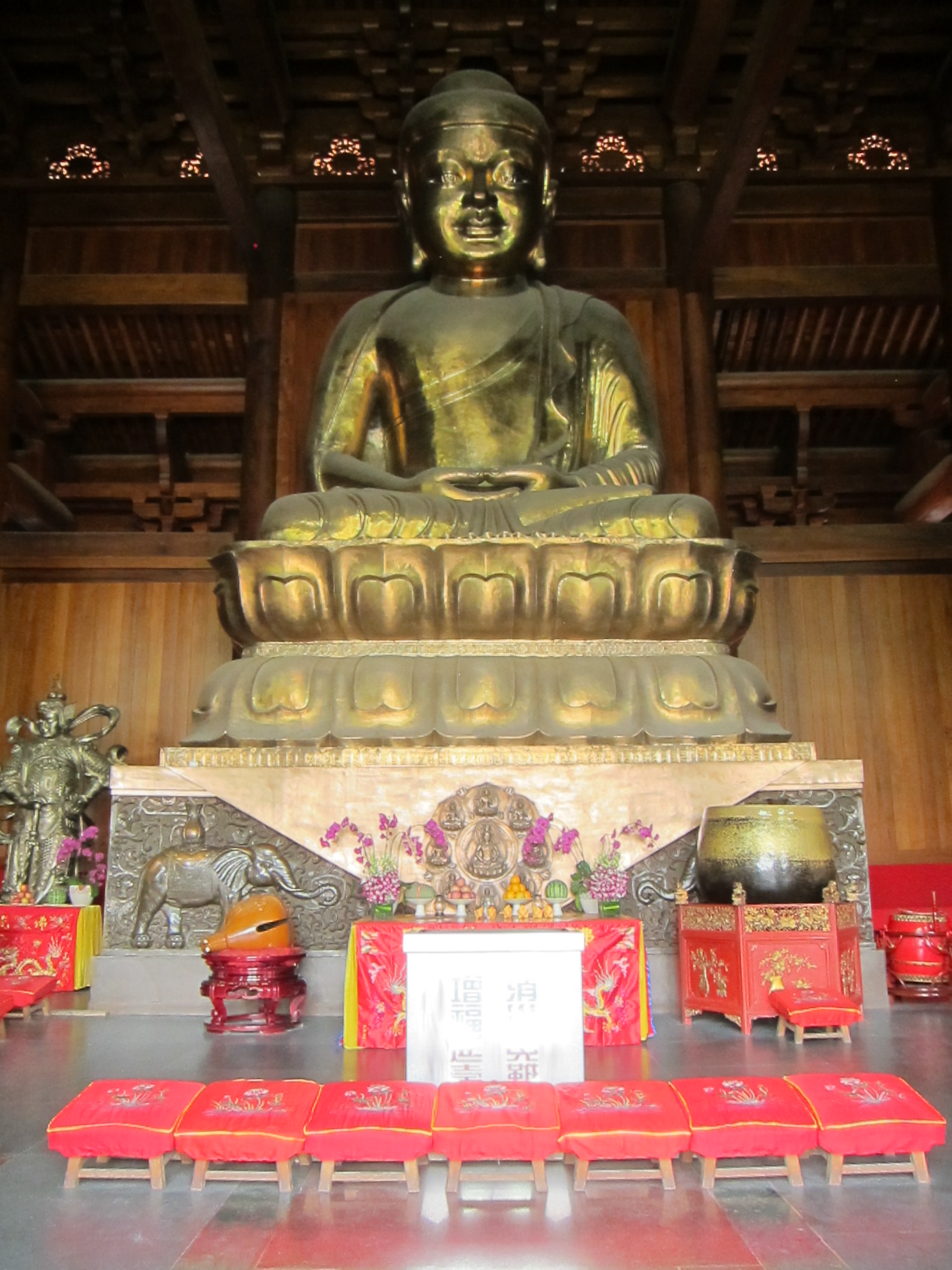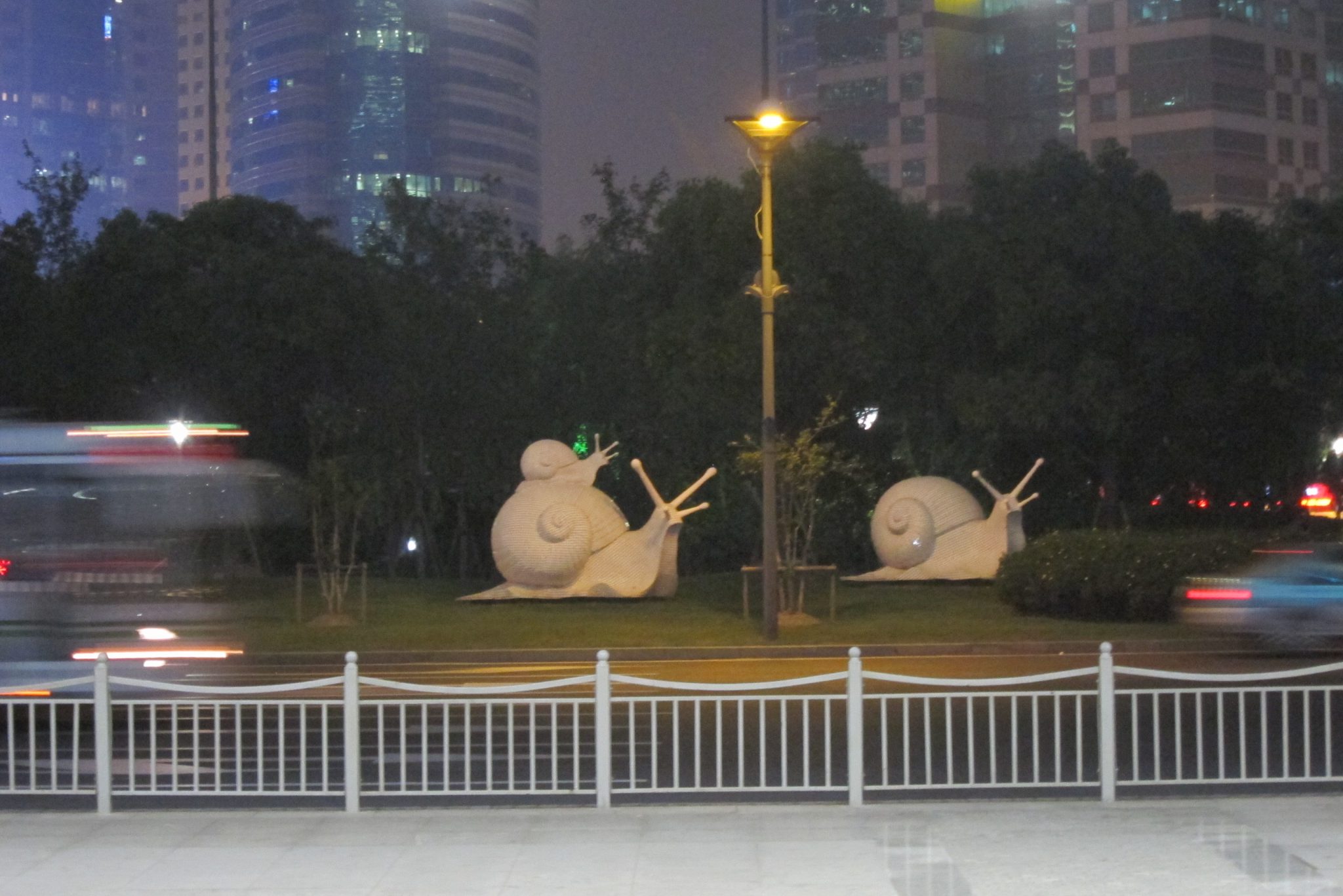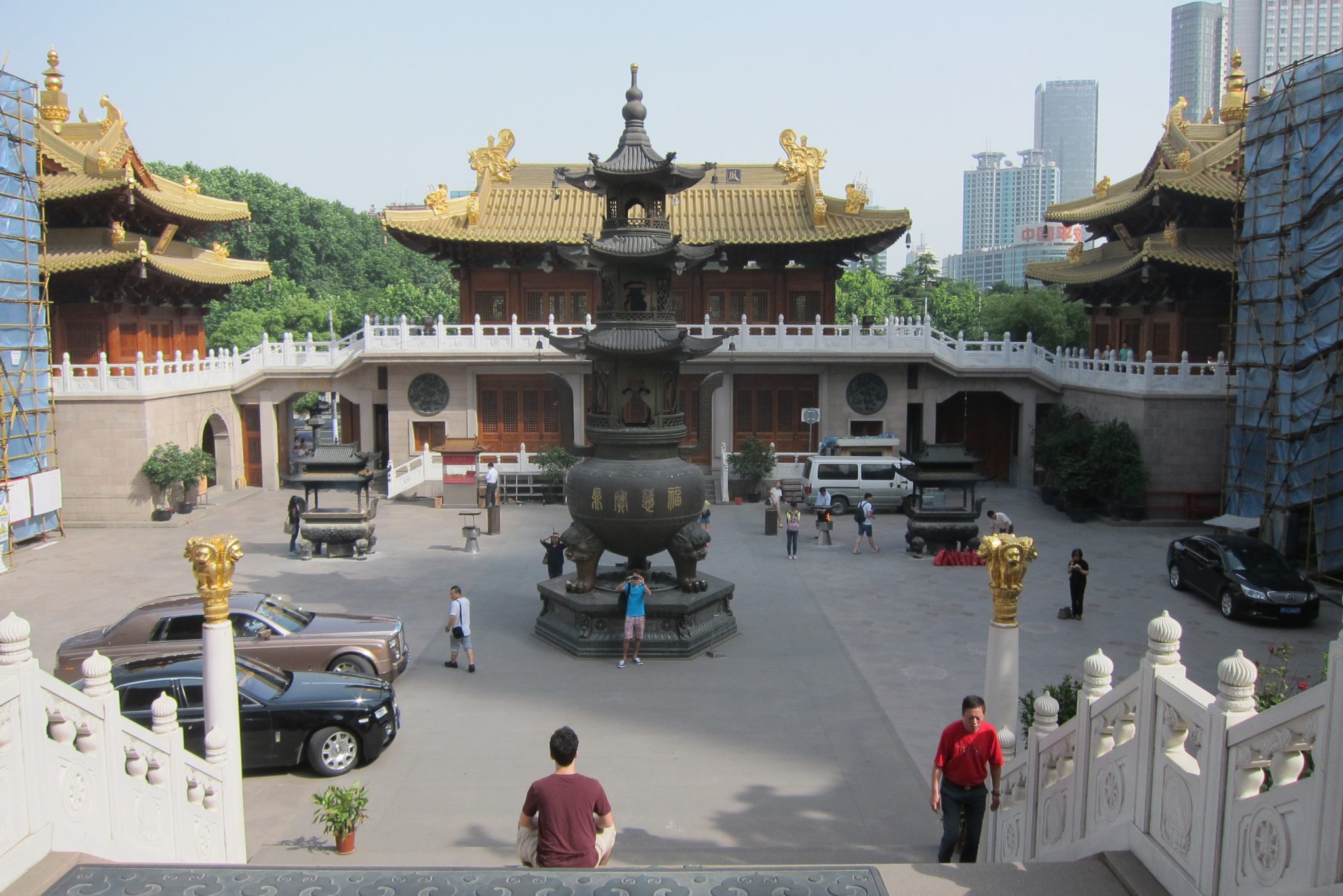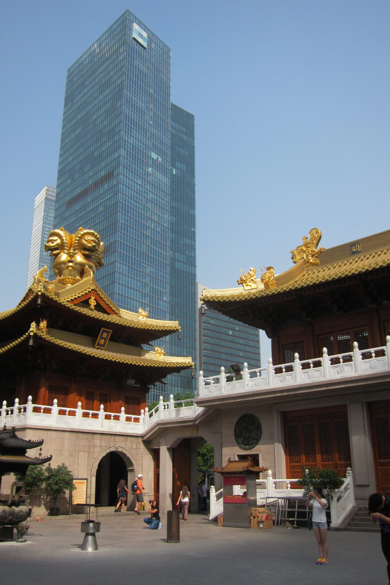Dažu metro staciju attālumā atrodas varens budistu templis, kas piekvēpināts ar vīraku un pilns ar dažādām skulptūrām. Senā koka ēka sadzīvo ar moderniem kaimiņiem – debesskrāpjiem. Pēc tempļa mūsu ceļš ved tieši pie tiem – braucam uz debesskrāpju galveno mītni Šanhajā – Pudunu. Vēl 20. gadsimta vidū tā esot bijusi pilsētas nabadzīgākā daļa, bet saņemot īpašas ekonomiskās zonas statusu 1990. gadā, tā strauji kļuvusi par pilsētas modernāko rajonu. 2008. gadā tur uzcelts Šanhajas Pasaules Finanšu centrs, kura augstums ir 460 metri un tajā atrodas visaugstāk pasaulē iekārtotā viesnīca un skatu laukums. Var jau būt, ka tagad Dubaija ir šo pārsitusi, nezinu. Iespēju pastaigāties vairāk kā 400 metru augstumā virs zemes nevar laist garām un mēs nepažēlojam 180 juaņas, lai apskatītu Šanhaju no augšas. Dienasgaismā skats ir varens, bet nav diez ko tīkams – smoga dēļ horizonts ir diezgan tuvu. Vispār skats uz pelēkajā dūmakā tītajiem debesskrāpjiem izskatās pēc pasaules gala ainiņas – diezgan drūmi. Ja jau esam tādu naudu iztērējuši, nolemjam sagaidīt arī vakaru, kad ieslēgsies pilsētas apgaismojums. Neba mēs vienīgie lolojam šādu ideju – drīz vien visos skatu laukuma stūros vērojami sasēduši cilvēki, kas nosit laiku kā nu mācēdami. Es studēju līdzpaņemto Ķīnas ceļvedi un, veroties daudzajos dabas skatos, mani pārņem vēlme pēc iespējas drīzāk pazust no šīs pārmērīgās civilizācijas. Nolemju doties prom jau rīt.