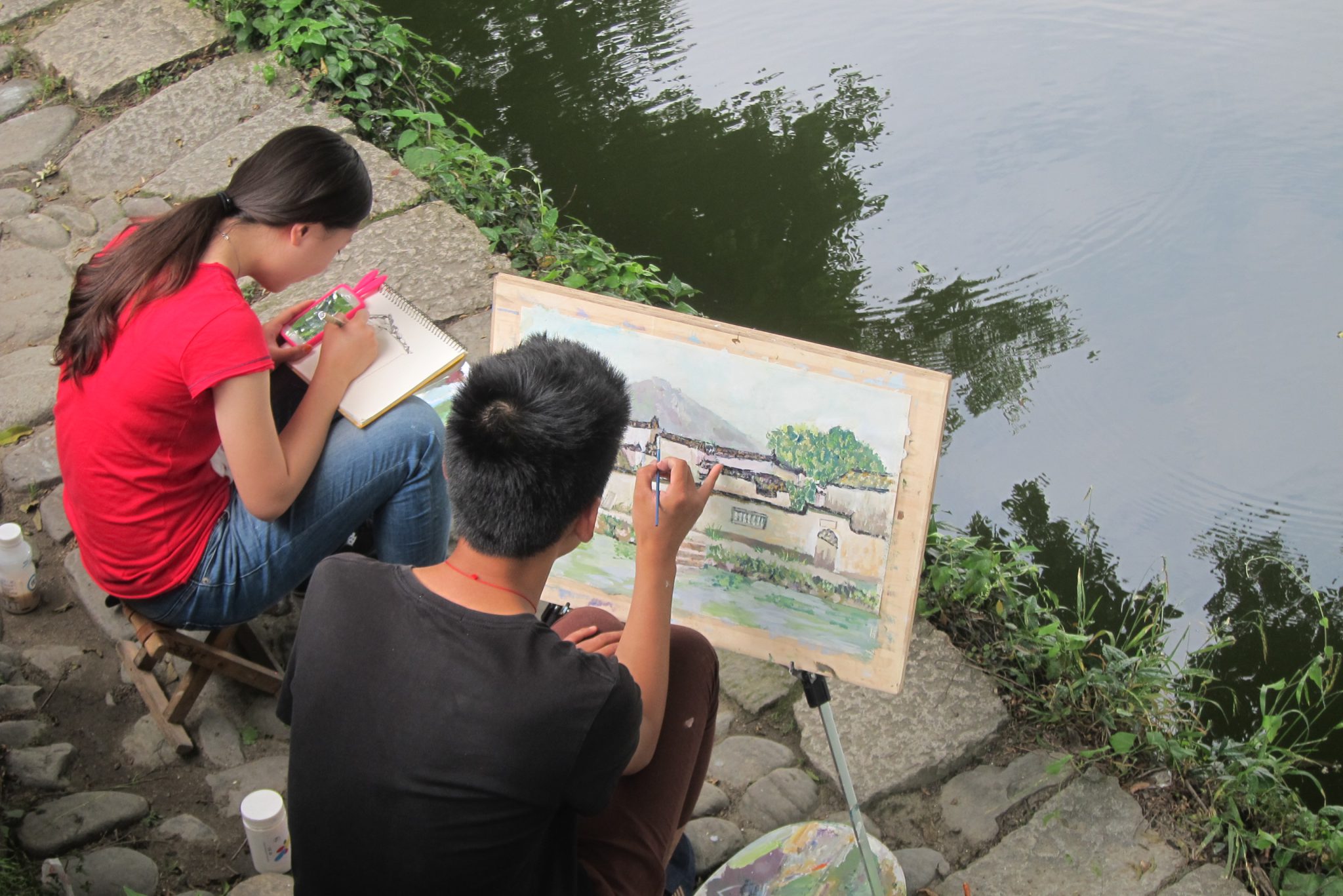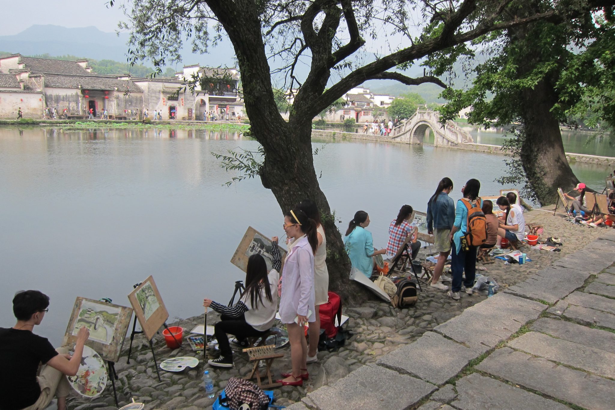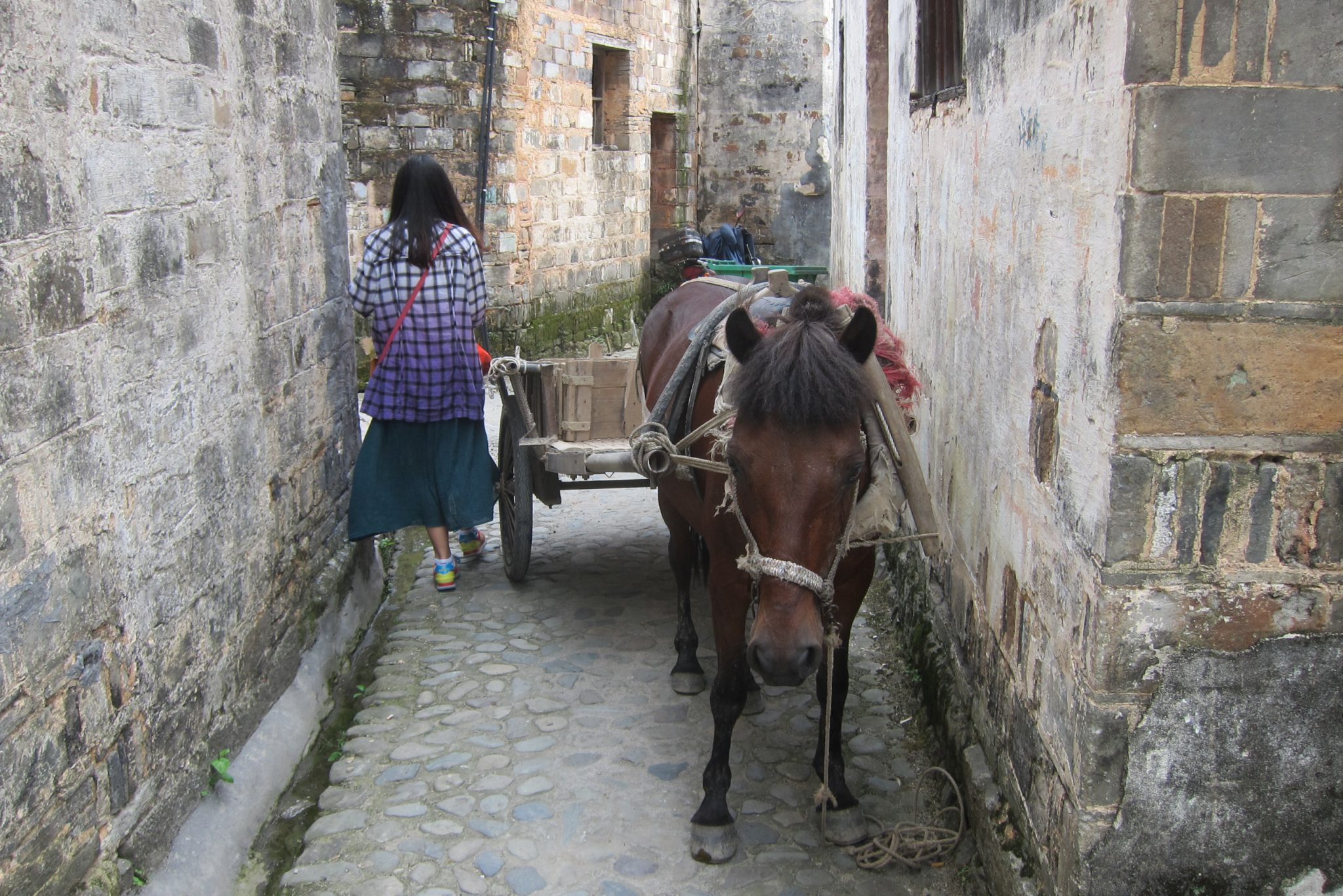 Izkāpjot no busa, sāku komunicēt ar meiteni, kas man paskaidroja par šejienes vēsturiskajām vērtībām. Rezultātā ejam tās iepazīt kopā. Mija ir nesen juristus beigusi jauniete no Šanhajas, kas šeit atbraukusi brīvdienās. Viņa salīdzinoši labi runā angliski un ir man lielisks palīgs, kad gribu ko nopirkt vai paprasīt. Arī par atpakaļceļa autobusa atrašanu man tagad galva nesāp. Apskatām senās ēkas, templi, nopērkam pāris klozītes un pat nosūtām pastkartes (ak, šis lipīgais balkāniešu paradums). Cilvēks, kuram to sūtu, nekad neuzminēs, no kā tā ir :).