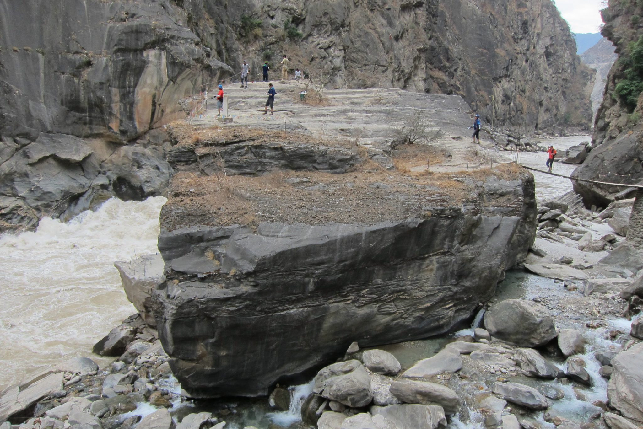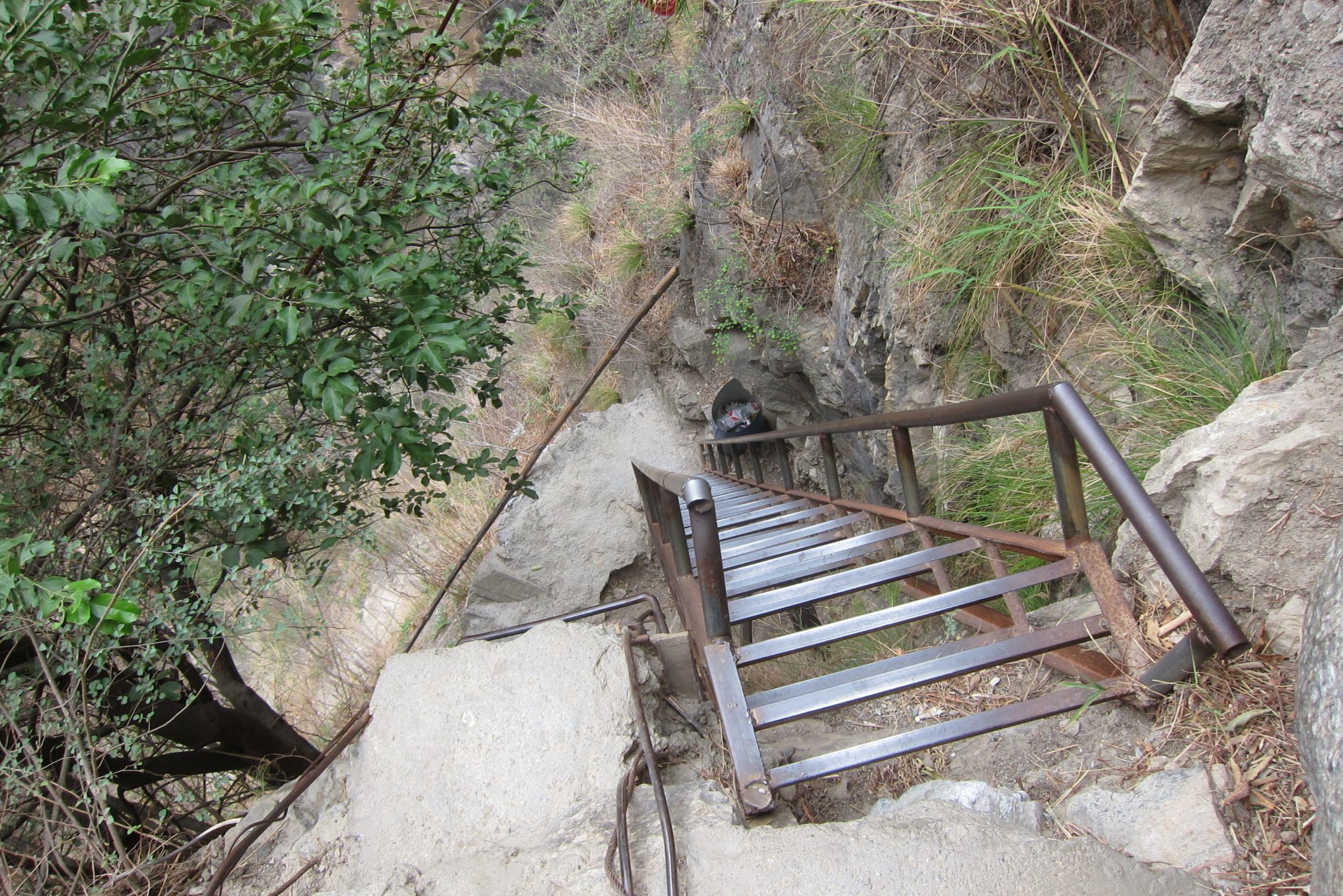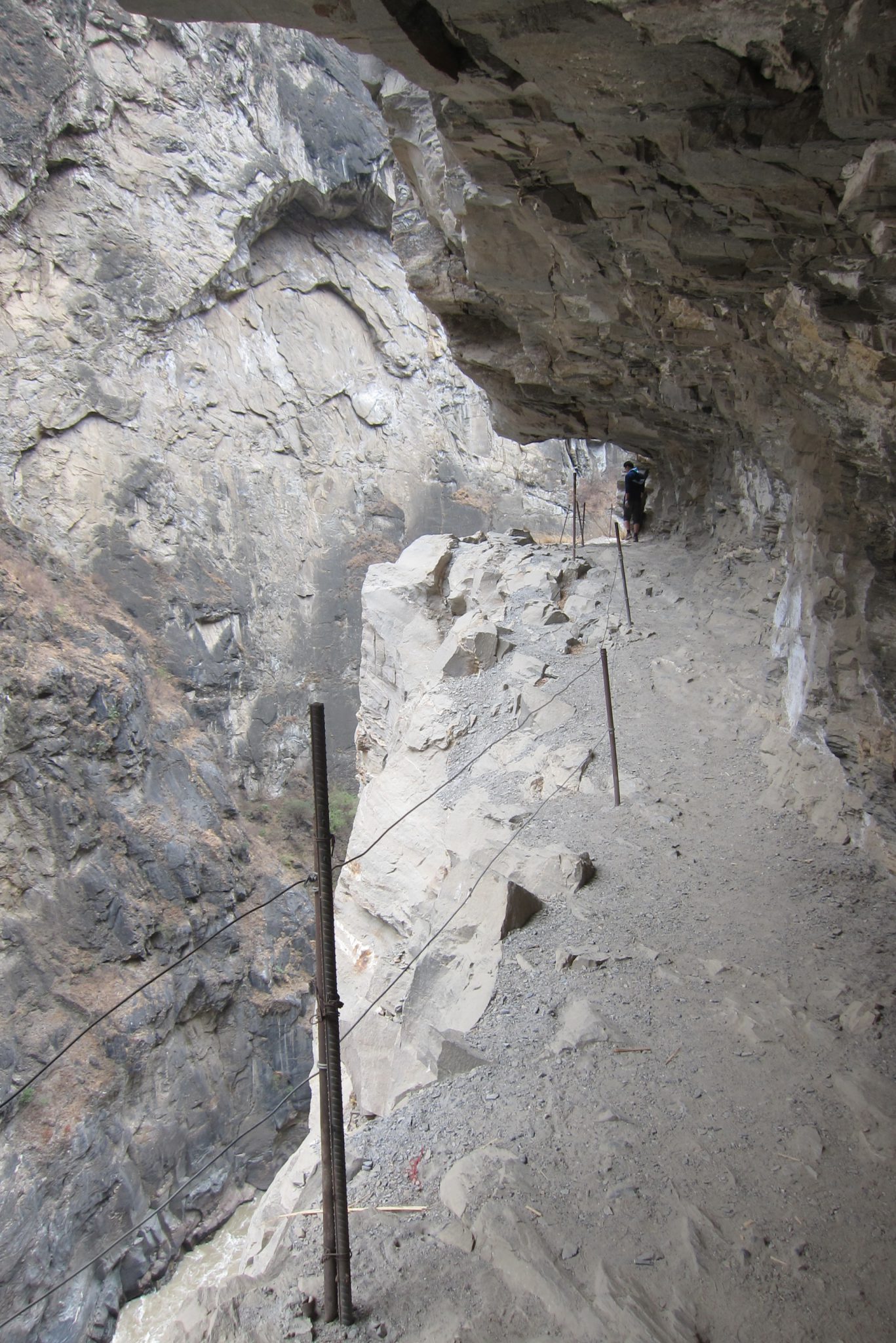 Samaksājusi 10 juaņas (šeit vietējie bieži prasa naudu par tūrisma objektu iekārtošanu un/vai uzturēšanu), dodos lejup. Sākumā jākāpj pa akmeņainām kāpnēm, tad stāvām kāpnēm, tad jātiek lejā pa pakāpieniem teju vertikālā klintī, pieturoties pie radzēm, puļķiem un trosēm. Visu laiku neliek mierā doma – kā es šeit tikšu atpakaļ. Nu gan jau kaut kā – ar mieru un pīpēšanu.