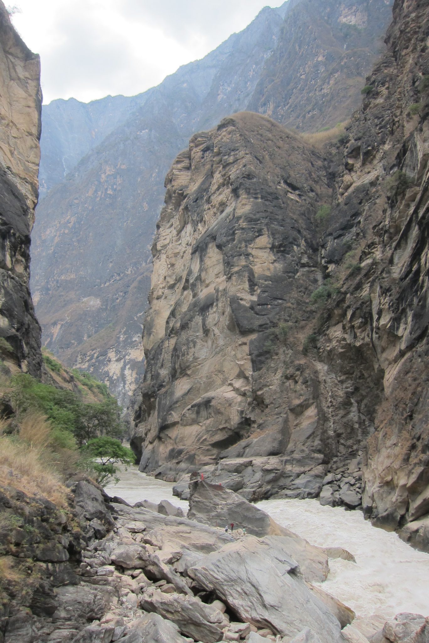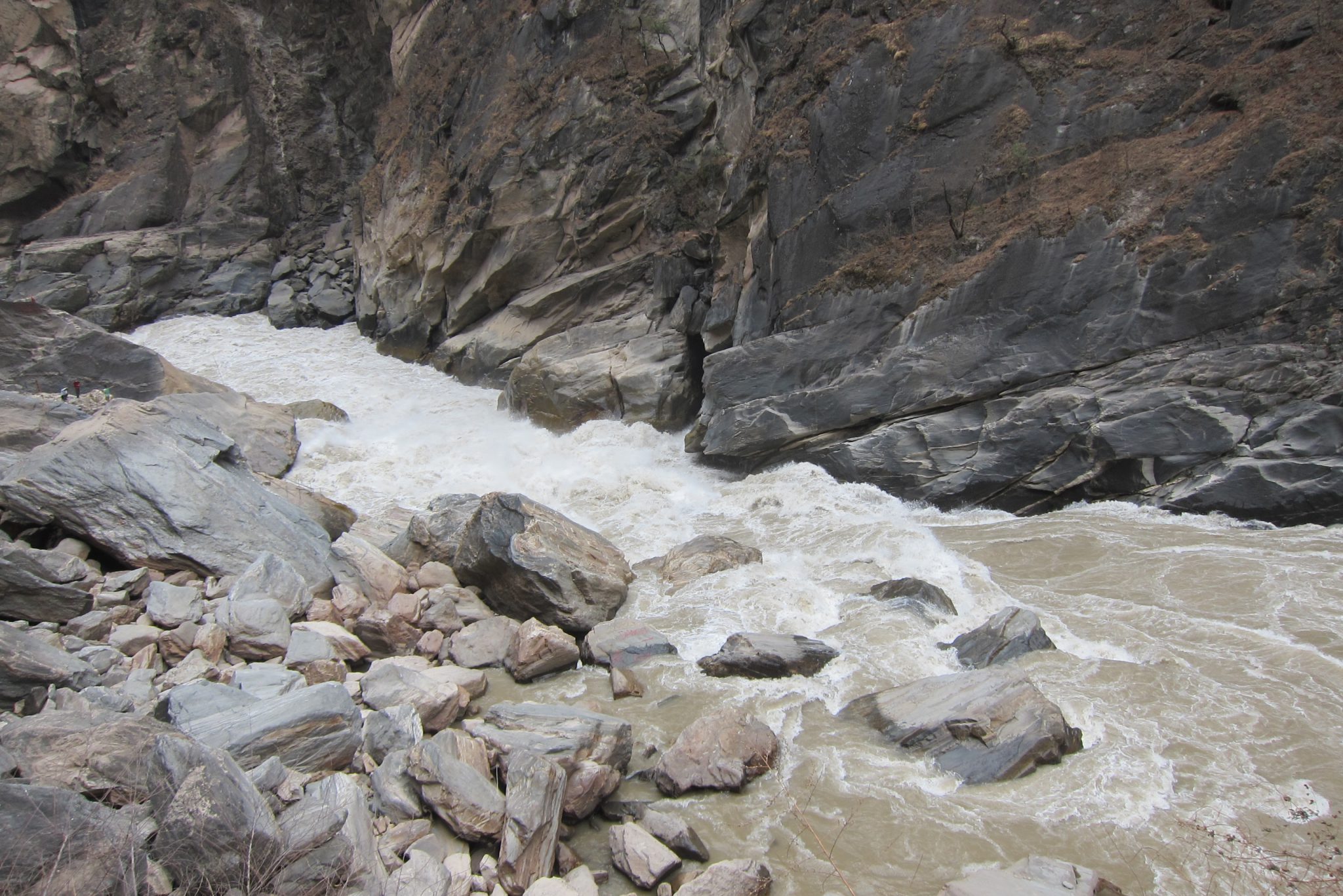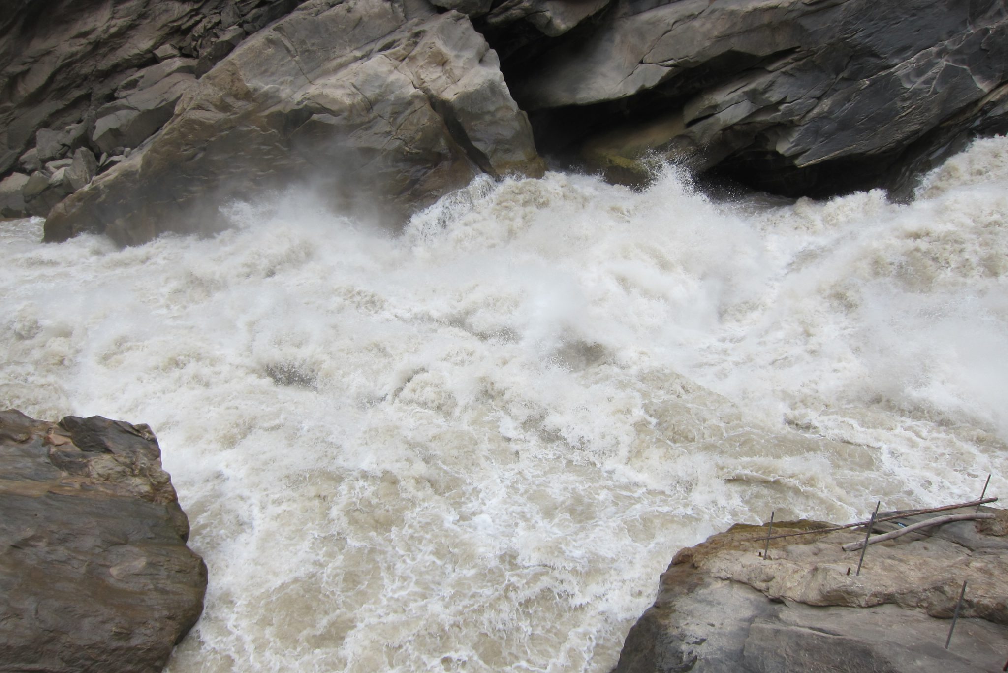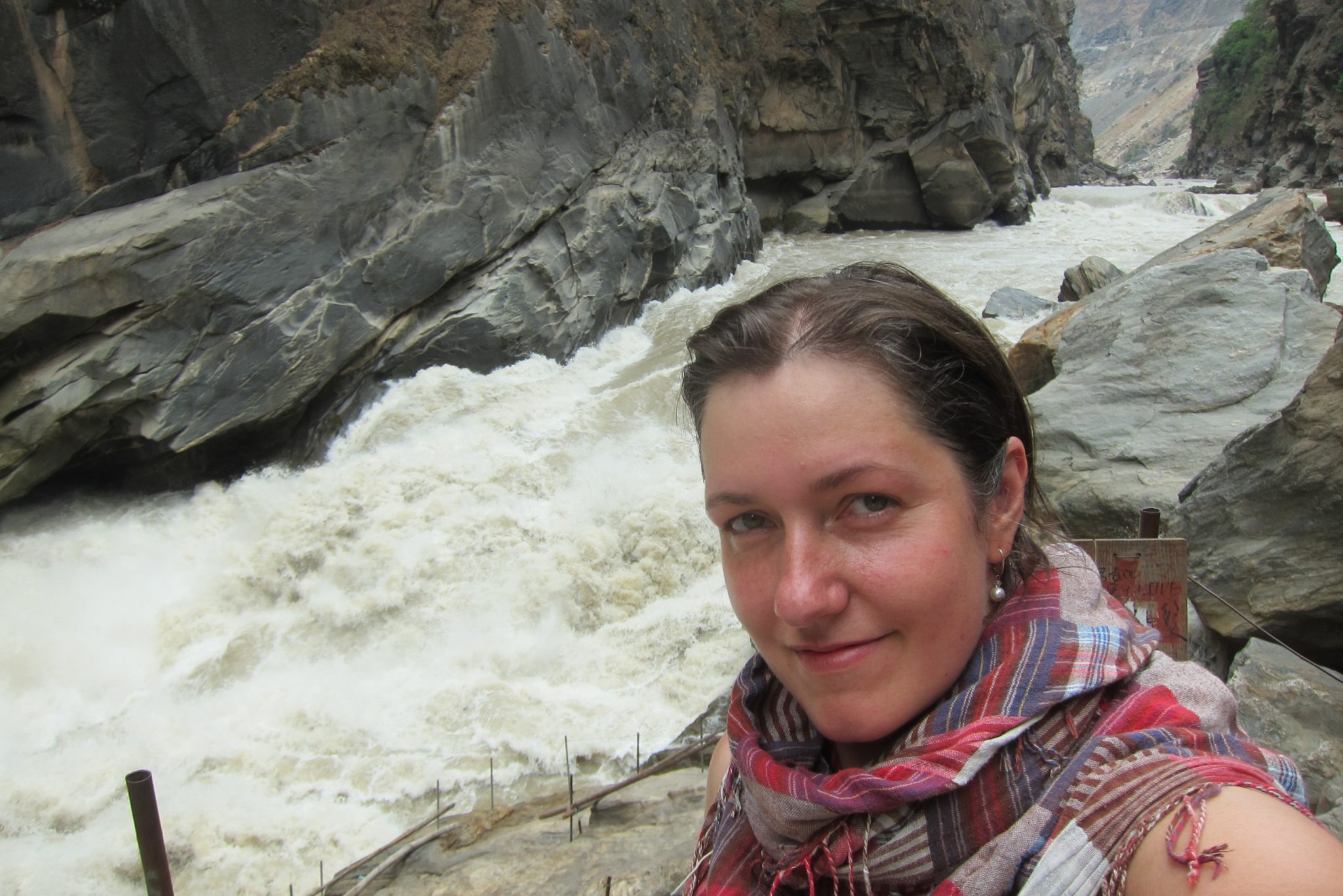 Beidzot esmu tikusi līdz upei un jāatzīst, ka skats ir kāpiena vērts. Spēcīgā straume met mutuļus, sitas pret klintīm un gāžas uz priekšu ar varenu jaudu. Upē vietu atraduši milzu akmeņi, uz kuriem ved vietējo iedzīvotāju uzbūvēti tiltiņi. Kamēr es vēl tikai raušos tuvāk upes akmeņiem, satieku kādu zilacainu blondīnu, kas dod man padomu, pa kuriem akmeņiem labāk tikt uz priekšu, kā arī pastāsta, ka pēc neliela gabaliņa esot cita taka, kas ved augšā kalnā un kas esot stipri lēzenāka nekā tā, pa kuru esmu nonākusi šeit.