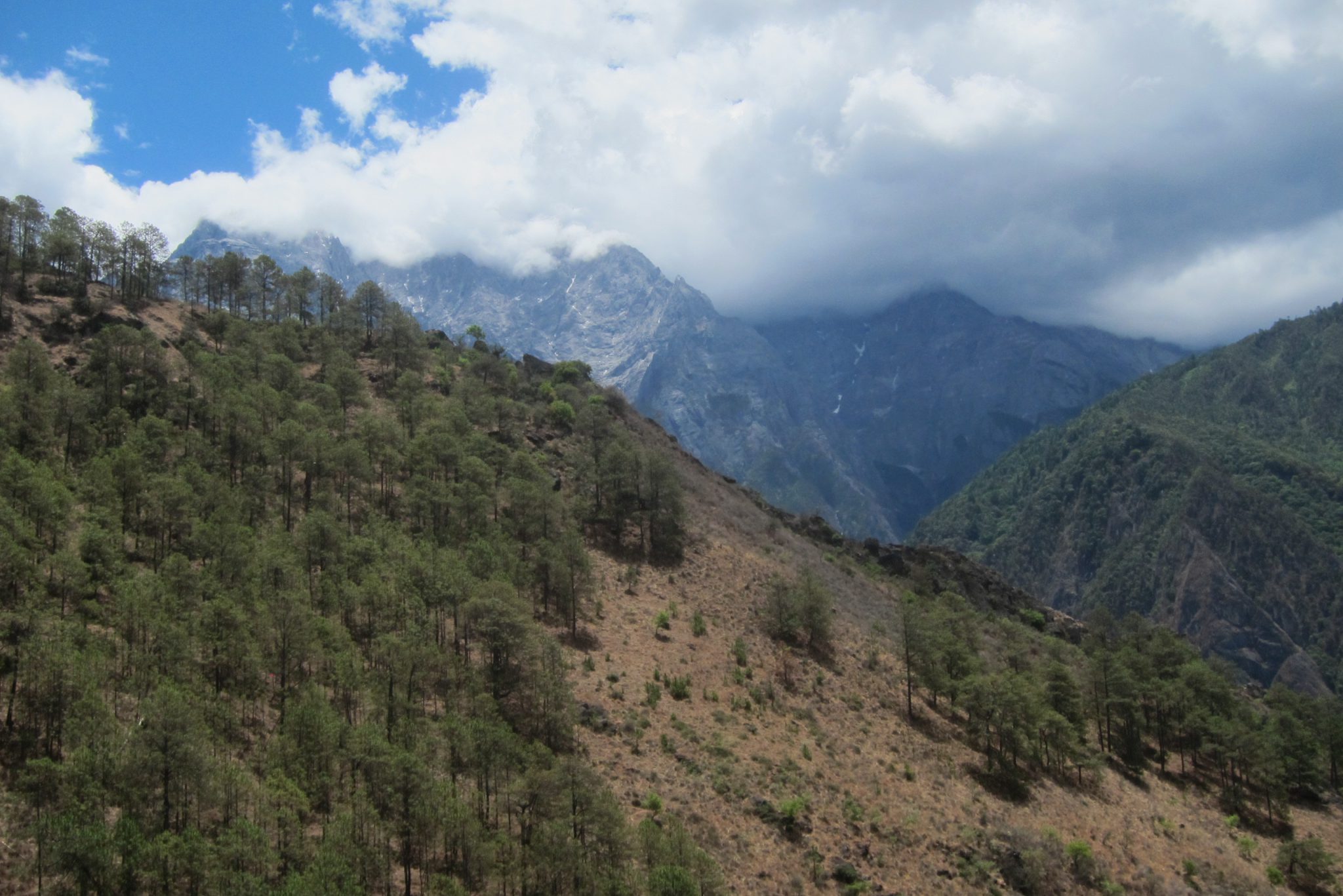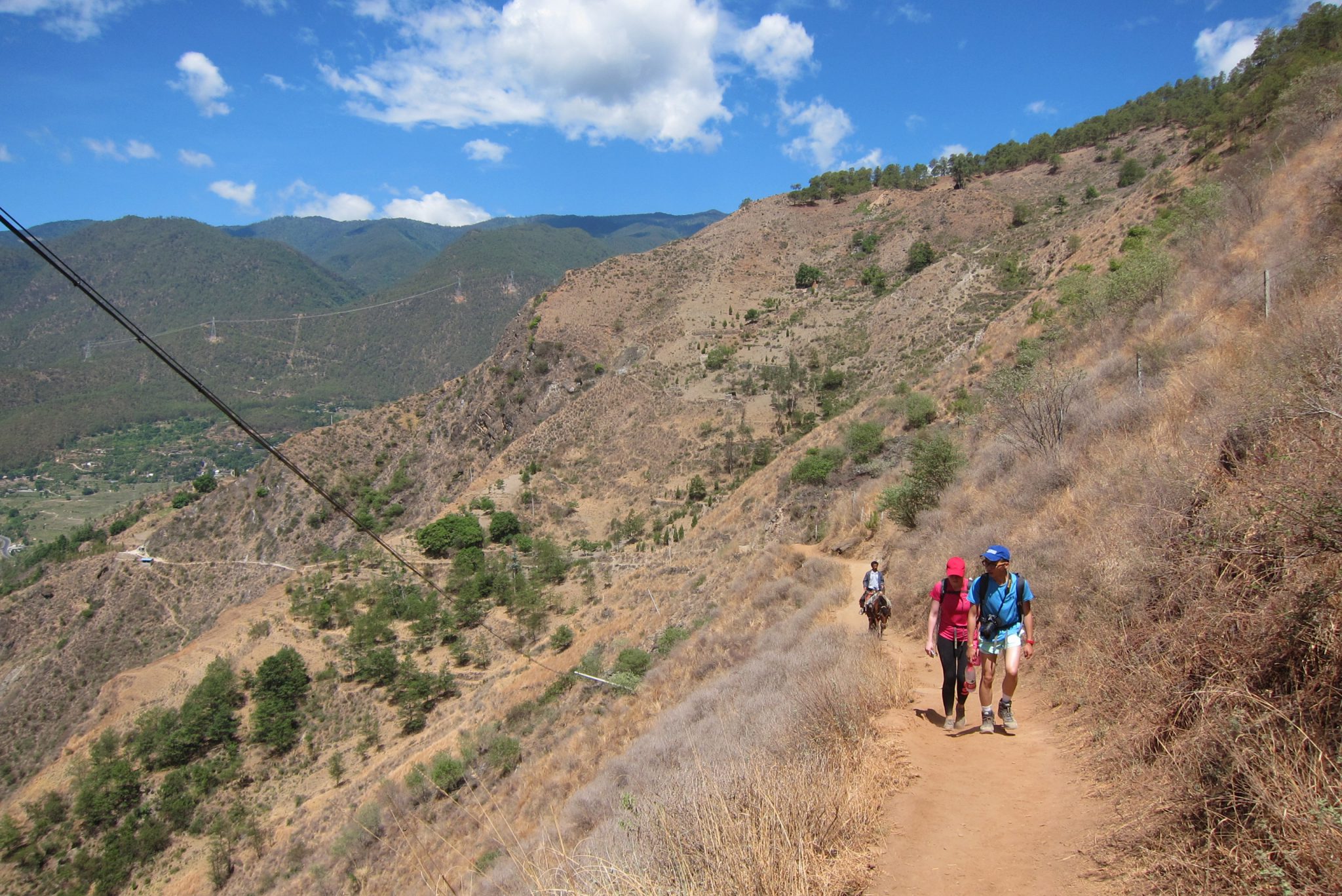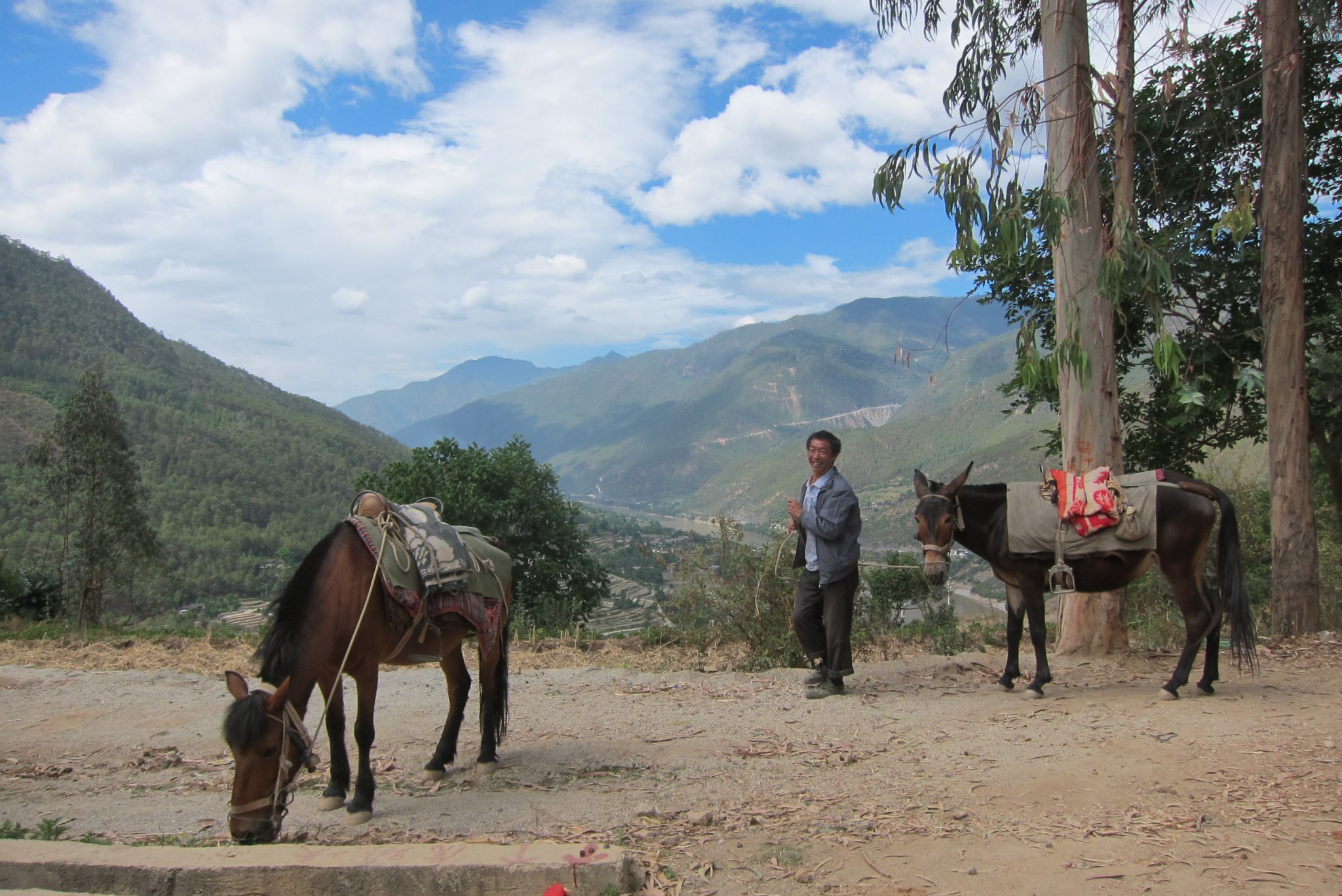 Pēc vairāku stundu kratīšanās, autobuss mūs izlaiž takas sākumā un visi sākam kāpt. Sākumā ceļš ir diezgan lēzens un plats, iešana lielas grūtības nesagādā. Pamazītēm tas top šaurāks un stāvāks. Brīdī, kad ceļš pārvēršas kalnu takā, pie tā mazā laukumiņā dežūrē vīrs ar mūļiem un piedāvā savus pakalpojumus. Joka pēc lūdzam Čongu noskaidrot, cik maksā doties ceļā ar to. Brīdi aprunājies Čongs paziņo, ka 6-7 tūkstošus juaņu. Ko? Vai šis prātu izkūkojis? Par vienu pārgājienu? Tad noskaidrojas pārpratums – Čongs esot noskaidrojis, cik maksātu nopirkt mūli, izjāde maksā 200 juaņas. Lai arī neplānojam ne pirkt dzīvnieku, ne jāt uz tā, vīrs no mums neatstājas. Tā kā man iet vislēnāk, tad piedzīvoju diezgan kaitinošu pasākumu – ja tu apstājies, lai atvilktu elpu, vīrs, kurš sēž uz viena mūļa, bet pie rokas ved otru, apstājas dažus metrus aiz tevis, rāda uz mūli un saka “zirgs”. Aicinājums ir nepārprotams.