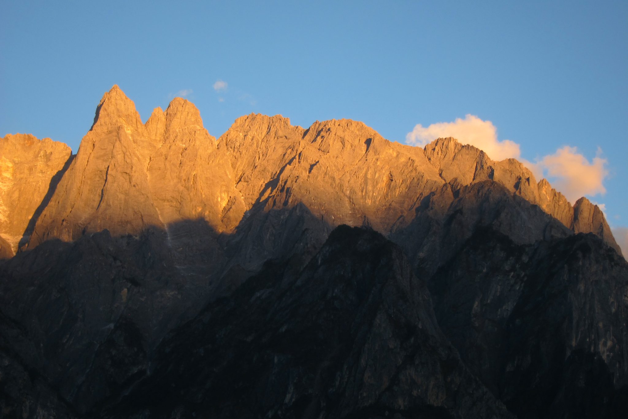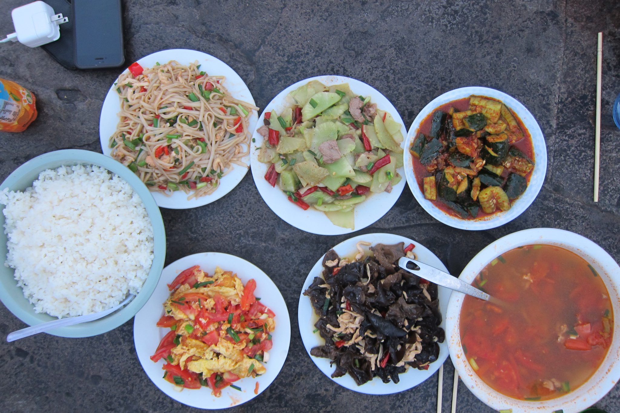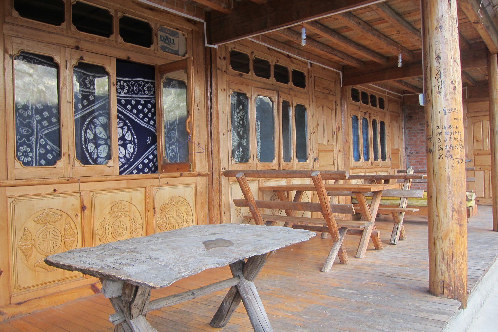 Kamēr rezervēju gultasvietu, klāt ir arī pārējie. Iekārtojušies un iegājuši dušā, atkal satiekamies uz vakariņām. Sēžam uz jumta terases un pasūtām kopīgus ēdienus – tā pamatā Ķīnā pieņemts. Viss tiek salikts uz šķīvjiem galda vidū un tad katrs ņem ko un cik vēlas. Čongs ar Sesilu aiziet pasūtīt ēdienu, mēs ar Juhanu paliekam uz terases pļāpāt un konstatējam, cik ērti ir ceļot kopā ar ķīnieti, kurš runā angliski. Drīz atgriežas Sesila un paziņo: “Ja jūs zinātu, cik ātri var pasūtīt ēdienu, ja pie rokas ir ķīnietis.” Mēs ar Juhanu smejamies un sakām, ka tieši tikko konstatējām to pašu. Drīz klāt ir daudzie šķīvji un bļodas, un mēs metamies virsū ēdienam. Saule lēnām pazūd aiz kalniem un, kad esam pavakariņojuši, parādās pirmās zvaigznes. Lai arī Kristīna stāstīja, ka zvaigznes šeit ir pavisam īpašas, nogurums ir spēcīgāks. Mēs ar Čongu dodamies uz kopmītnēm, zviedru pāris uz savu istabiņu. Palienu zem segas un trīcu kā apšu lapa – ķermenis revanšējas par šodienas pārslodzi. Tomēr pat tas nav šķērslis miegam – lai arī ir tikai deviņi vakarā, drīzi vien jau esmu aizmigusi.