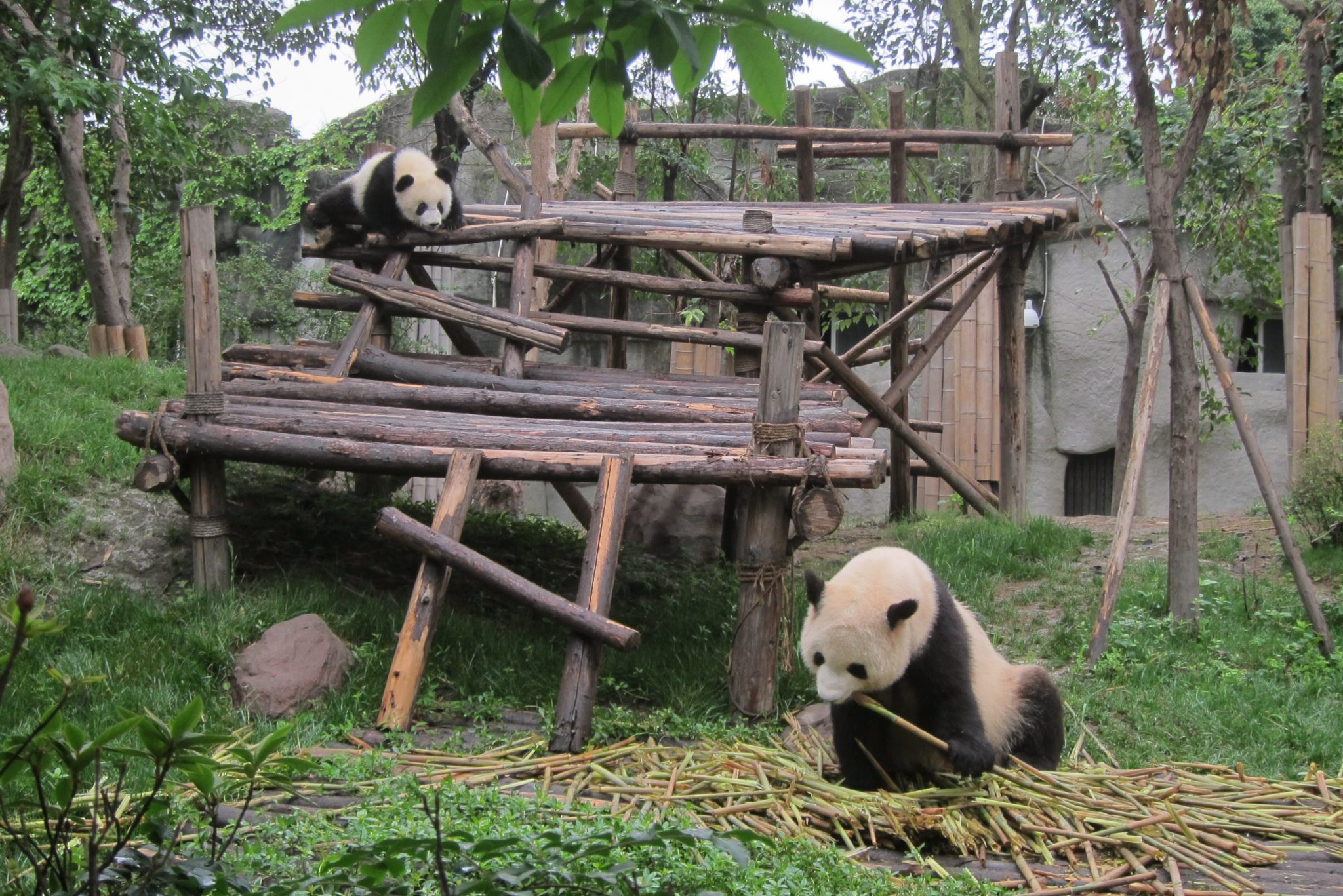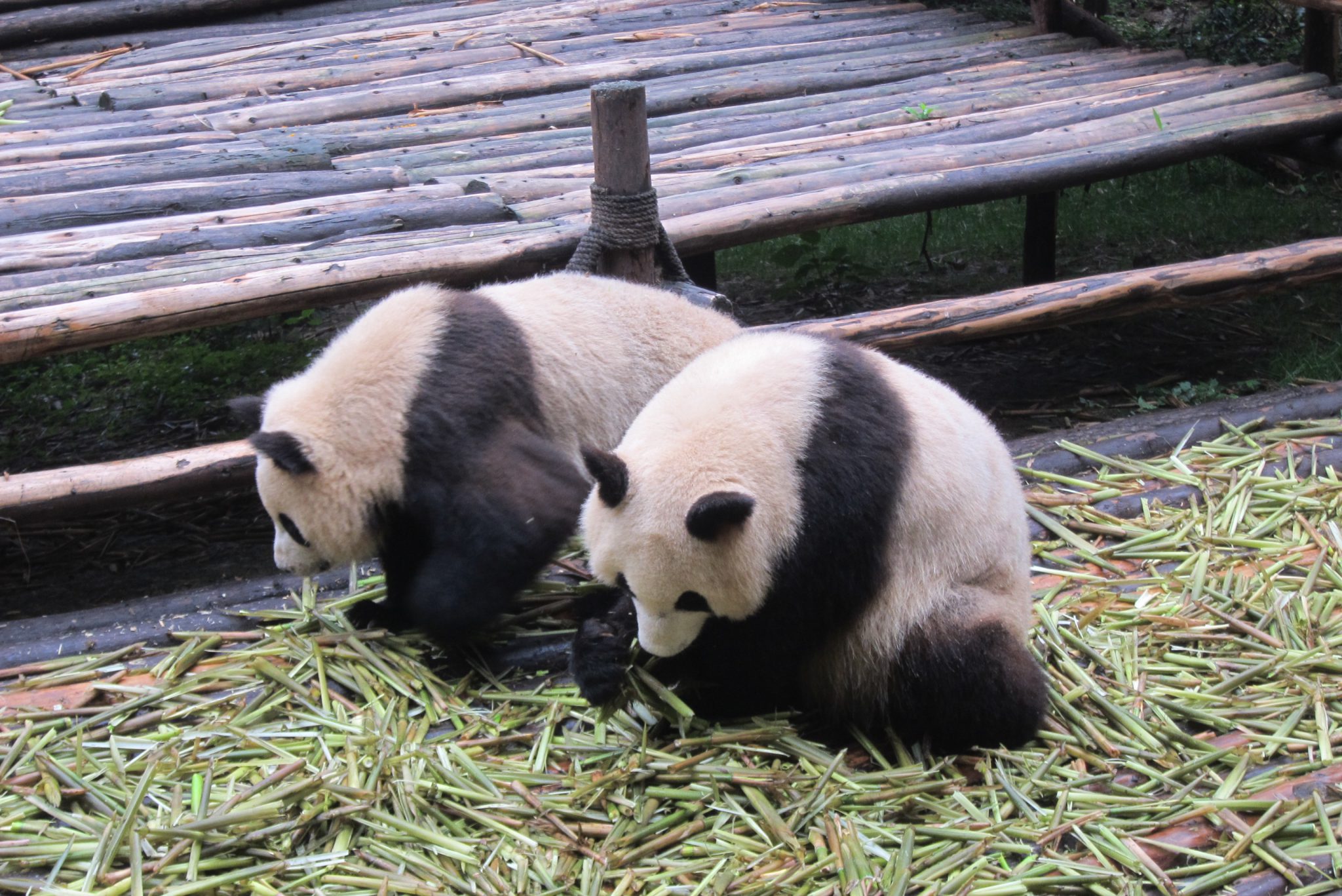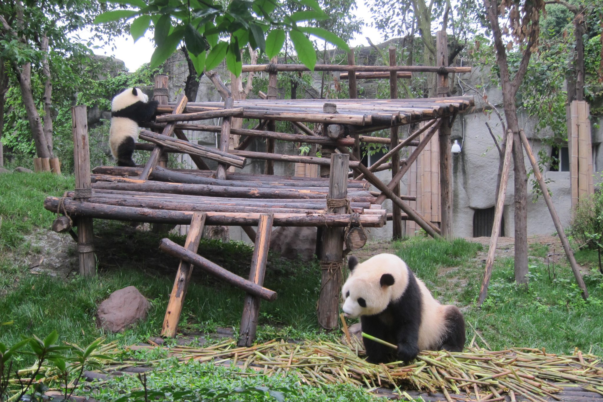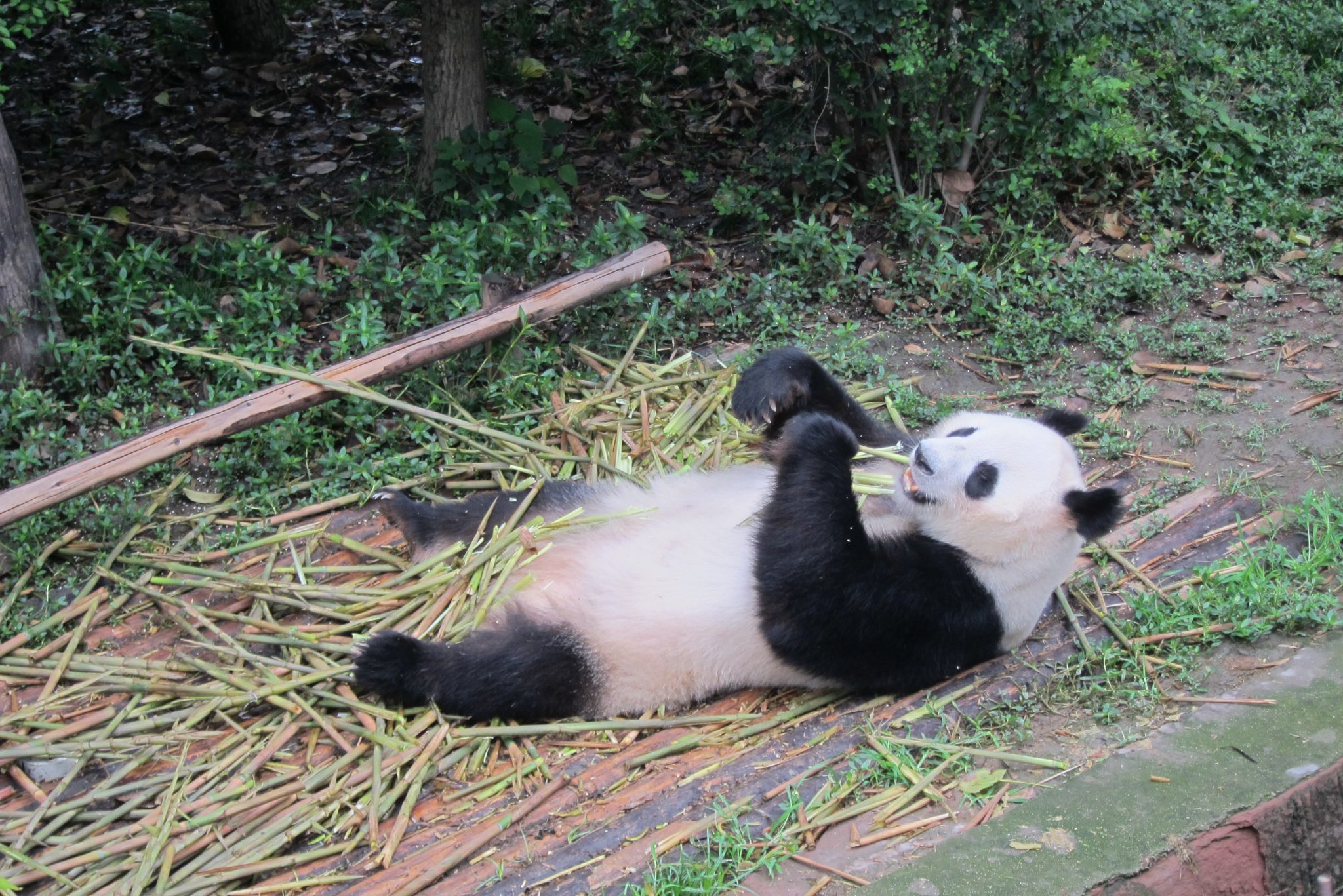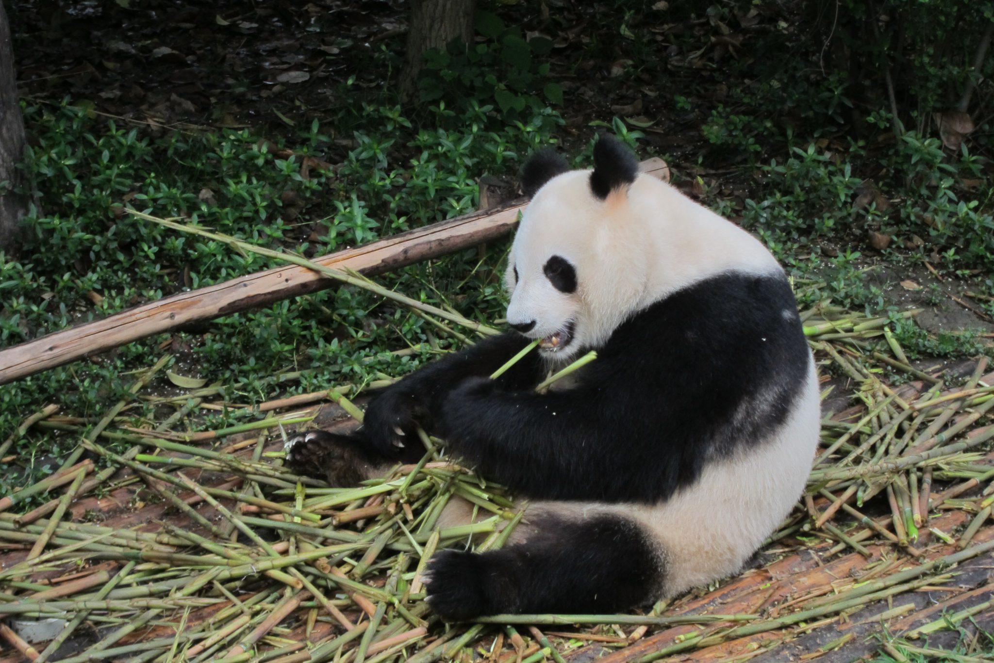 Jāsaka, ka šī tūre galīgi nebija slikta doma. Šoferis, kas pandu parku pārzina kā savu kabatu, izvadā mūs efektīvākajā veidā pa visu teritoriju. Šis ir labākais laiks, kad apciemot pandas – viņas ietur brokastis. Apsēdušās vai atlaidušās uz muguras, pandas veikli paķer kārtējo bambusa dzinumu, noloba liekās lapas, tad nokož sulīgo mīkstumu, tad atkal noloba lapas un tā joprojām. Man, skatoties uz šo maltīti, arī sāk gribēties brokastis. Tāpat var vērot jauno pandu ālēšanos kokā, savstarpējo ņemšanos un rāpšanos. Vietējā kinoteātrī tiek demonstrēta dokumentālā filma par pandām, kā arī var apmeklēt pandu muzeju. Un, protams, iegādāties visus iespējamos suvenīrus ar pandām.