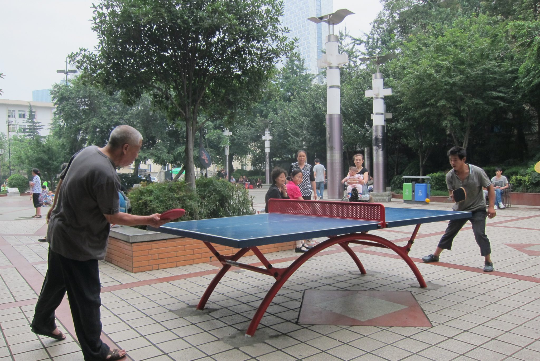 Jau 11 no rīta esam atpakaļ hostelī un teorētiski šodien varētu pastrādāt vēl kādu varoņdarbu. Bet – šausmīgi nāk miegs. Finālā padodos un eju pasnaust. Pamostos pēcpusdienā un bez īpaša mērķa izeju ielās. Blakus mūsu hostelim ir neliels parks un tajā ķīnieši sporto – izmanto uzstādītos trenažierus un dzenā galda tenisu. Kamēr vēroju spēli, ieraugu cauri parkam ejam tumšādaino meiteni no manas istabiņas. Panāku viņu un prasu, ko viņa iecerējusi darīt. Īpašu plānu jaunietei nav, domājot par kāda muzeja apmeklējumu, vai es vēlētos pievienoties. To es vēlos gan un mēs kopā iesēžamies taksī. Izrādās, ka Meklaitas diena ir bijusi tieši tāda pati kā manējā. No rīta bijusi pie pandām (aizgulējusies, tāpēc braukusi ar taksi), tad pagulējusi diendusu un tagad sajutusi spēku pilsētas izpētei. Meklaita ir no Losandželosas ar dzimtas saknēm Etiopijā. Uz Ķīnu atbraukusi kā apmaiņas studente, pamācījusies un tagad izmanto laiku, lai mazliet paceļotu pa valsti.