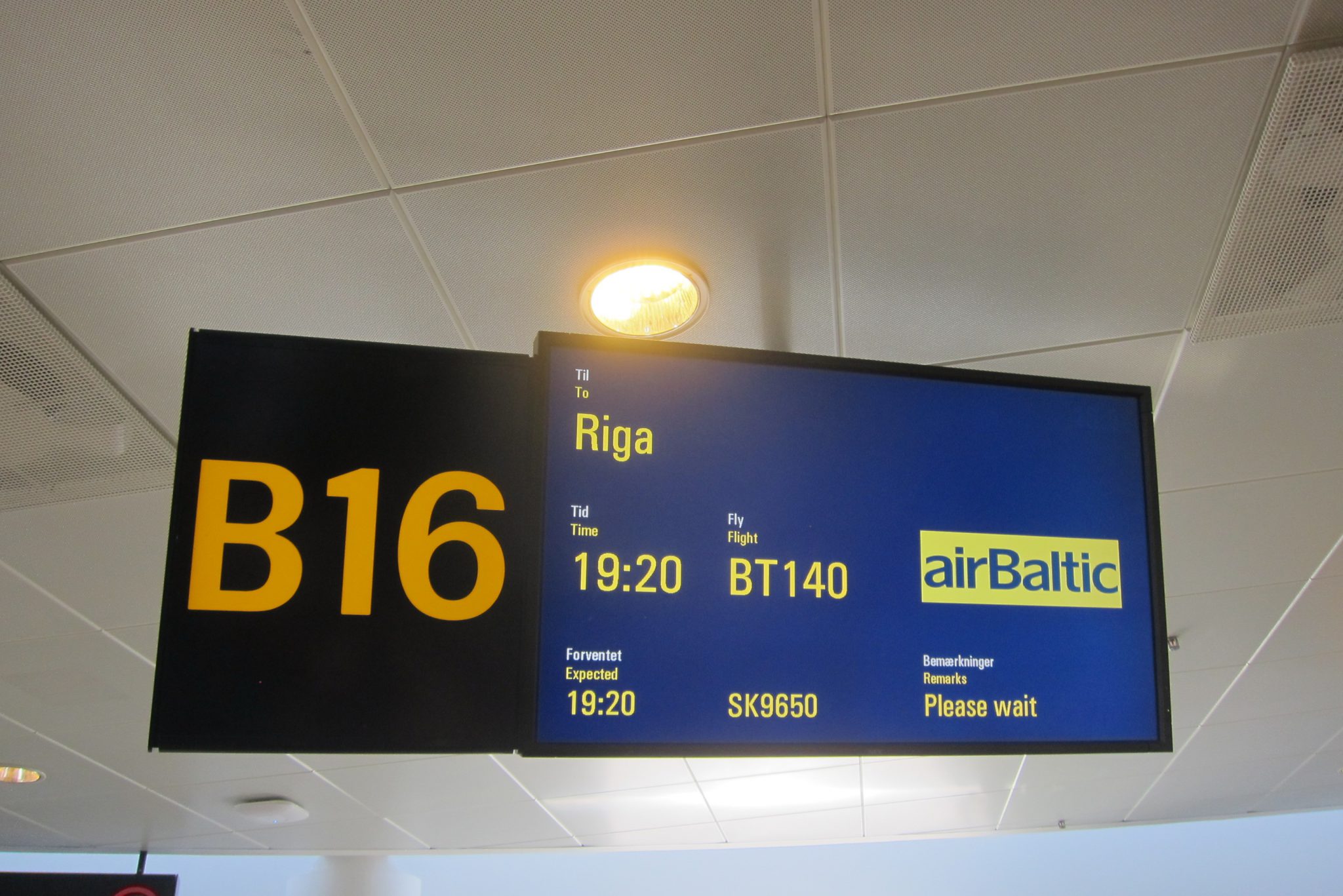 Lidostā esmu savlaicīgi, izeju visas procedūras, un nepilnas divas stundas pirms lidojuma esmu pie saviem vārtiem. SAS lidmašīna jau ir noparkojusies – pirmā cerība, ka izlidosim laikā. No lidostas darbinieces noskaidroju, ka piezemēsimies trešajā terminālī, bet mans lidojums ir no otrā. Savukārt, no cita pasažiera, kas izskatījās pēc dāņa, bet izrādījās soms, uzzinu kāda izskatās Kopenhāgenas lidostas karte – viņam ir pieejams internets, es nez kāpēc pie tā netieku. Soms domā, ka man ir cerības paspēt uz lidojumu. Ja pacelsimies laikā.