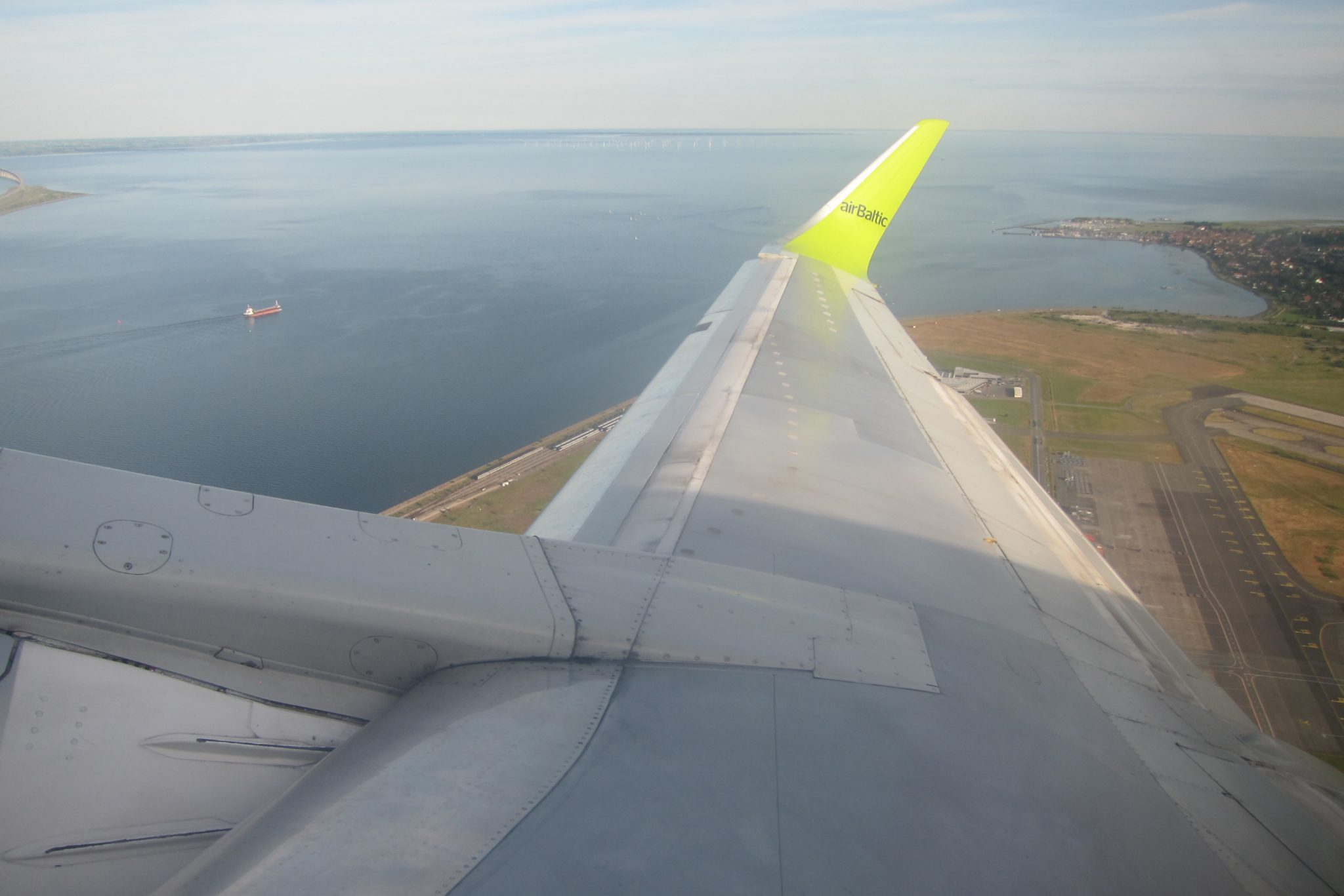 Iekāpšana sākas agri un minūtes desmit pirms izlidošanas pa skaļruņiem tiek paziņots, ka “boarding completed”. Tieši 14:50 lidmašīna sāk ripot, es jau nopriecājos par precizitāti, tad šī apstājas. Un stāv. Pēc minūtēm desmit pilots pa skaļruni paziņo, ka gaidīšanas iemesls ir blīvā satiksme uz skrejceļa un mums vēl nedod atļauju pacelties. Tomēr, mani mierinādams, viņš piebilst, ka lidojuma laiks paredzams mazliet īsāks un, ja vien varēsim pacelties tuvāko divdesmit minūšu laikā, Kopenhāgenā nolaidīsimies kā plānots.