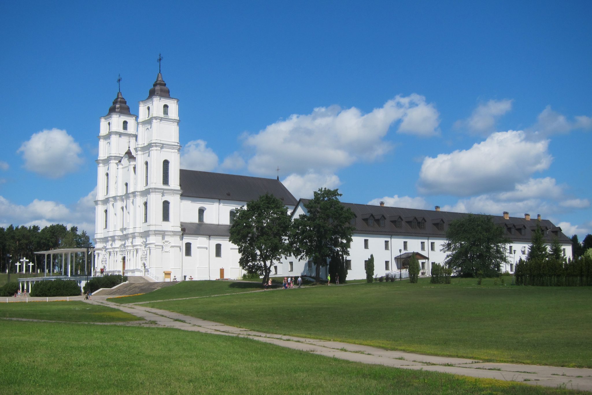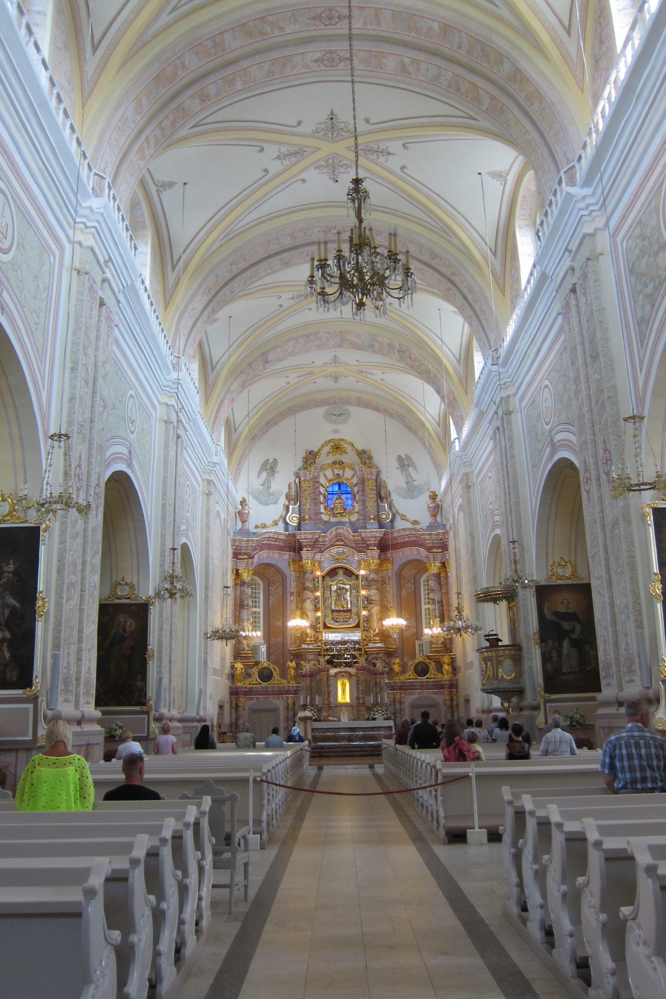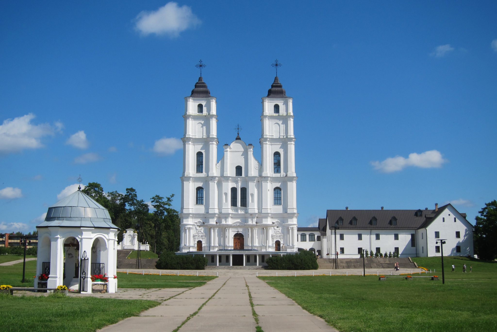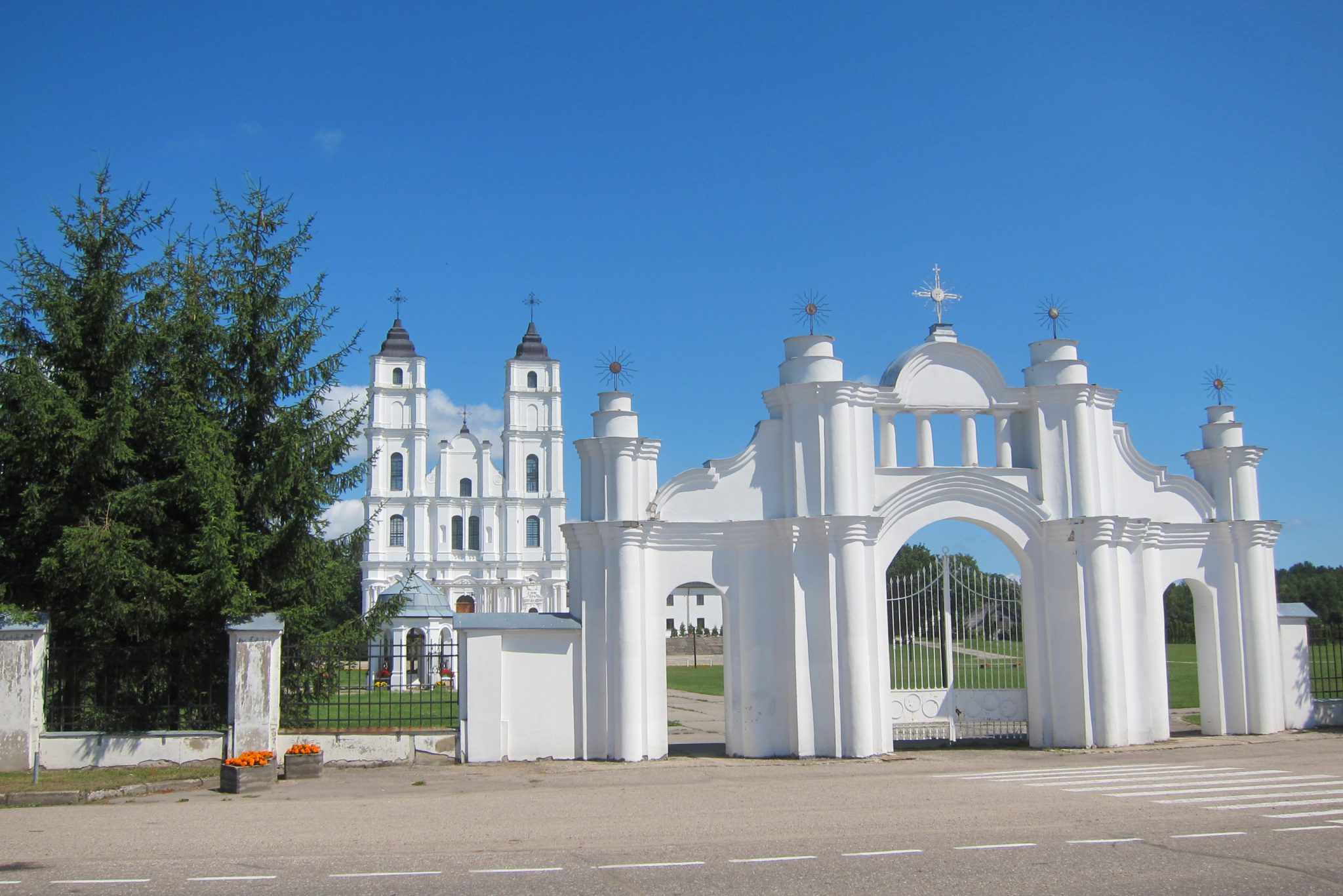 Mērcējušies velnūdenī, balansam piestājam pie Aglonas bazilikas un ielejam līdzpaņemtajās pudelēs dievūdeni no avotiņa. Vells no ārpuses, Dievs no iekšpuses – viss kā dzīvē. Pati bazilika gan šodien izskatās kā no pastkartes izkāpusi – acis žilbst no sienu baltuma un debesu fona ziluma. Uz mirkli pabāžam degunu arī notiekošajā dievkalpojumā, pačurājam maksas tualetē bez maksas (jo nauda nav līdzi), nekavējoties nožēlojam šo grēku, un esam gatavas doties tālāk.